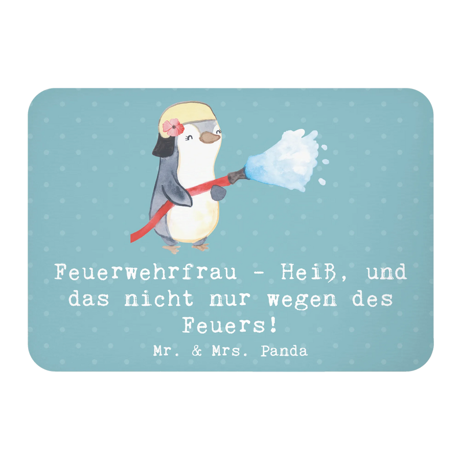 Der Mr. & Mrs. Panda Kühlschrankmagnet mit dem Motiv Feuerwehrfrau ist das perfekte Geschenk für alle, die im Feuerwehrdienst stehen oder einfach die Feuerwehr lieben! Mit dem witzigen Spruch 'Feuerwehrfrau - Heiß, und das nicht nur wegen des Feuers!' bringt dieser Magnet nicht nur Spaß in die Küche oder ins Büro, sondern sorgt auch dafür, dass Einkaufslisten und wichtige Notizen stets im Blick bleiben.