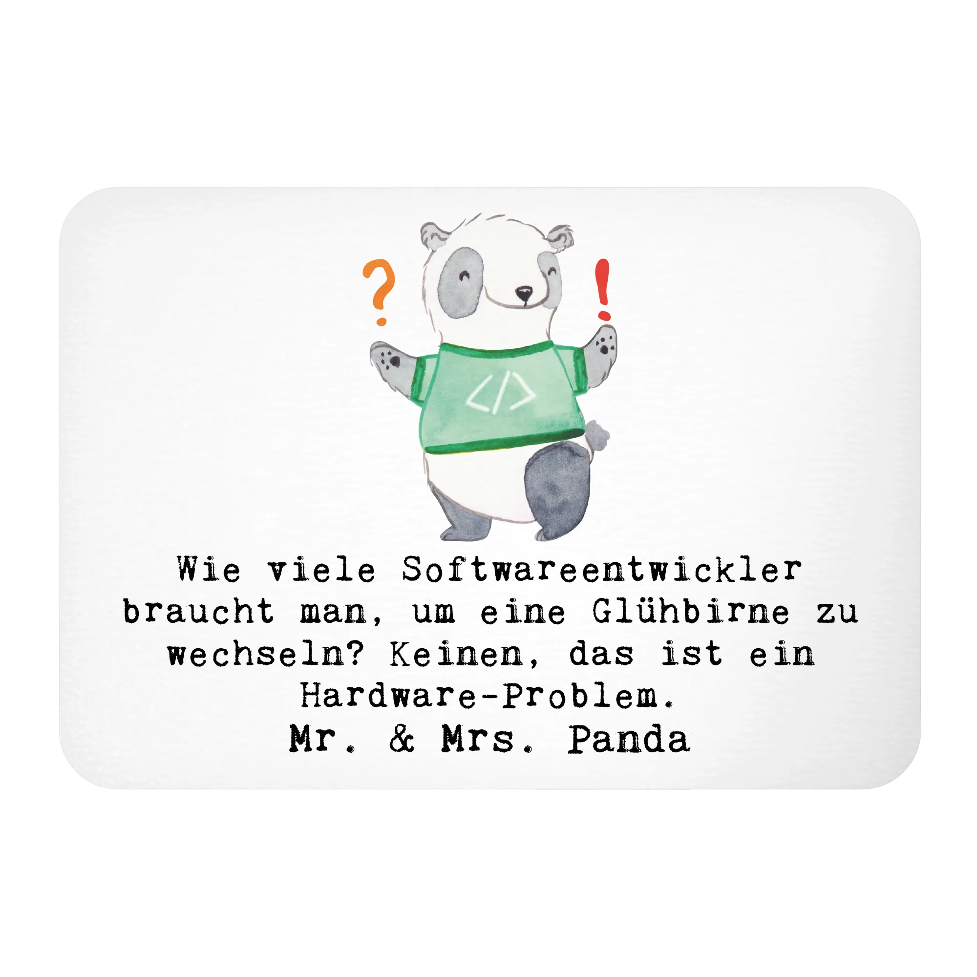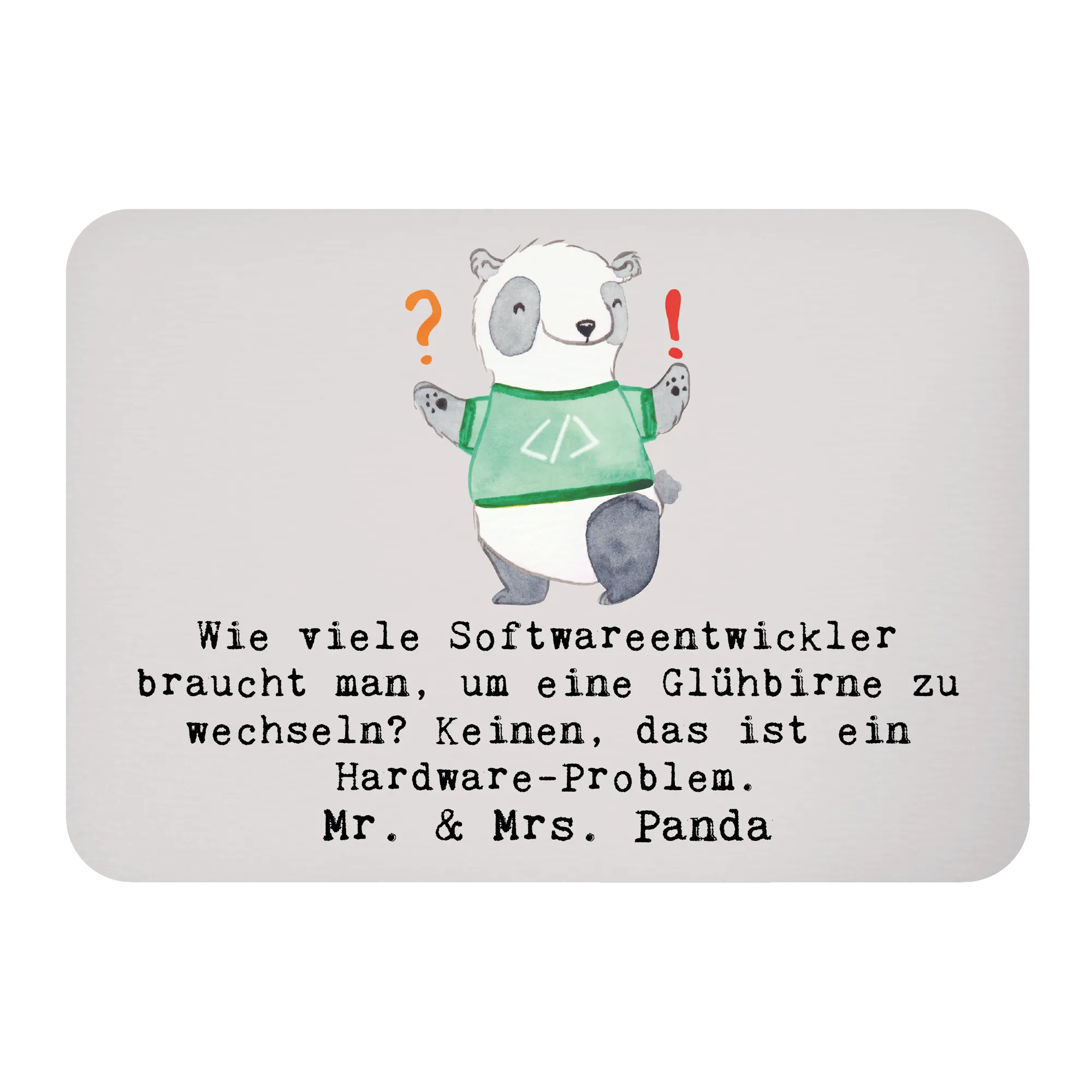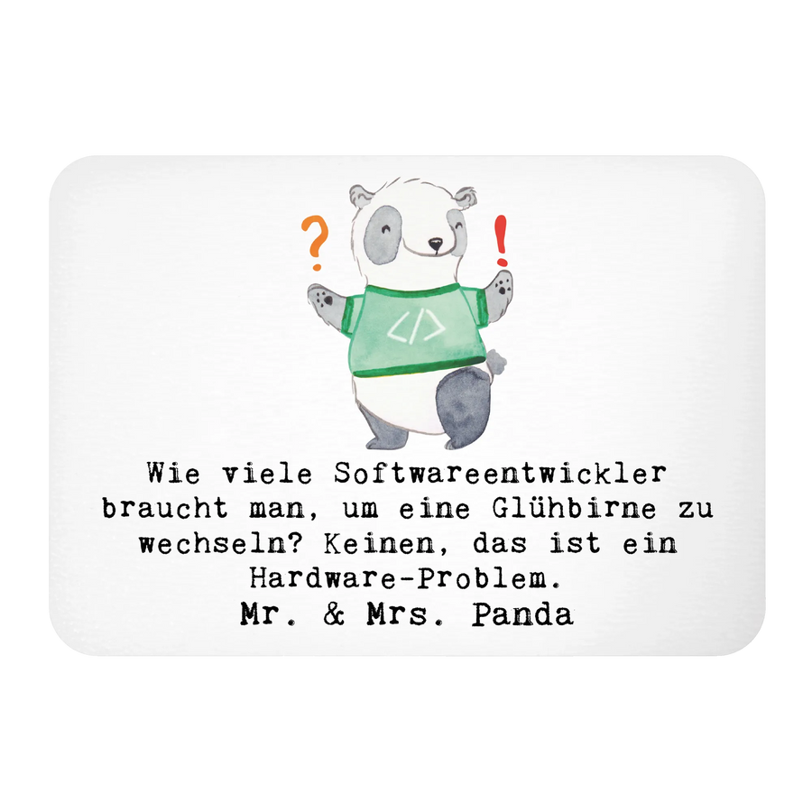 Der Kühlschrankmagnet "Softwareentwickler" aus der Berufe Kollektion von Mr. & Mrs. Panda ist das perfekte Geschenk für jeden Programmierer, IT-Entwickler oder technikbegeisterte Menschen in Deinem Umfeld. Mit einem liebevoll gestalteten Motif, das die Welt der Softwareentwicklung feiert, bringt dieser Magnet nicht nur Farbe, sondern auch Humor in Deine Küche oder Dein Büro. Der Slogan "Wie viele Softwareentwickler braucht man, um eine Glühbirne zu wechseln? Keinen, das ist ein Hardware-Problem." sorgt für ein Schmunzeln und ist ideal, um die Leidenschaft für Technologie und Programmierung zu zeigen.