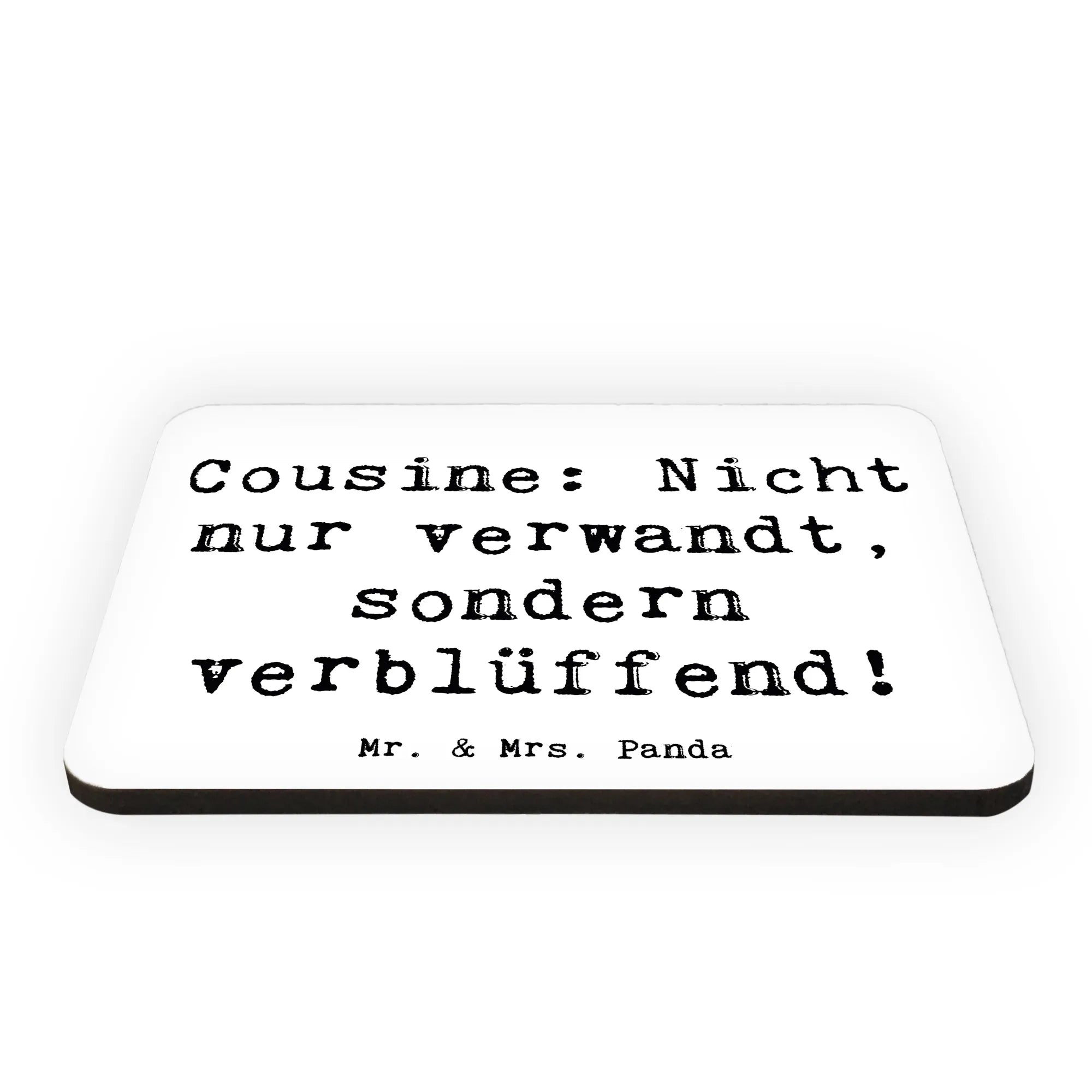 Der Kühlschrankmagnet mit dem Motiv 'Cousine: Nicht nur verwandt, sondern verblüffend!' aus der Kollektion Familie & Verwandte von Mr. & Mrs. Panda ist das ideale Geschenk für all diejenigen, die eine besondere Bindung zu ihren Cousinen haben. Diese einzigartige Magnetdekoration bringt nicht nur Farbe und Freude in Deine Küche oder ans Whiteboard, sondern erinnert Dich auch täglich an die wunderbaren Erinnerungen, die Du mit Deiner Cousine teilst.