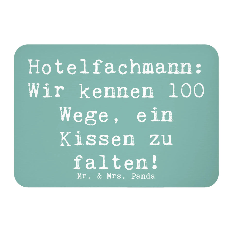 Der Kühlschrankmagnet "Hotelfachmann: Wir kennen 100 Wege, ein Kissen zu falten!" aus der liebevollen Berufe Kollektion von Mr. & Mrs. Panda ist der perfekte Begleiter für alle Hotelfachleute und die, die es werden wollen. Mit seinem charmanten und humorvollen Spruch zaubert er jedem ein Lächeln ins Gesicht und bringt eine fröhliche Note in jede Küche oder jedes Büro.