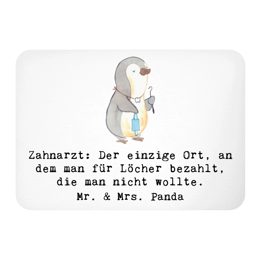 Der Kühlschrankmagnet Zahnarzt aus der Kollektion Berufe von Mr. & Mrs. Panda ist das perfekte Geschenk für alle Zahnärzte, Zahnarztassistenten und Zahnarztliebhaber. Mit dem humorvollen Spruch: "Zahnarzt: Der einzige Ort, an dem man für Löcher bezahlt, die man nicht wollte." bringt dieser Magnet auf liebevolle Weise einen Schmunzler in den Alltag.