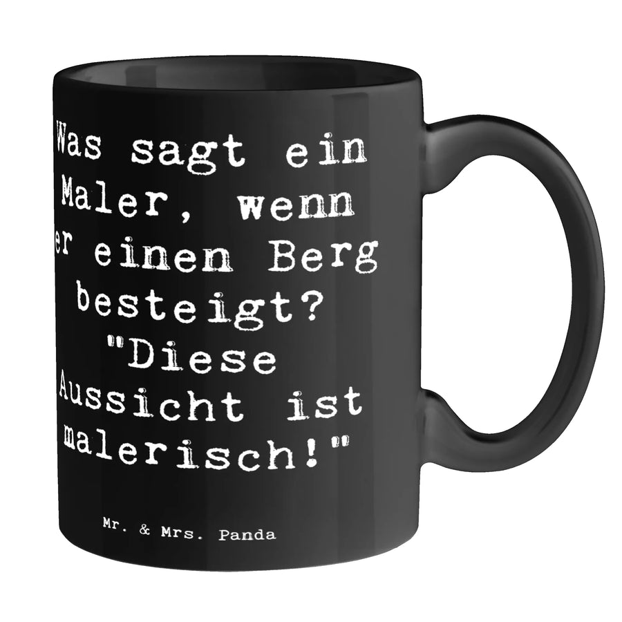 Tasse Spruch Was sagt ein Maler, wenn er einen Berg besteigt? "Diese Aussicht ist malerisch!" - Schwarz