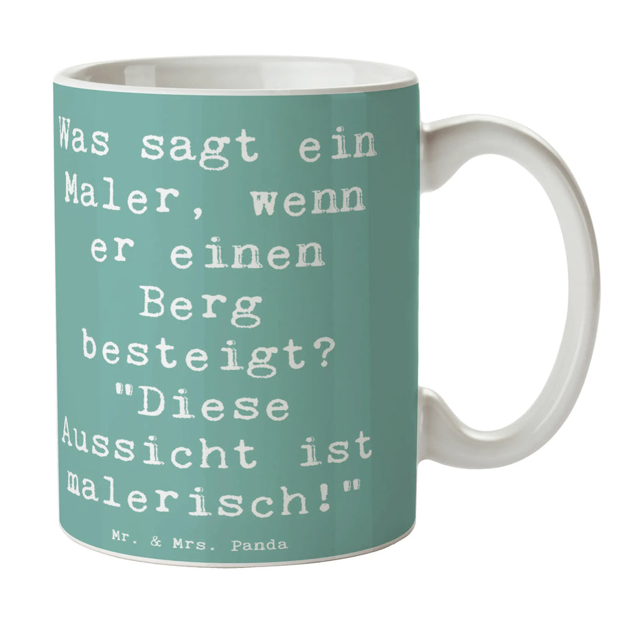 Tasse Spruch Was sagt ein Maler, wenn er einen Berg besteigt? "Diese Aussicht ist malerisch!" - Meeresbrise