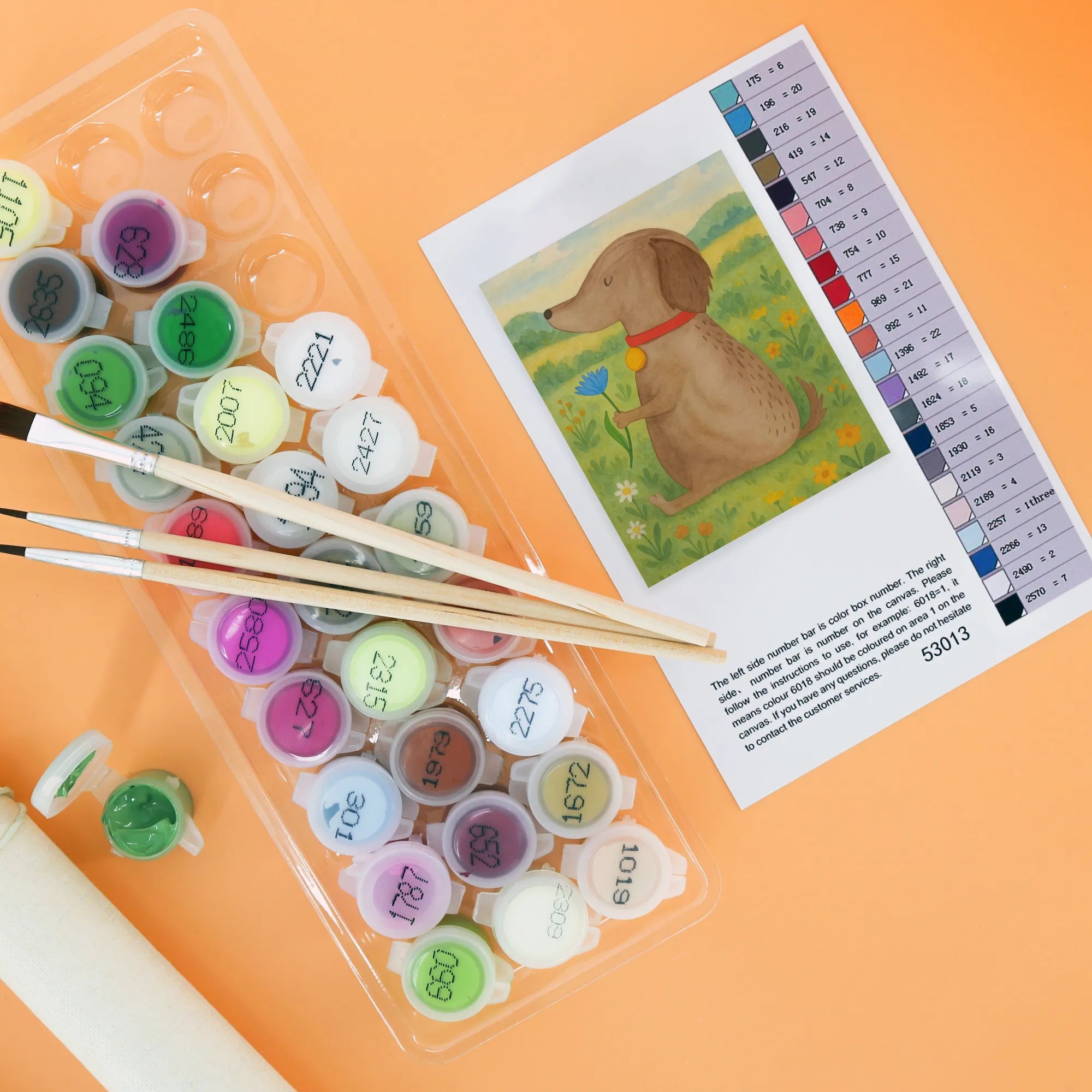 Malen nach Zahlen Hund Blume Design - Ohne Rahmen - 24 Farben (Standard)