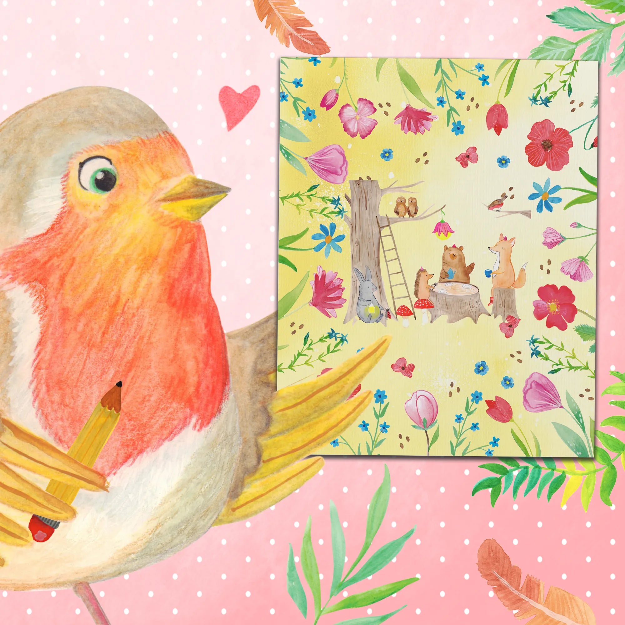 Mit einem zauberhaften Motiv, das süße Waldtiere zeigt, die gemeinsam in der Natur ein Picknick genießen, lädt dieses Set dazu ein, in eine Welt voller Farben und Freude einzutauchen. Die detailreichen Illustrationen wurden liebevoll von Mrs. Panda handgezeichnet und sorgen dafür, dass du ein einzigartiges Kunstwerk erschaffen kannst. Es ist ideal, um deine Kreativität auszuleben oder einfach nur zu entspannen und beim Malen den Alltagsstress hinter dir zu lassen.