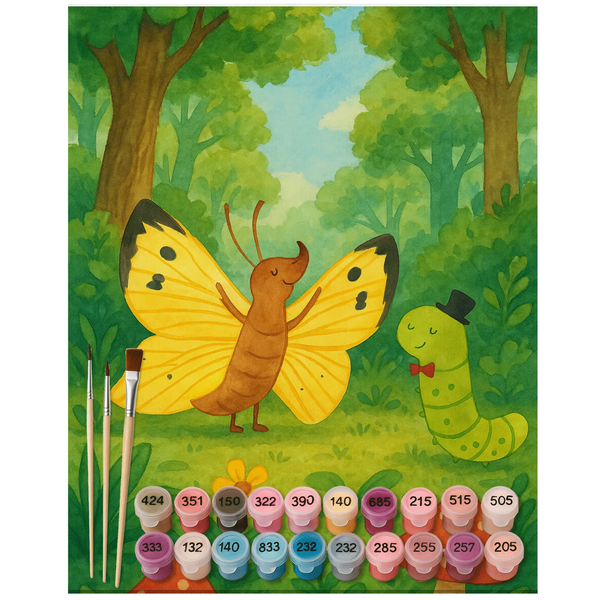 Entdecke das Malen nach Zahlen „Raupe & Schmetterling“ aus der Small World Kollektion von Mr. & Mrs. Panda 🐛🦋🎨. Ein liebevolles Motiv, das von Wachstum, Veränderung und zarter Schönheit erzählt. Die süße Raupe, die sich in einen farbenfrohen Schmetterling verwandelt, eignet sich perfekt als inspirierendes DIY-Kunstwerk für Groß und Klein.