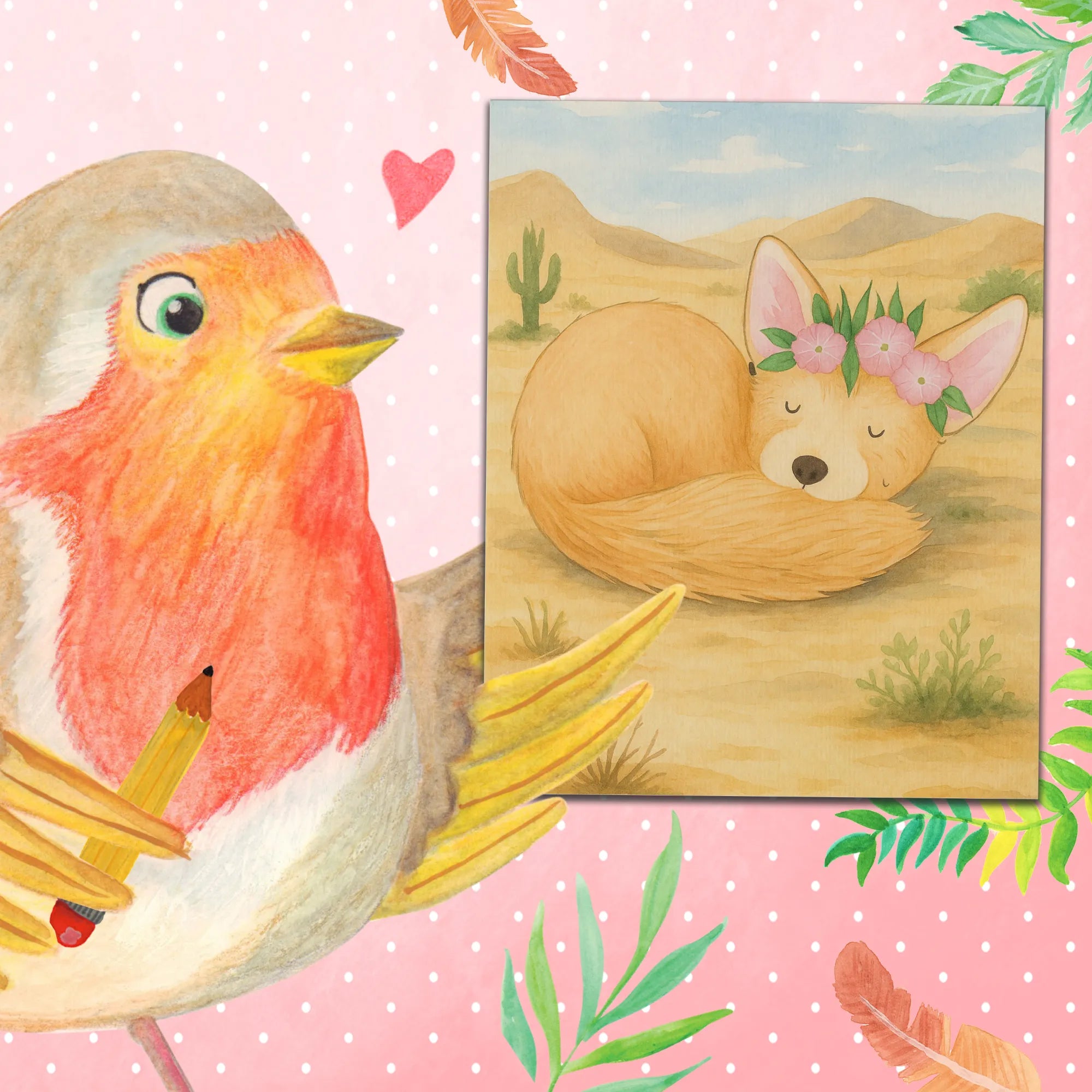 Malowanie według numerów lis pustynny kwiaty Design - Ohne Rahmen - 24 Farben (Standard)