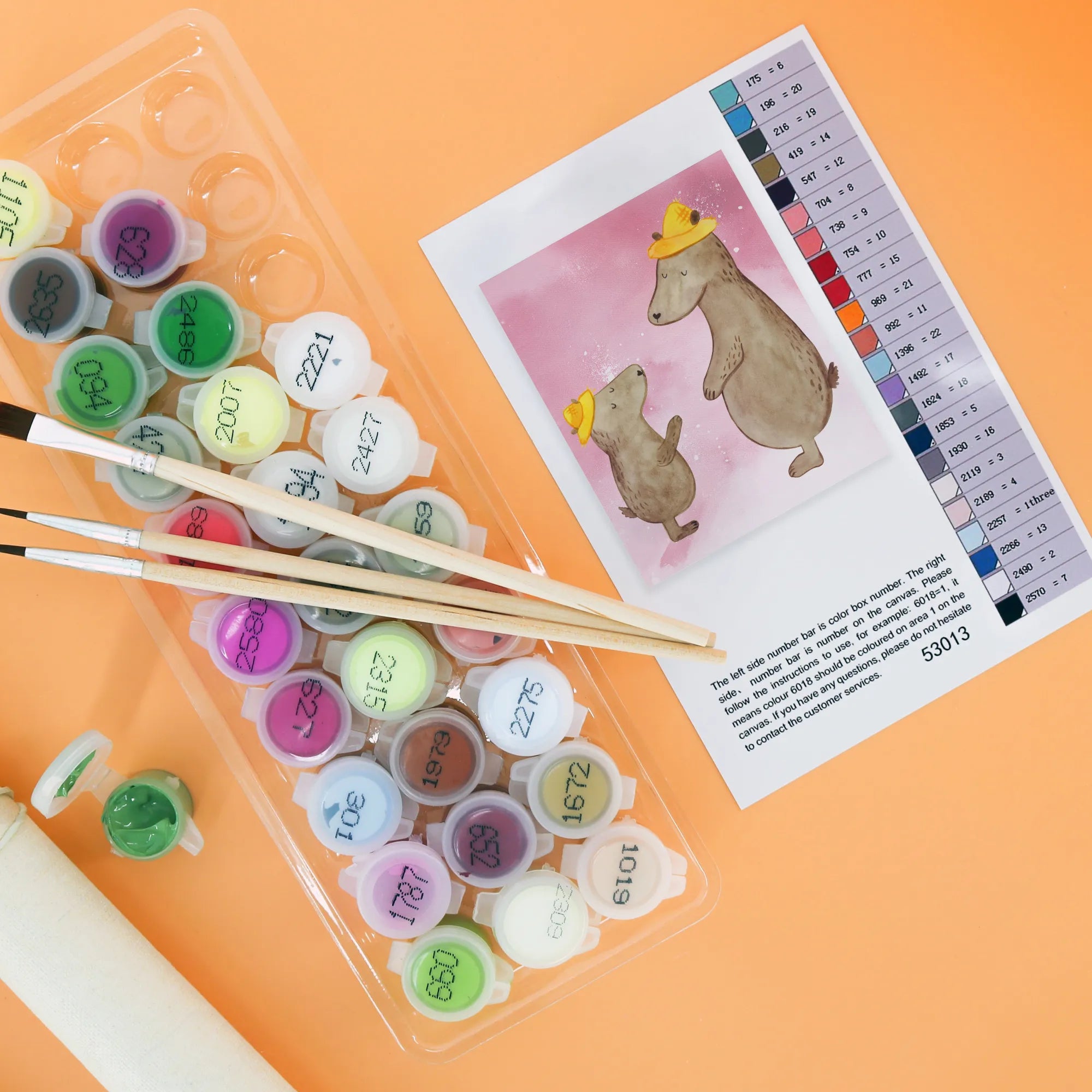 Das "Bären mit Hut" Set eignet sich hervorragend, um gemeinsame Zeit mit deinen Lieblingsmenschen zu verbringen, während ihr euch kreativ entfaltet. Perfekt für Väter und Söhne, um unvergessliche Momente zu schaffen. Malen nach Zahlen macht nicht nur Spaß, sondern fördert auch die Kreativität und die Bindung innerhalb der Familie.