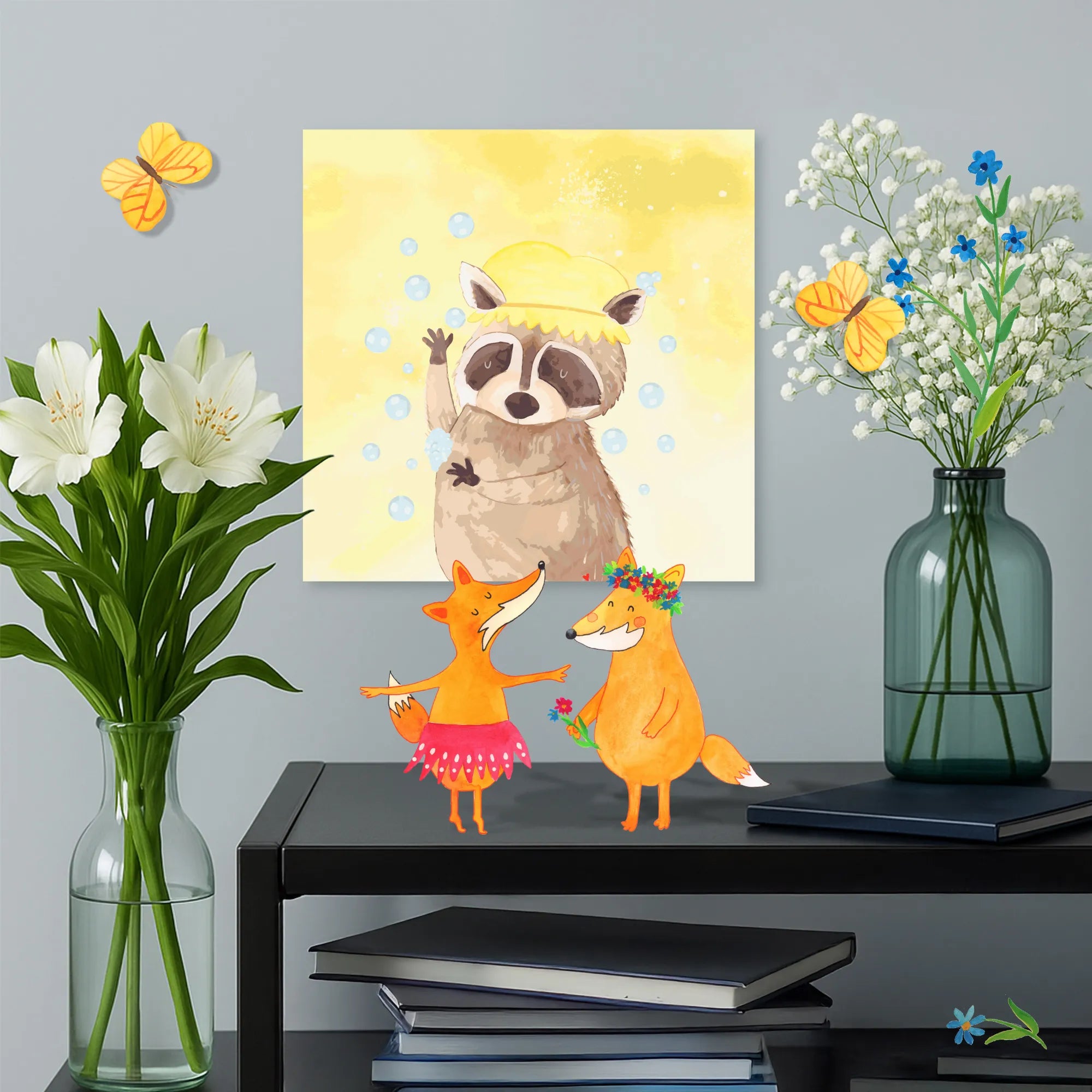 Die praktischen Farben trocknen schnell und sind einfach zu mischen. Lass deiner Kreativität freien Lauf und verwandle dein Wohnzimmer, Schlafzimmer oder Badezimmer mit diesem bezaubernden Motiv! Unser Waschbär wird dich täglich daran erinnern, an die kleinen Dinge im Leben zu denken und einfach mal abzutauchen.
