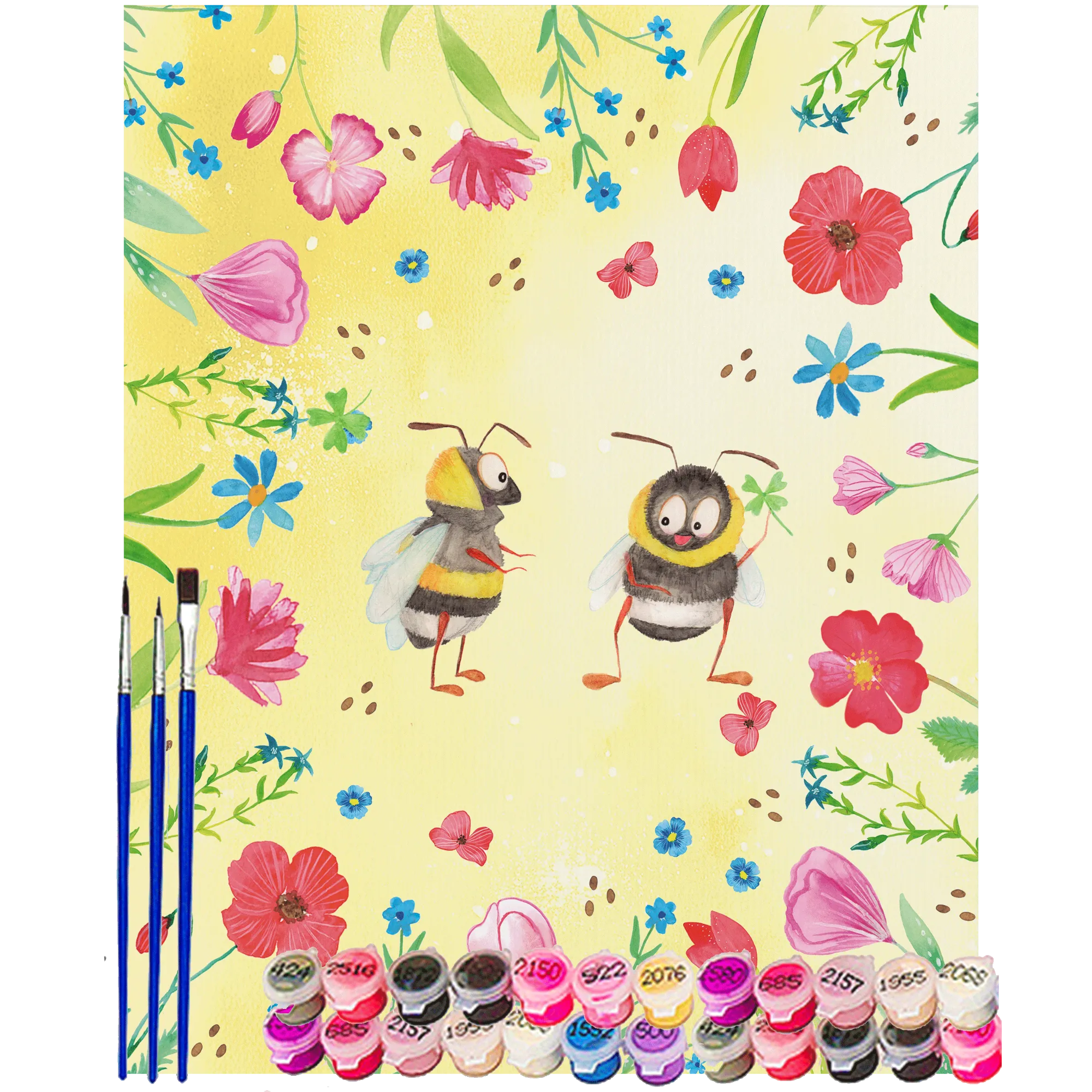 Dieses wunderbare Kunstwerk zeigt zwei niedliche Hummeln, die glücklich ein Kleeblatt halten. Mit diesem Set kannst du deine Kreativität entfalten und gleichzeitig entspannende Momente genießen. Das Malen nach Zahlen Set enthält 36 hochwertige Acrylfarben, die perfekt leuchten und die Farben lebendig erscheinen lassen.