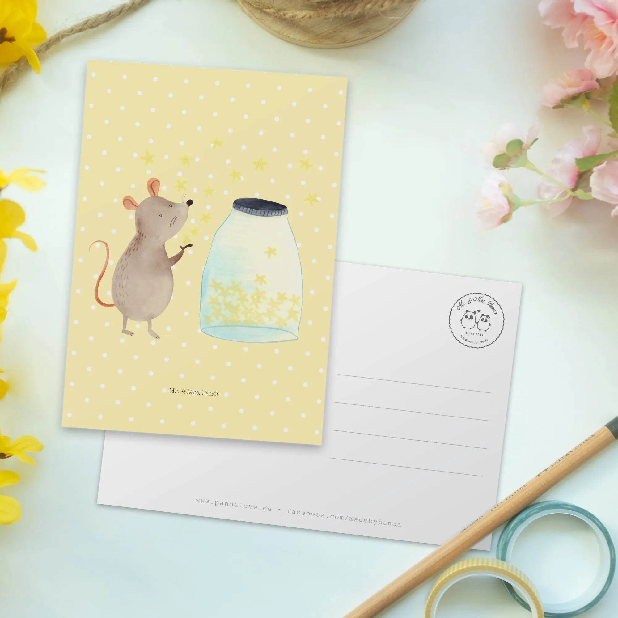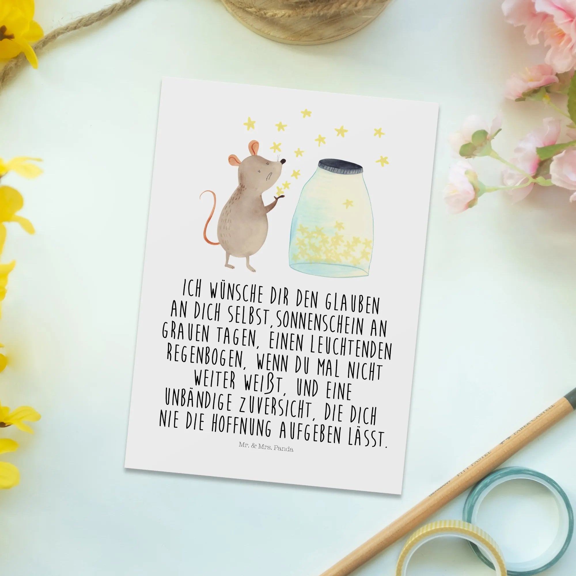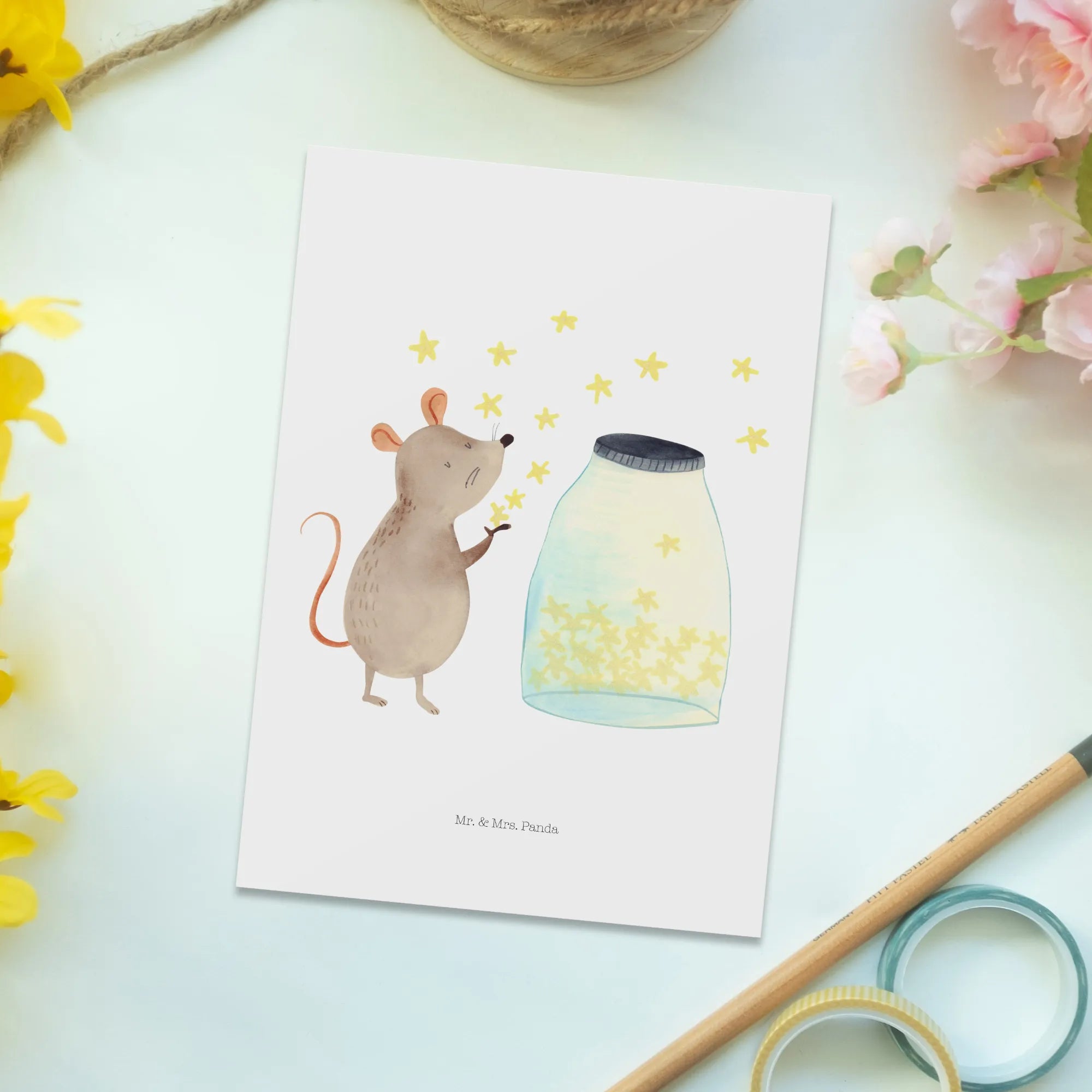 Pocztówka mysz Gwiazdy - z napisem - biały