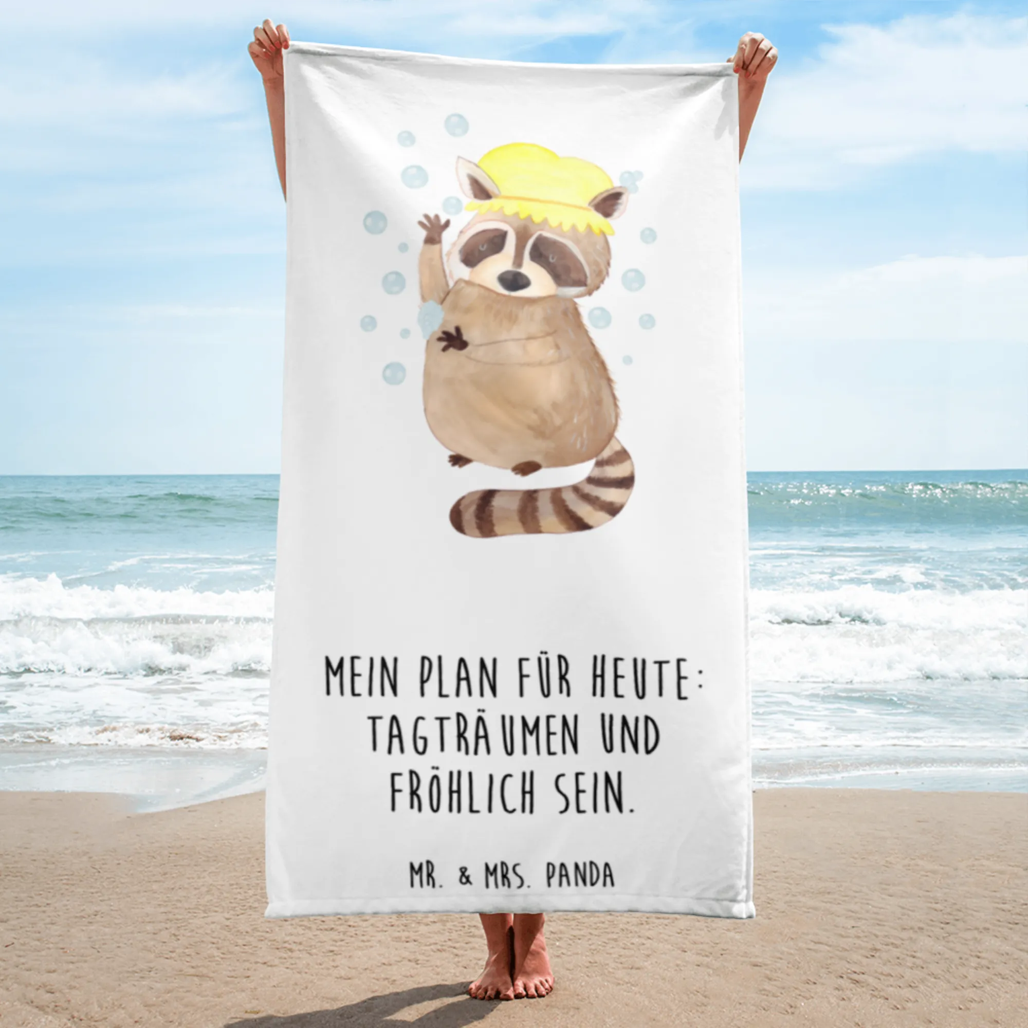 XL ręcznik kąpielowy Szop pracz - z napisem - Biały
