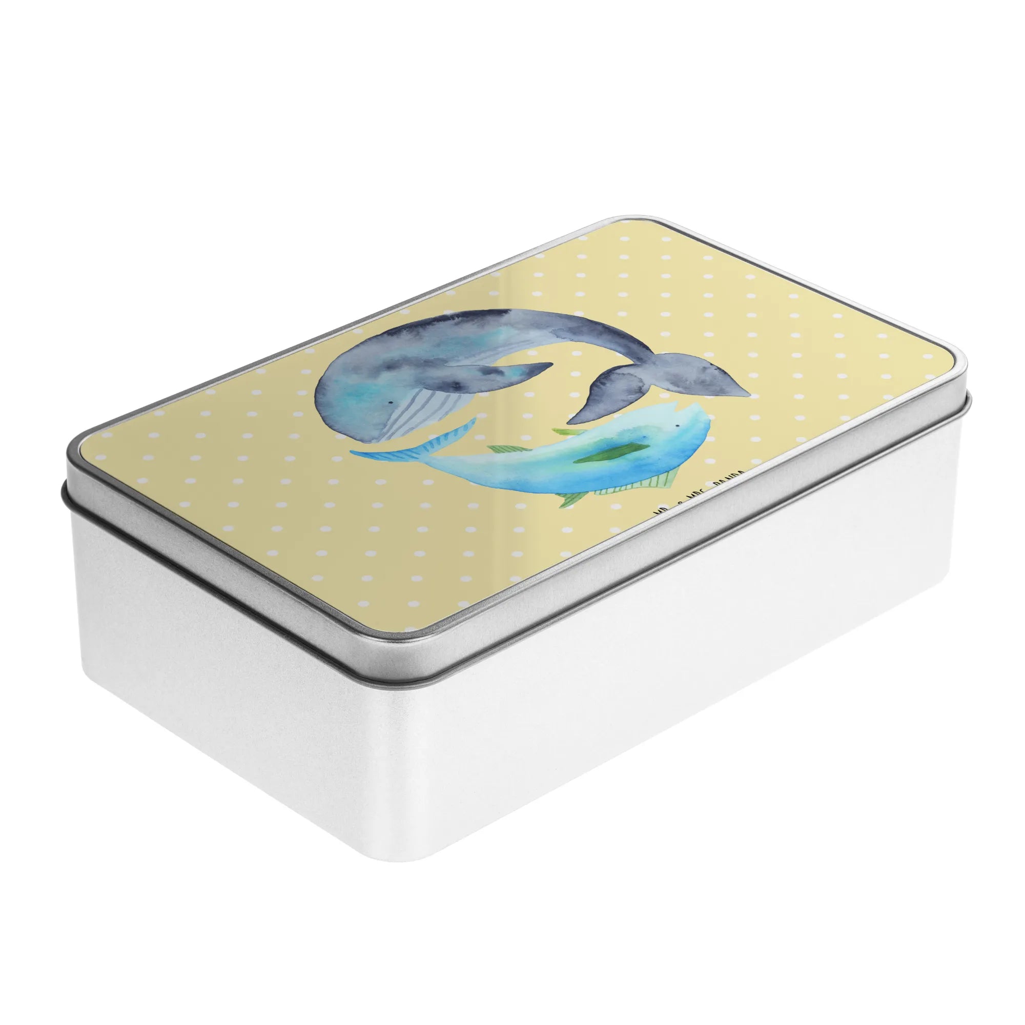 Metalowa puszka wieloryb tuńczyk - z napisem