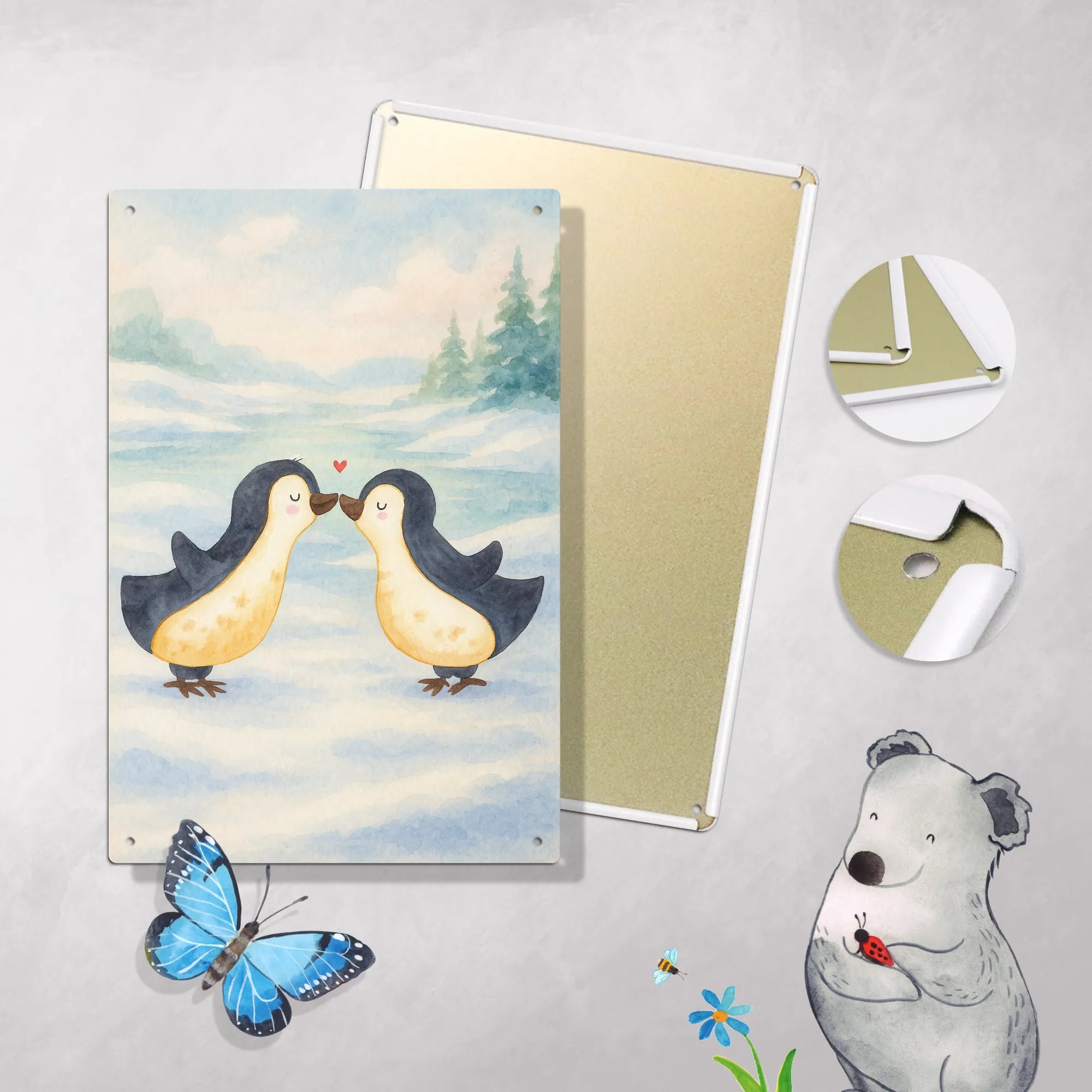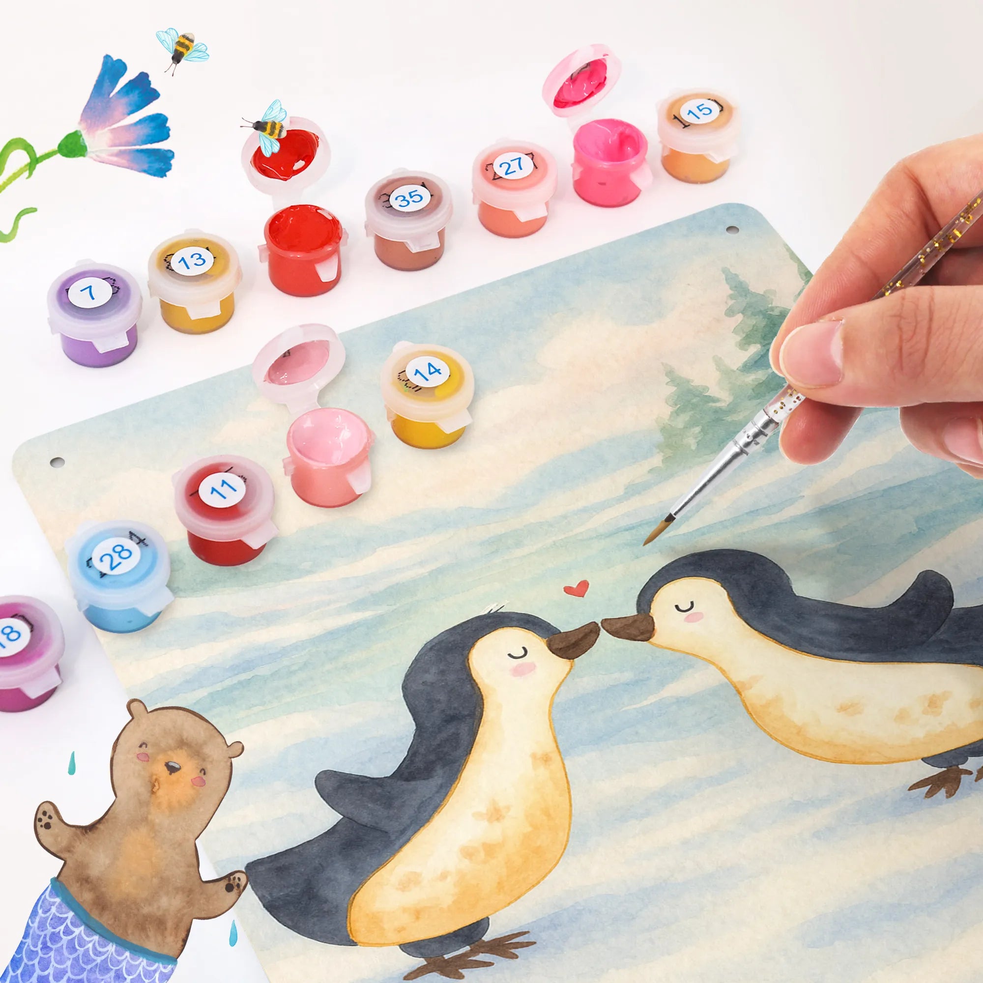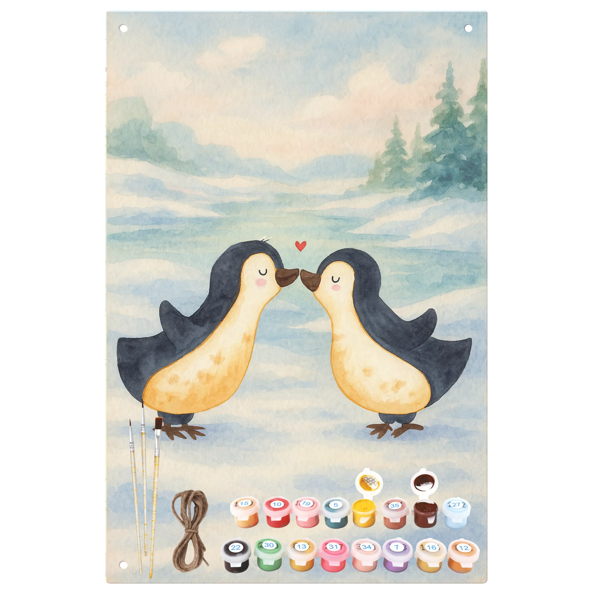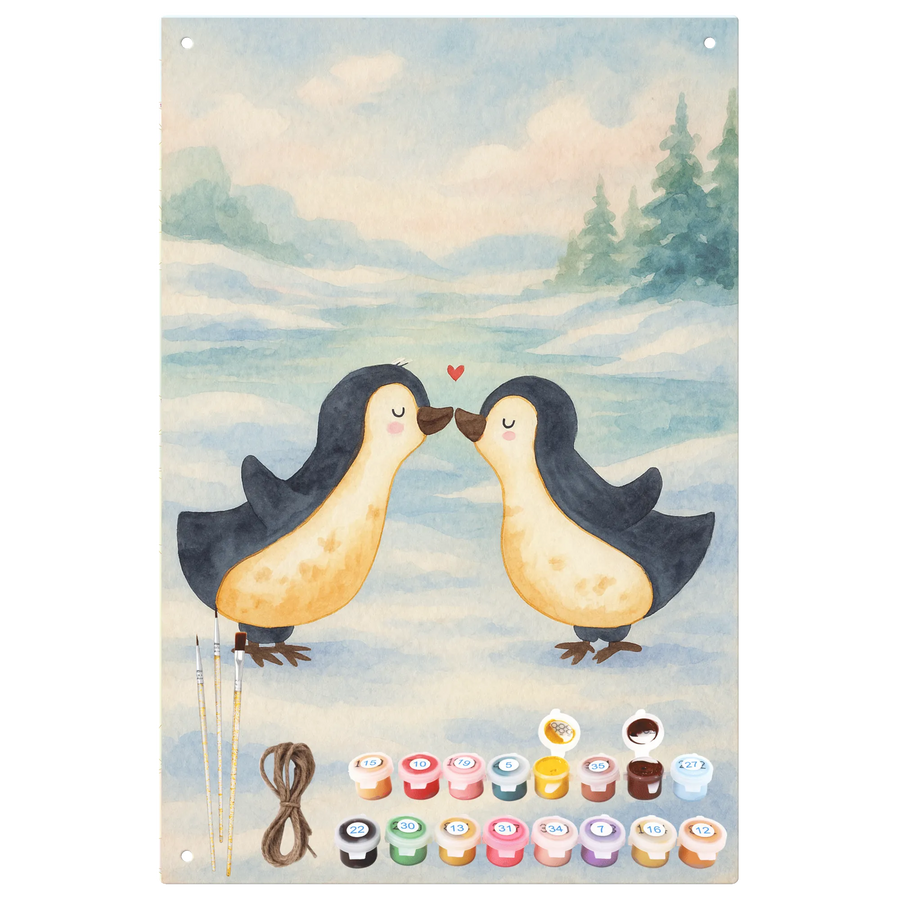 Metalowy szyld do malowania po numerach Pingwin Miłość Design