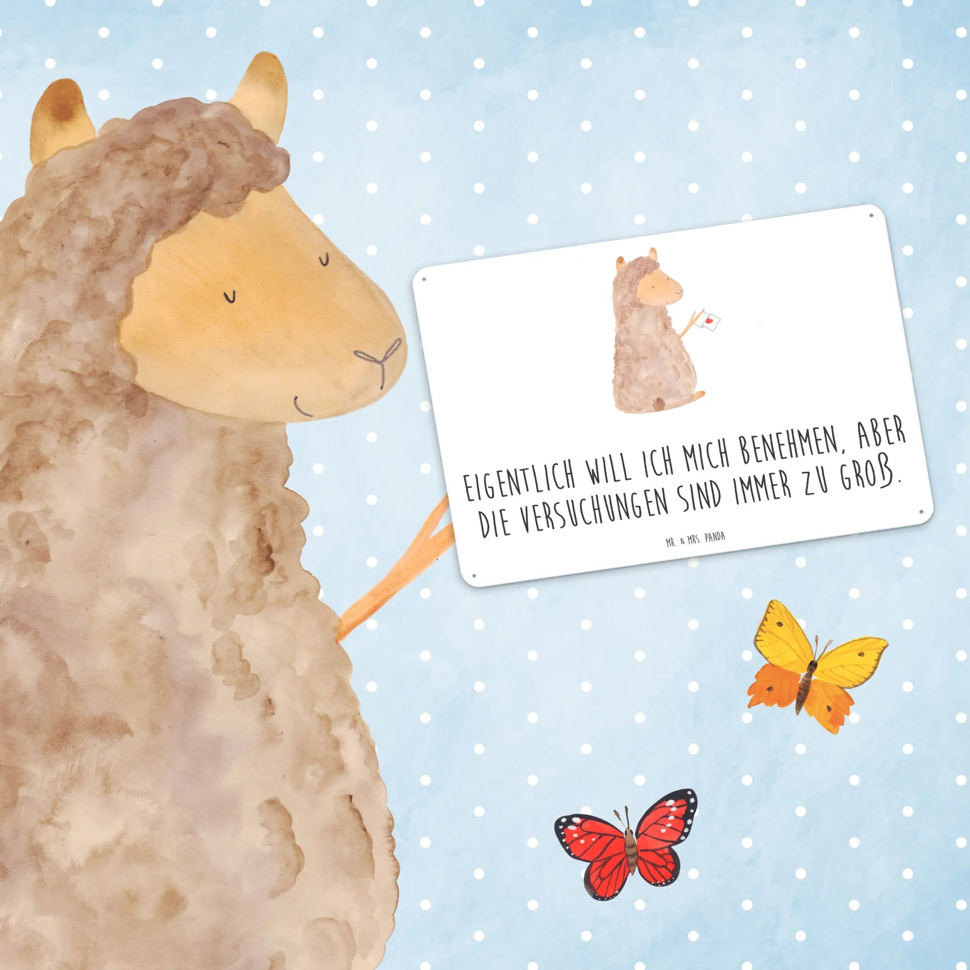 Genieße die edle, seidenmatte Oberfläche und die abgerundeten Ecken, die für einen charmanten, eleganten Eindruck sorgen. Die Alpaka Sammlung von Mr. & Mrs. Panda bietet nicht nur dieses wunderschöne Blechschild, sondern eine Vielzahl anderer Produkte mit ähnlichen Motiven, die dein Zuhause verschönern.