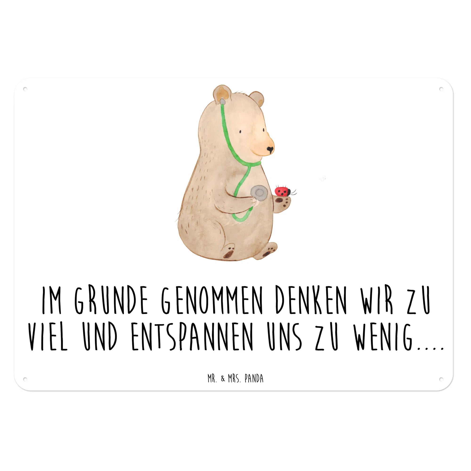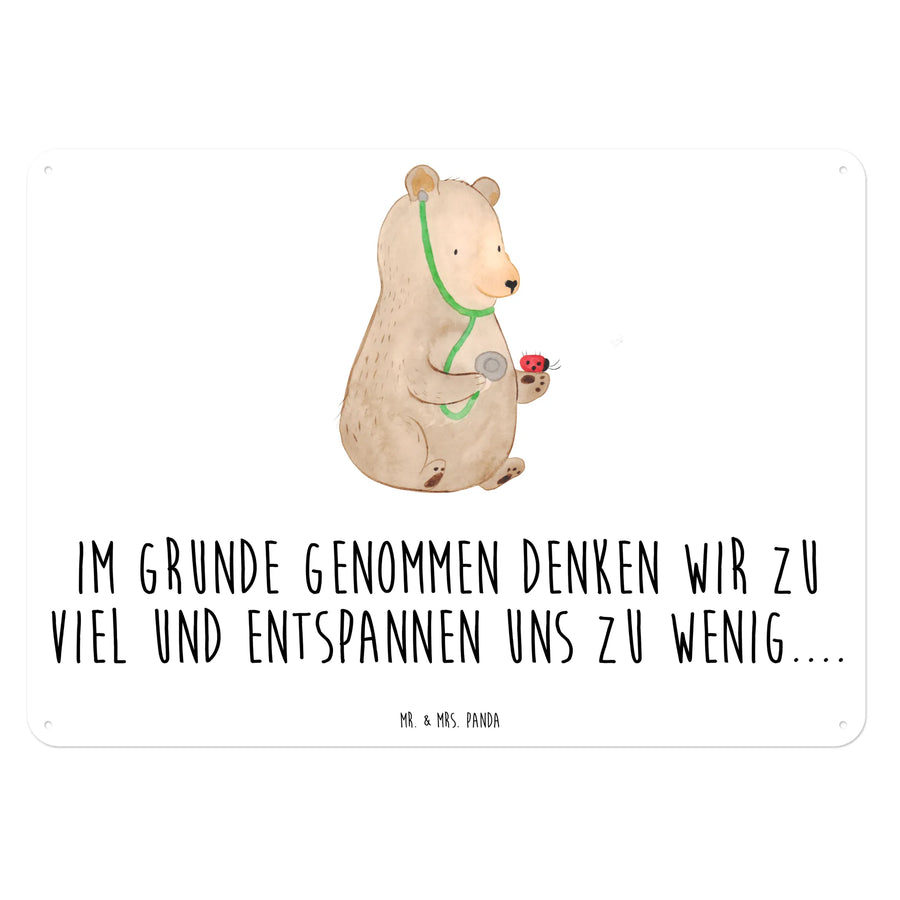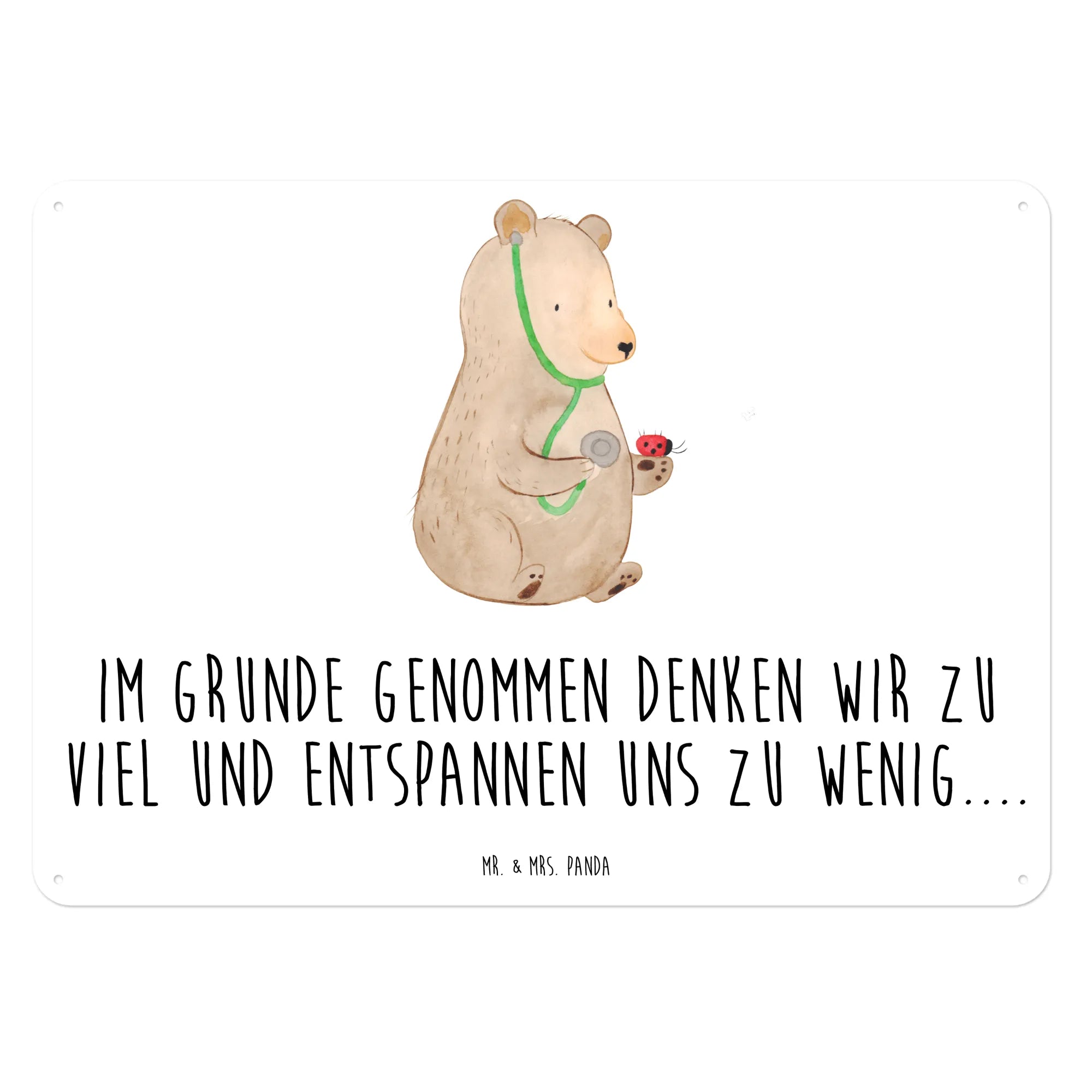 Das edle Blechschild mit dem süßen Motiv "Bär Arzt" von Mr. & Mrs. Panda ist das perfekte Geschenk für jeden, der Tiere und vor allem Bären liebt.
