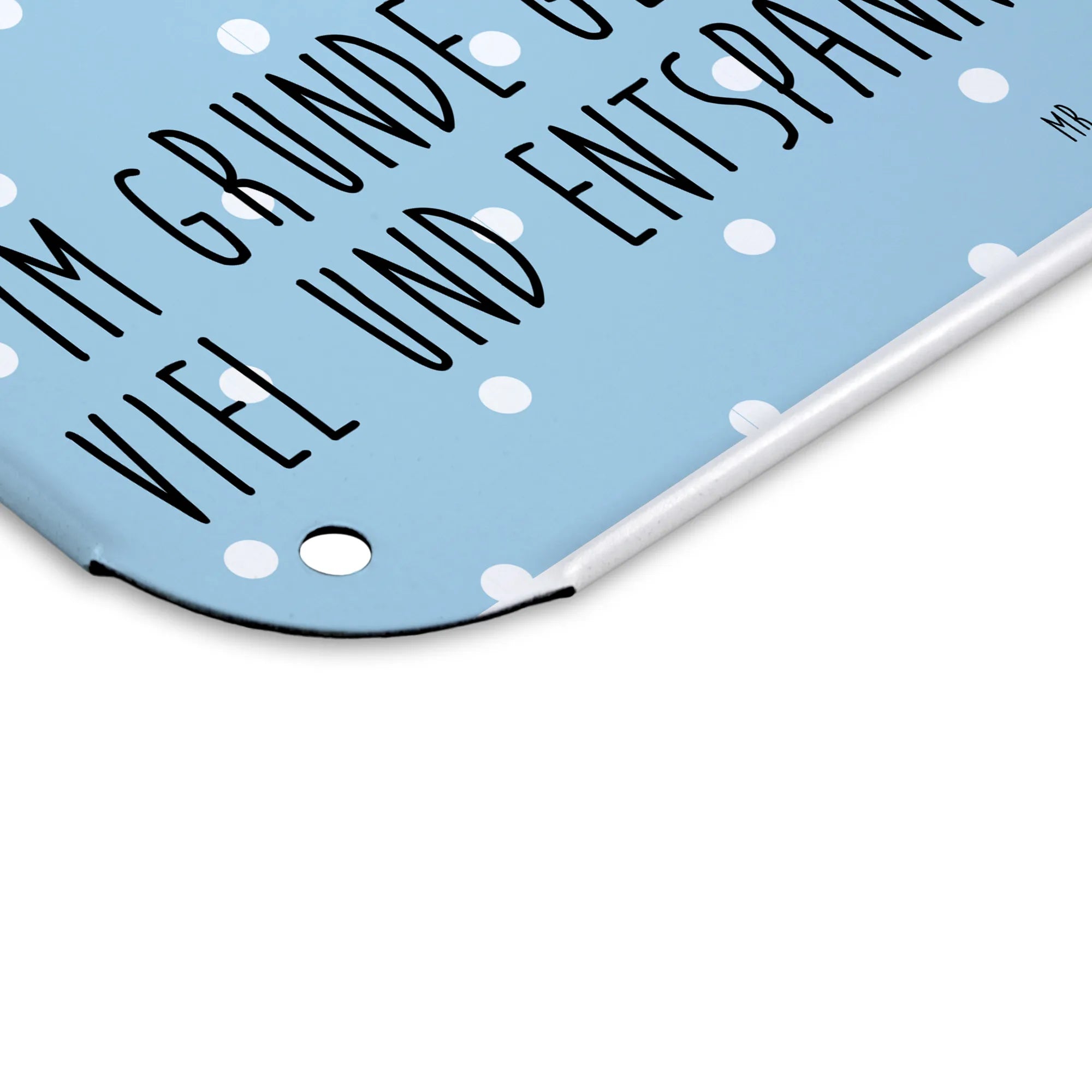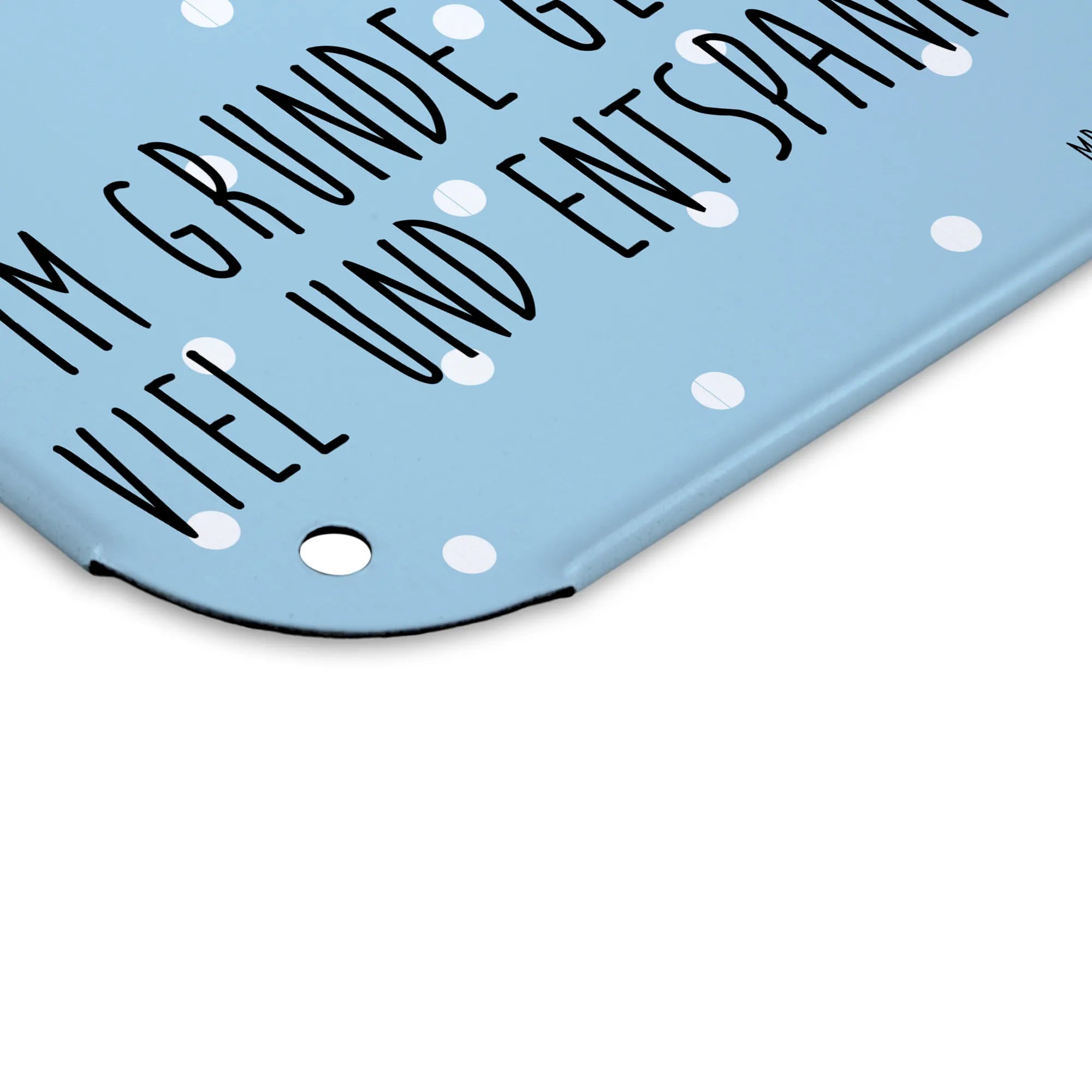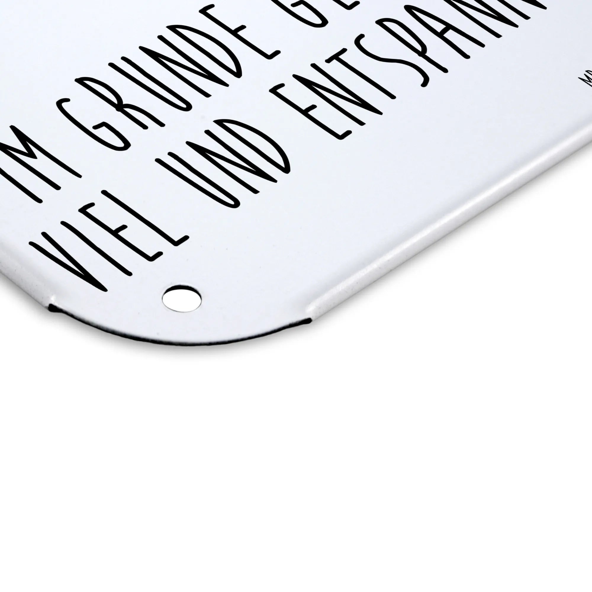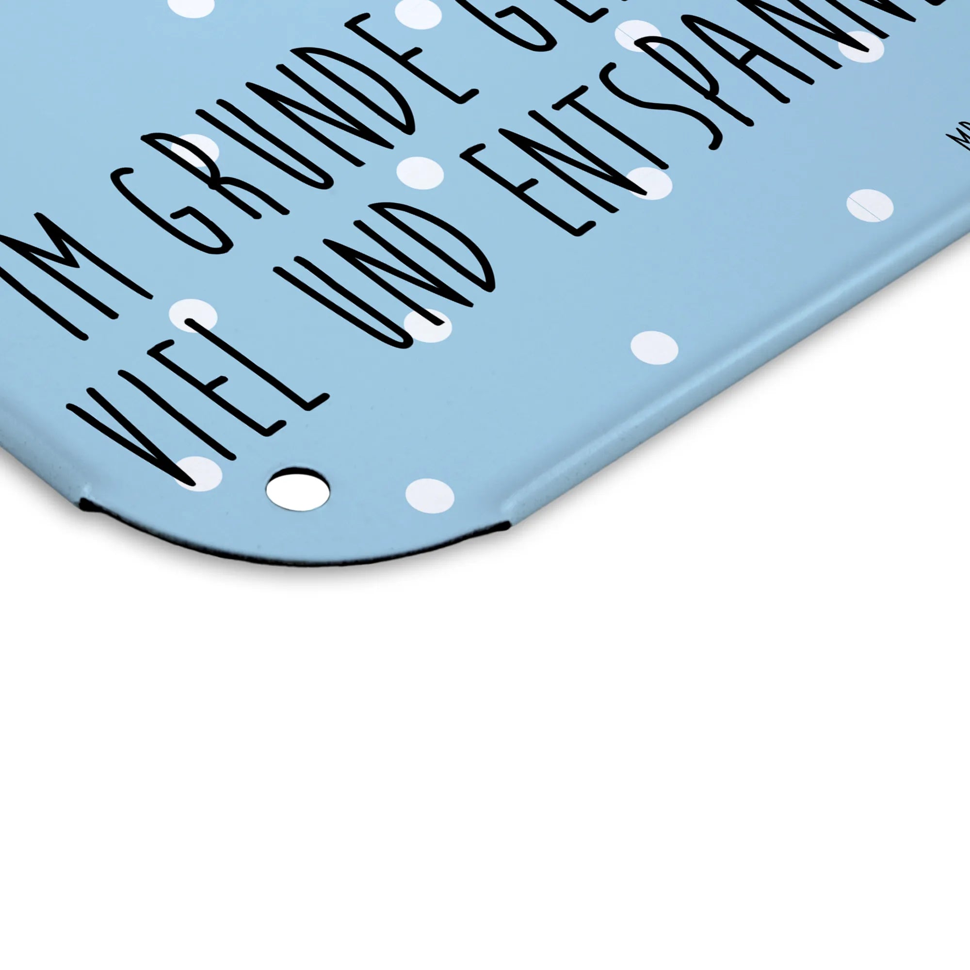 Der Slogan "Im Grunde genommen denken wir zu viel und entspannen uns zu wenig...." ergänzt das witzige Design und bringt jeden Betrachter zum Schmunzeln. Ob als Einweihungsgeschenk, zur Feier eines besonderen Anlasses oder einfach nur, um jemandem eine Freude zu machen, dieses Blechschild ist immer eine tolle Wahl.