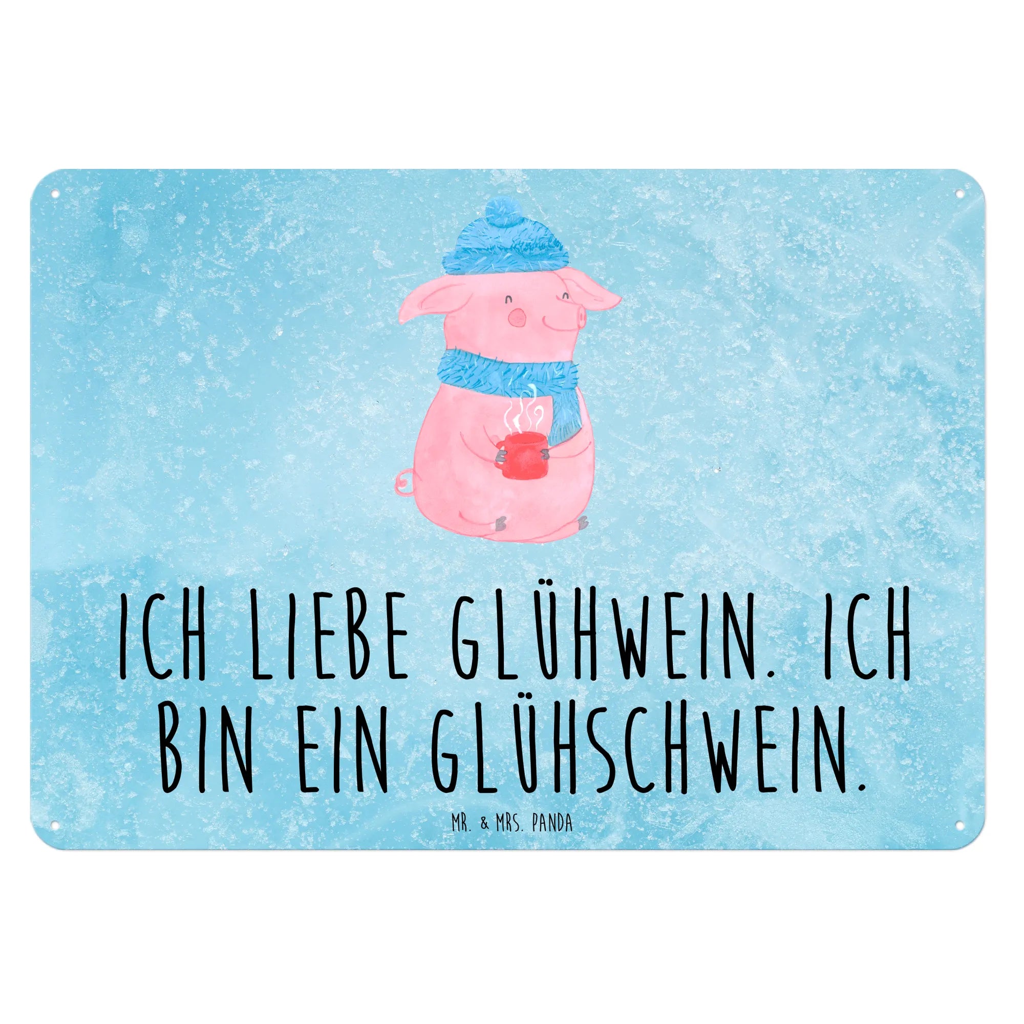 Blechschild Schwein Glühwein - DIN A6 - Eisblau