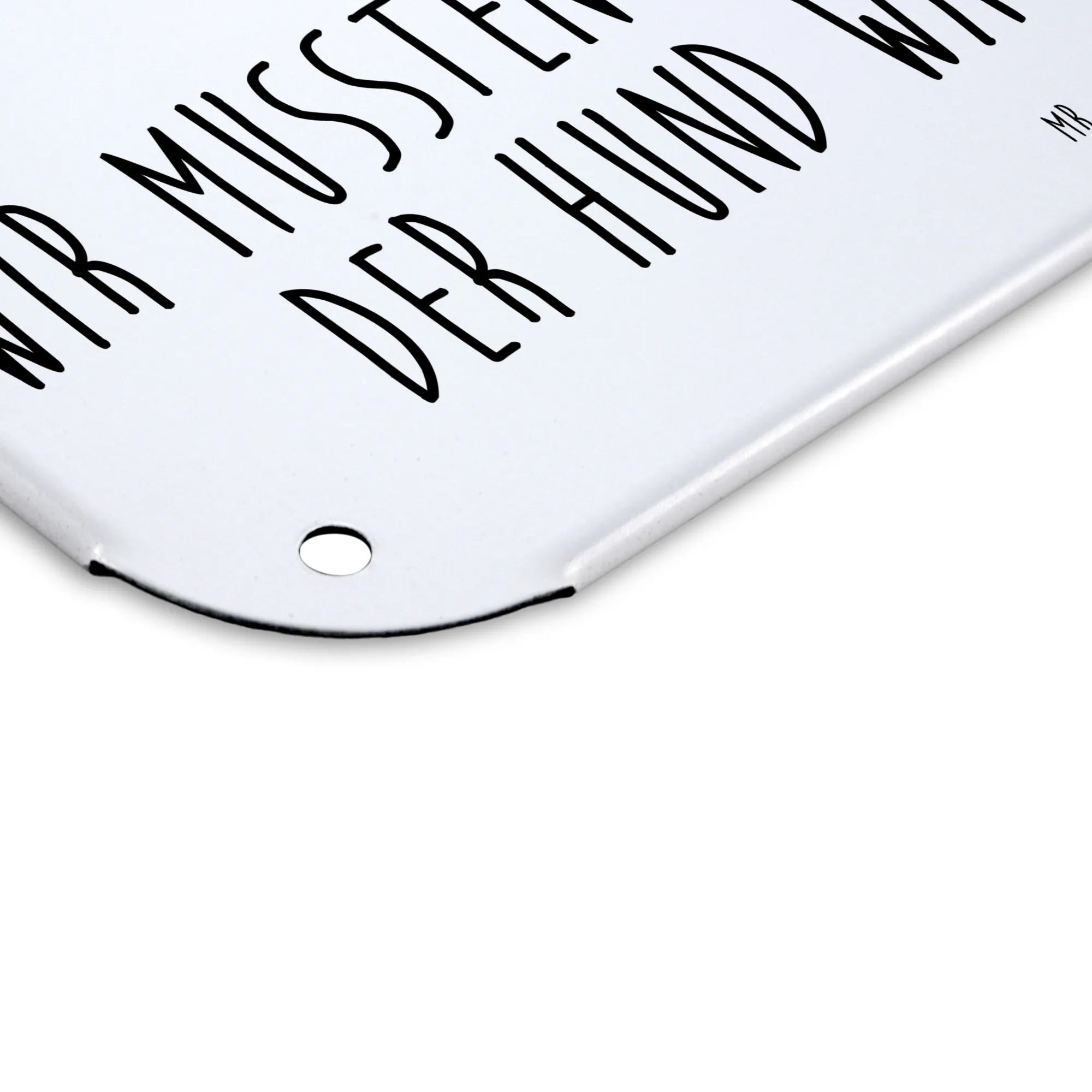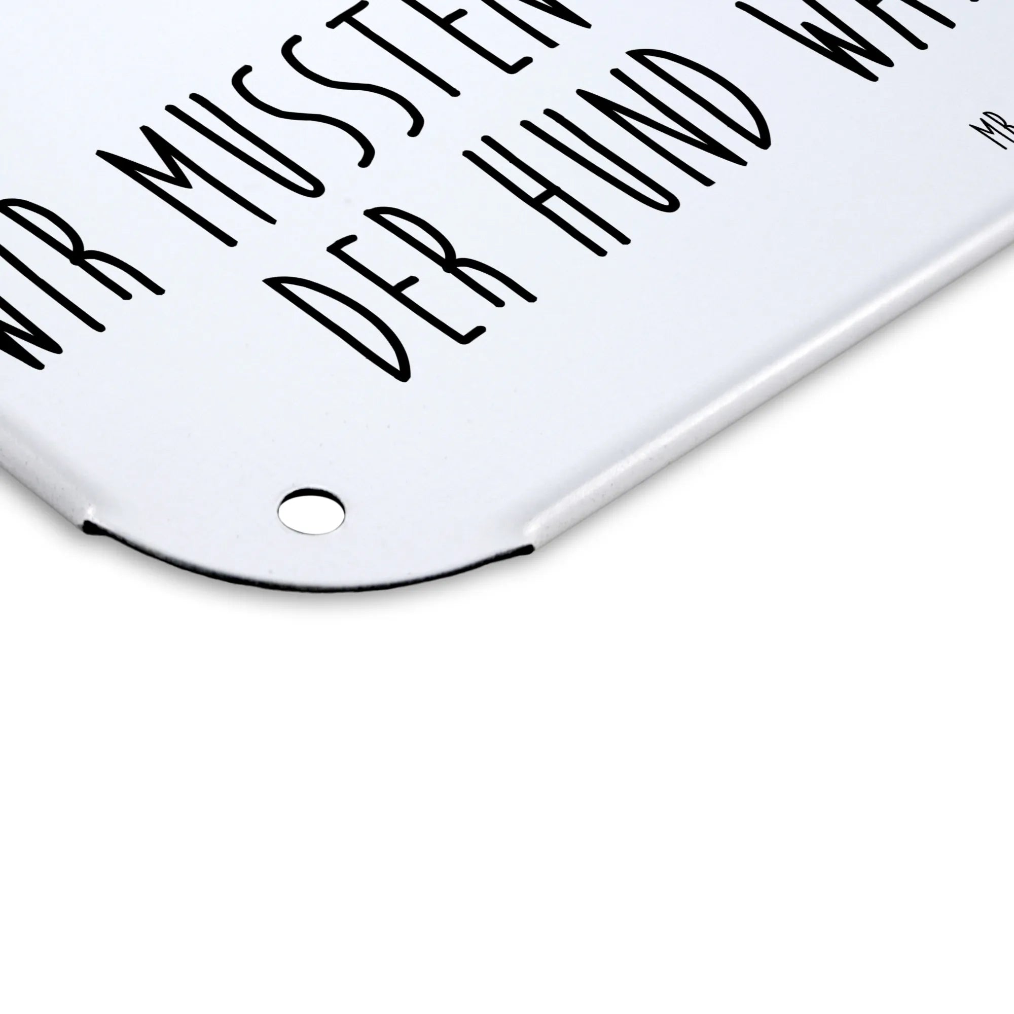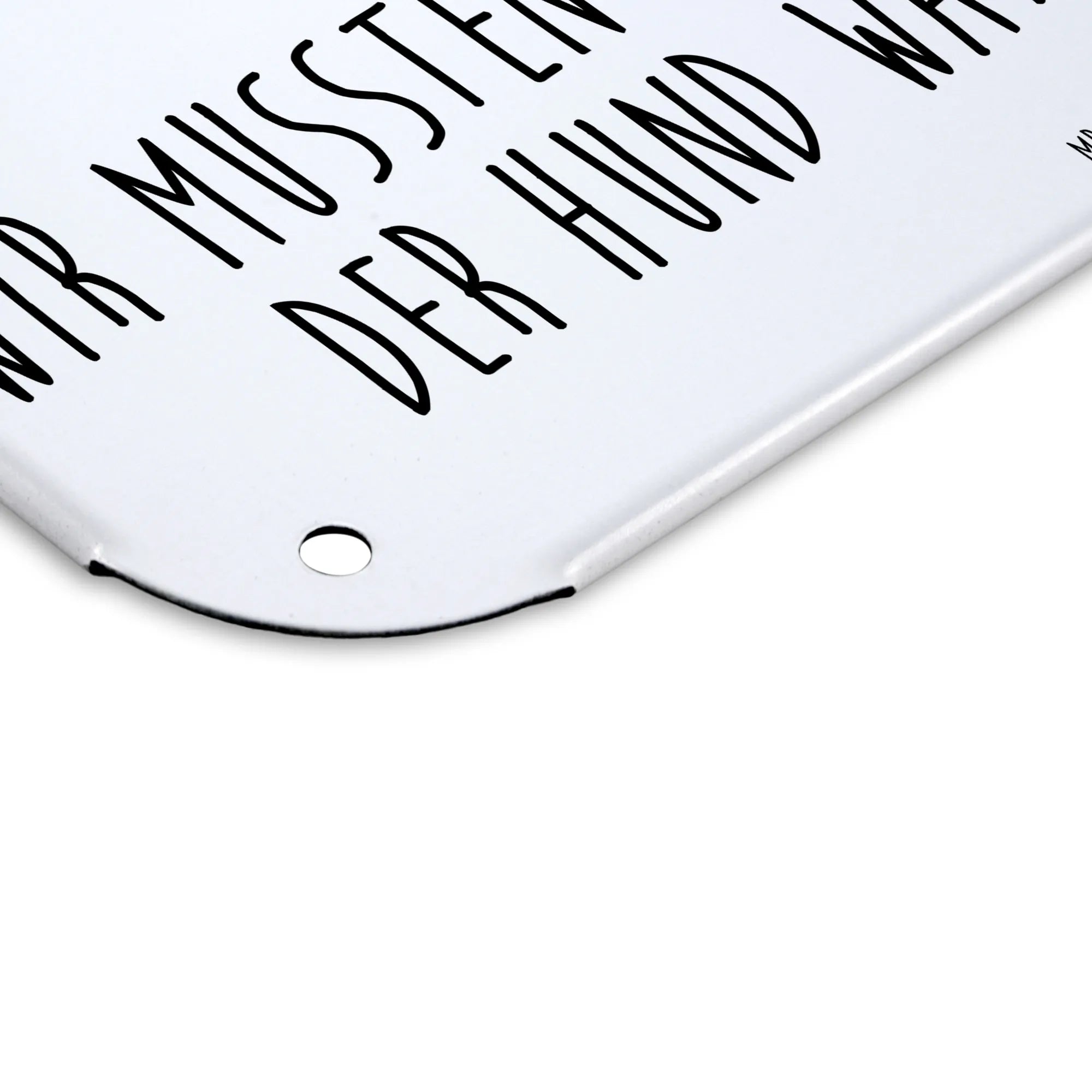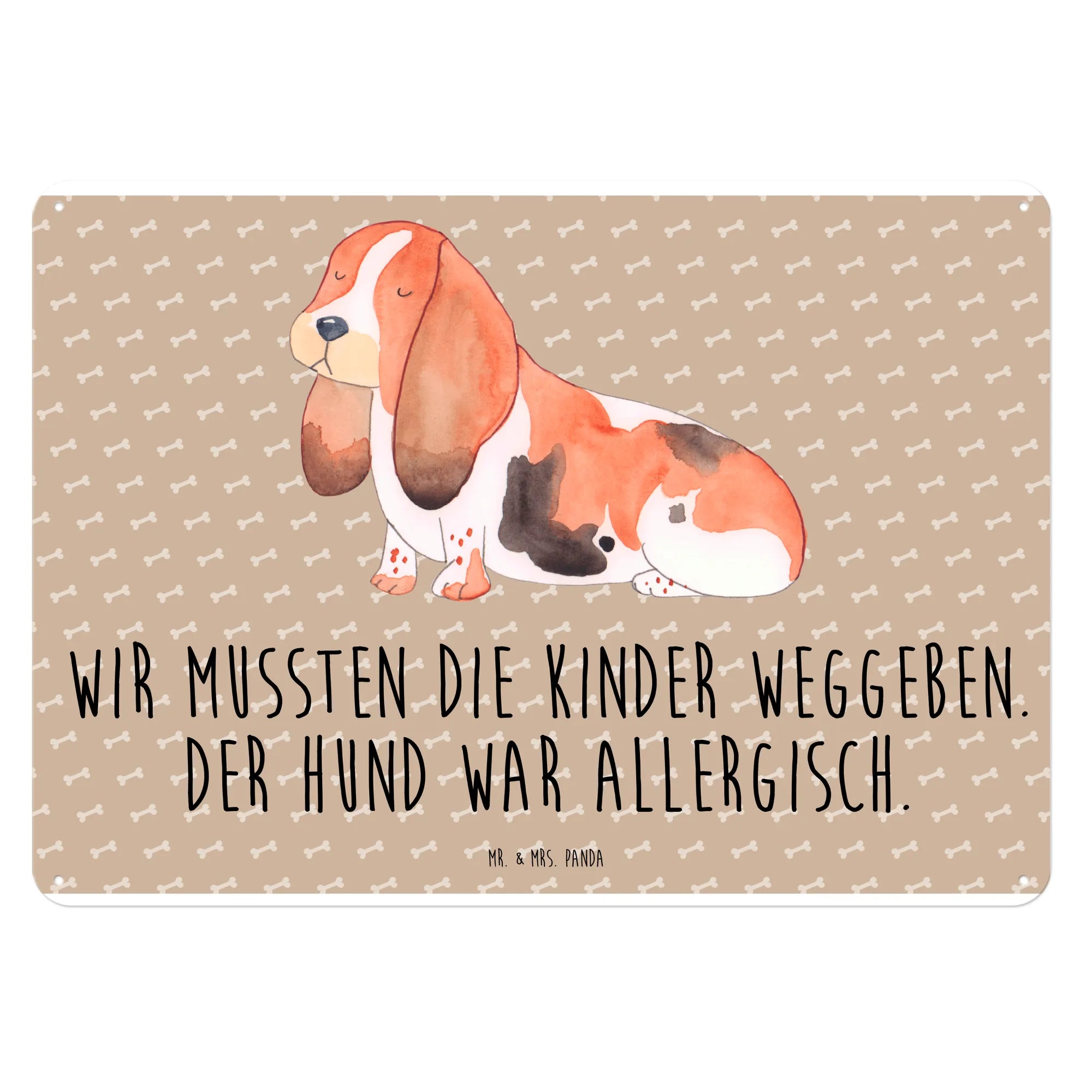 Bist Du ein großer Hundefan oder kennst Du jemanden, der für seinen Basset Hound brennt? Dann ist das Blechschild mit dem süßen Basset Hound von Mr. & Mrs. Panda der perfekte Blickfang für jedes Zuhause! Dieses wundervolle Metallschild kommt mit dem witzigen Spruch: "Wir mussten die Kinder weggeben. Der Hund war allergisch." und ist ideal für alle, die ihren humorvollen Umgang mit der Hundeliebe zeigen möchten.