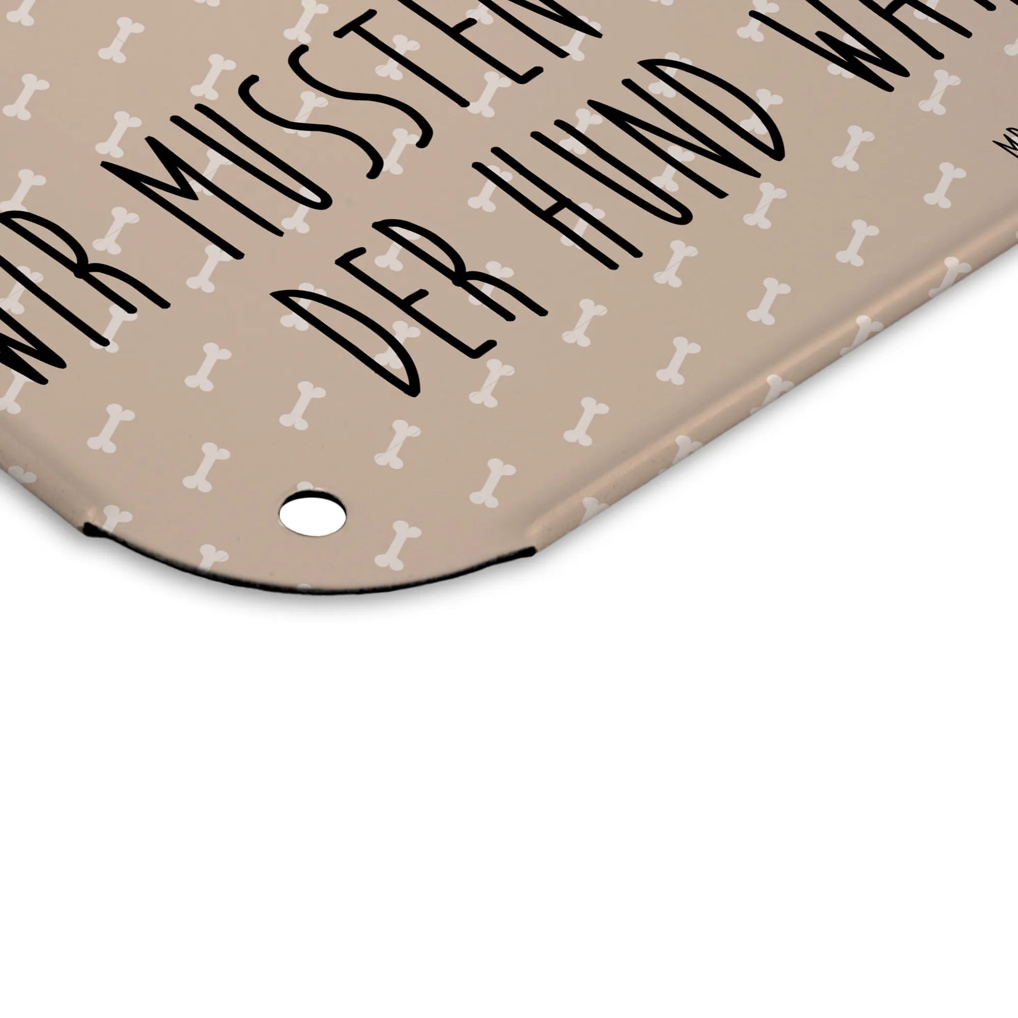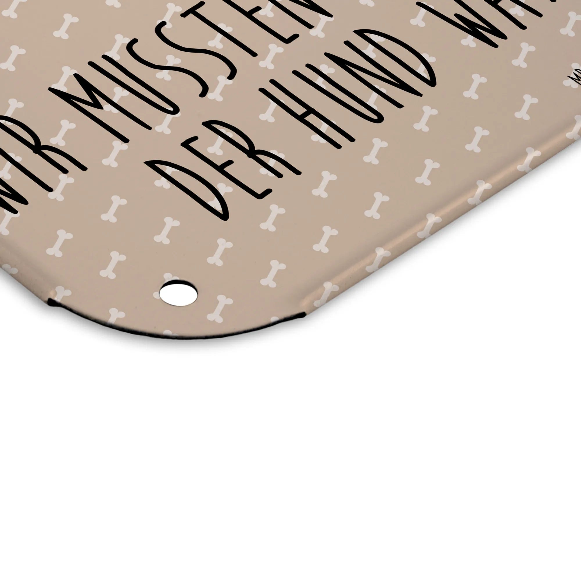 Mit dem liebevoll gestalteten Spruch "Wir mussten die Kinder weggeben. Der Hund war allergisch." bringt dieses Schild nicht nur ein Lächeln auf die Lippen, sondern auch ein Stück Hundeherz ins Zuhause.
