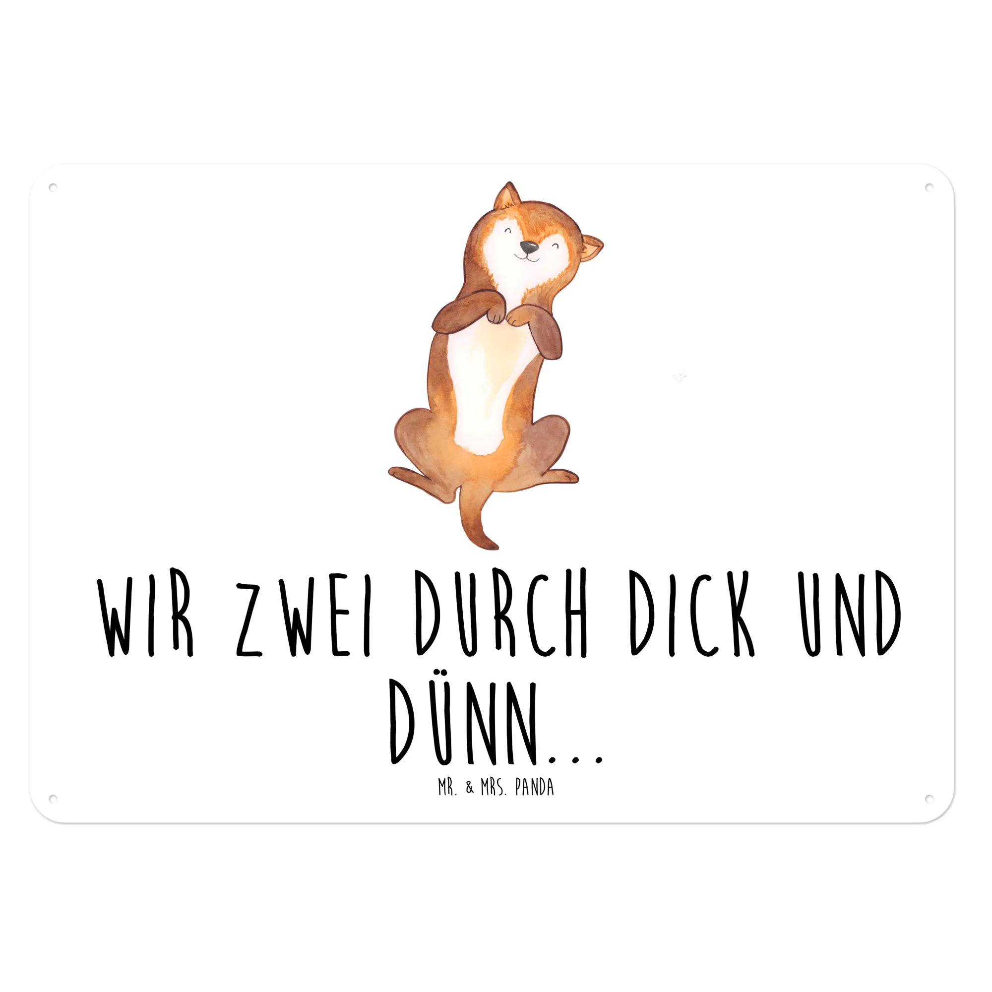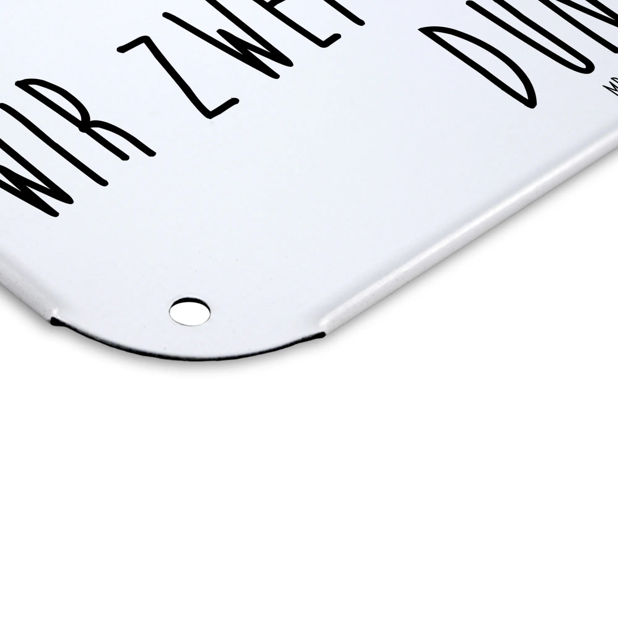Verliere dich in der Vielfalt von liebevoll gestalteten Motiven und Sprüchen und finde das perfekte Geschenk oder Deko-Element für dich oder deine Liebsten. Der Spruch „Wir zwei durch dick und dünn...“ auf dem Schild spricht Bände über die enge Bindung, die wir zu unseren Hunden haben. Hol dir dieses wunderbare Stück Tierliebe nach Hause und erfreue dich jeden Tag daran!