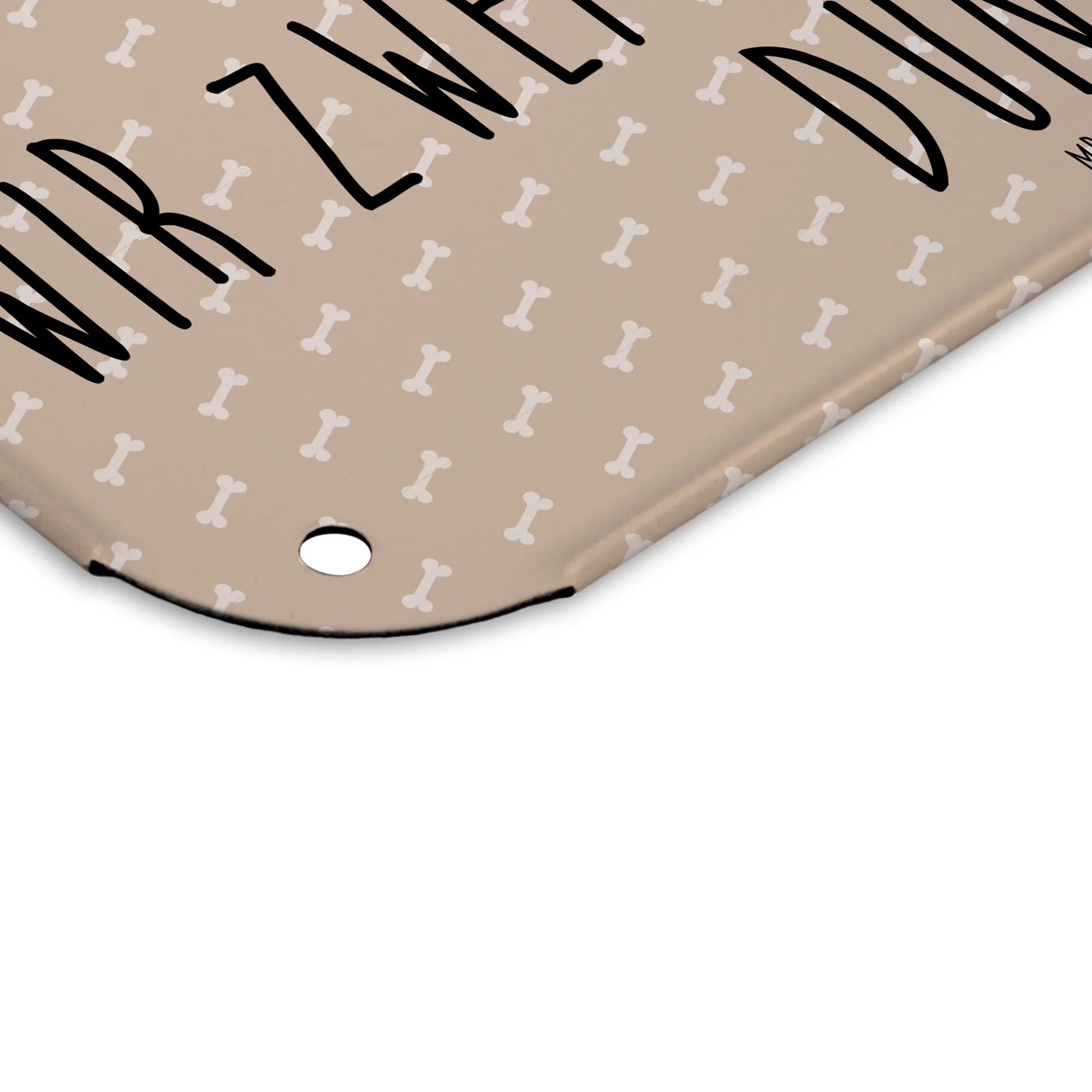 Das Metallschild ist vielseitig einsetzbar - ob als Wanddeko im Wohnzimmer, für die Tür oder als liebevolles Geschenk für Freunde und Familie, die Hunde besitzen und lieben. Es eignet sich besonders gut für Anlässe wie Geburtstage, Einweihungsfeiern oder einfach als kleine Aufmerksamkeit, um jemandem ein Lächeln ins Gesicht zu zaubern. Mit dem herzlichen Slogan "Wir zwei durch dick und dünn..." erinnert es jeden Tag daran, wie wichtig die Beziehung zu Deinem Hund ist.