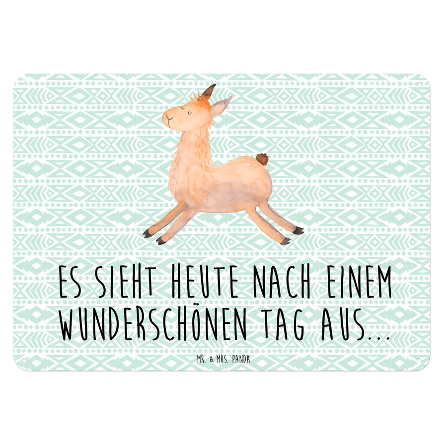 Entdecke das wunderschöne Blechschild "Lama springend" aus der Lama-Kollektion von Mr. & Mrs. Panda! Dieses charmante Schild bringt Lebensfreude in jeden Raum und zaubert dir mit seinem süßen Lama-Motiv und dem fröhlichen Spruch: "Es sieht heute nach einem wunderschönen Tag aus..." ein Lächeln ins Gesicht.