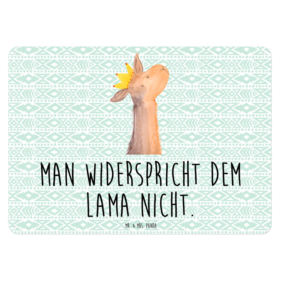 Das edle Blechschild mit dem süßen Lamakopf König aus der Lama-Kollektion von Mr. & Mrs. Panda ist das perfekte Geschenk für alle Lama-Fans!