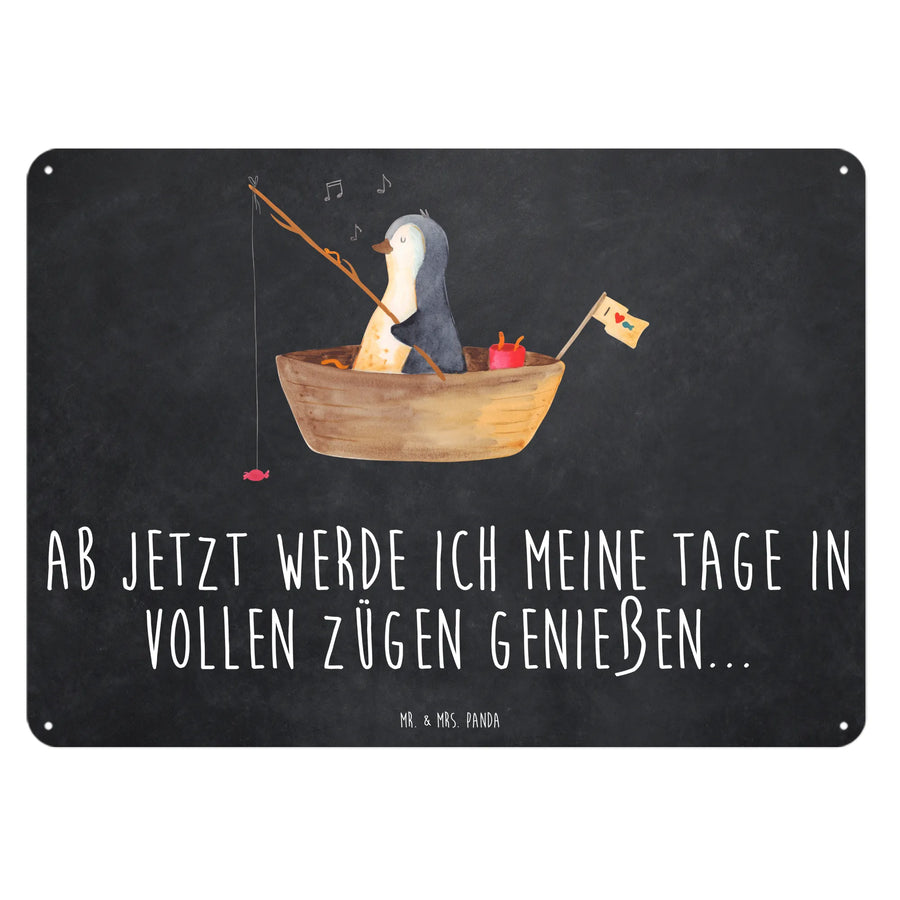 Das wunderschöne Blechschild mit dem niedlichen Pinguin im Angelboot aus der Pinguin-Kollektion von Mr. & Mrs. Panda ist der perfekte Hingucker für jeden Pinguinliebhaber! Wenn Du auf der Suche nach einer besonderen Wanddekoration bist, die Lebensfreude und gute Laune versprüht, dann ist dieses Schild genau das Richtige für dich.