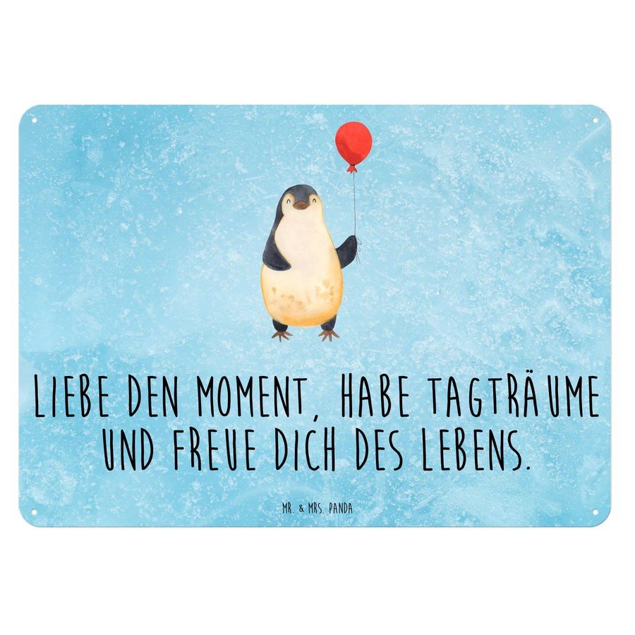Das Blechschild "Pinguin Luftballon" aus der Pinguin-Kollektion von Mr. & Mrs. Panda ist das perfekte Geschenk für jeden, der Lebensfreude und eine Prise Humor schätzt.