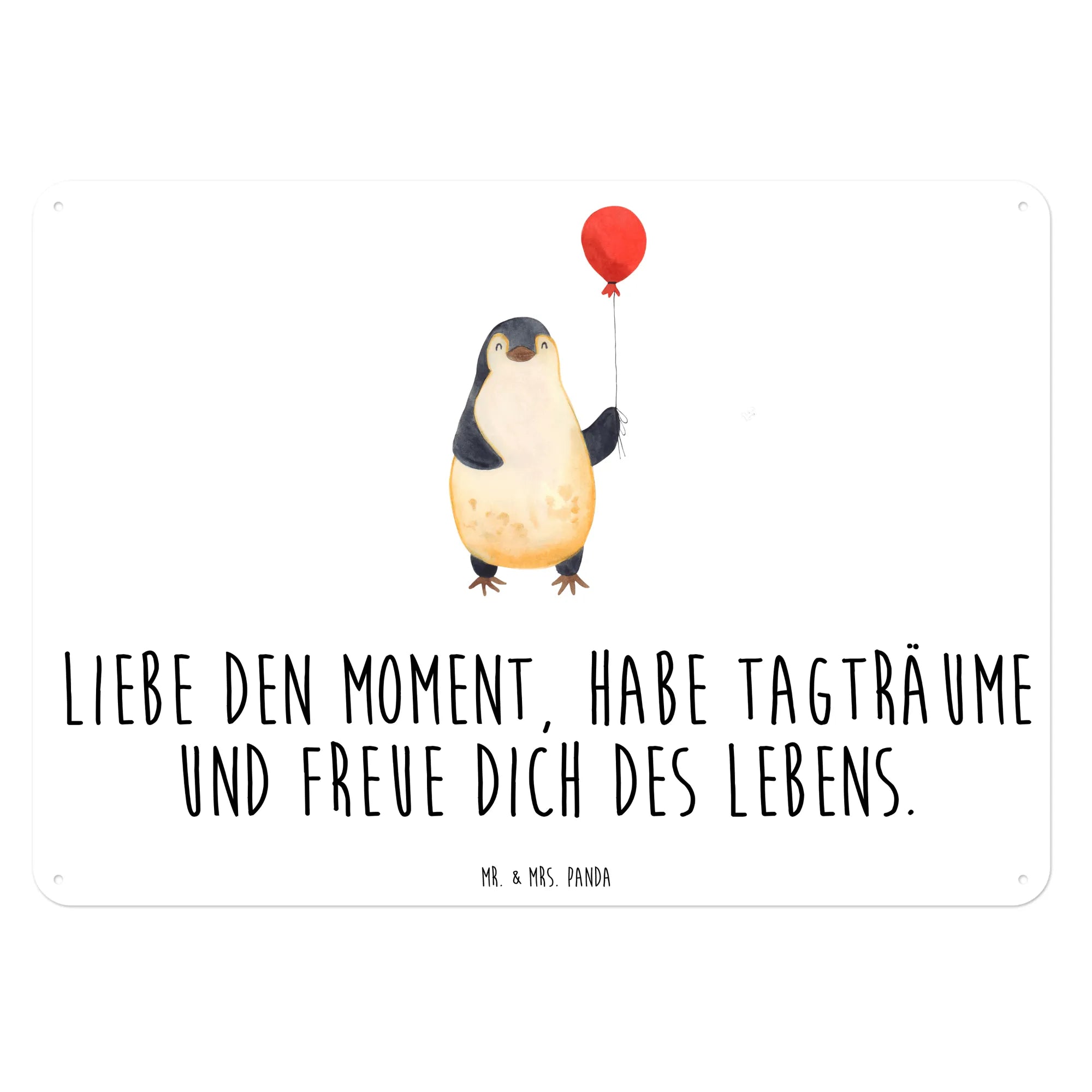 Entdecke unser wundervolles Blechschild mit dem zauberhaften Motiv des Pinguins mit Luftballon aus der einzigartigen Pinguin-Kollektion von Mr. & Mrs. Panda! Dieses edle Schild macht nicht nur jede Wand zum echten Hingucker, sondern versprüht auch Lebensfreude und Glück. Mit seinem liebevollen Design und dem motivierenden Spruch "Liebe den Moment, habe Tagträume und freue dich des Lebens" ist es das perfekte Geschenk für deine beste Freundin, eine Mutter, oder einfach für jeden, der die kleinen Momente im Leben zu schätzen weiß.