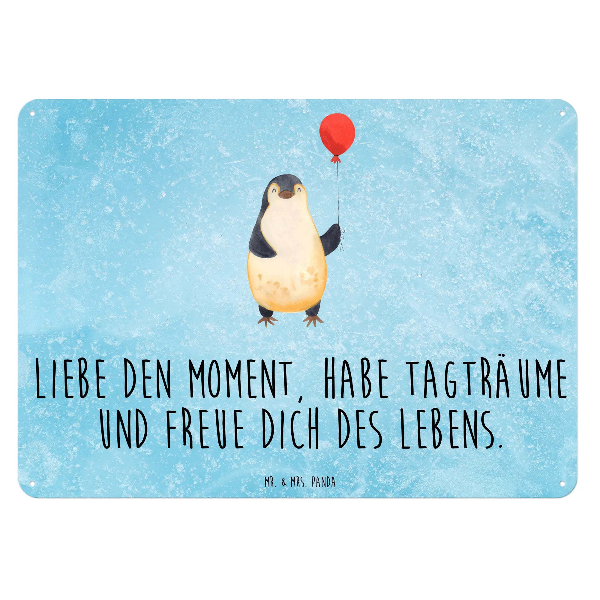 Dank der 4 Bohrungen lässt sich das Schild ganz einfach anbringen, sodass du im Nu für eine fröhliche Atmosphäre sorgen kannst. Der leichte Pflegehinweis, dass es einfach mit einem feuchten Tuch abgewischt werden kann, macht die Pflege zusätzlich kinderleicht. Verschenke Lebensfreude in Form von Kunst und mache Deinen Liebsten eine Freude mit diesem einzigartigen Blechschild aus der Pinguin-Kollektion von Mr. & Mrs. Panda. Es ist mehr als nur ein Dekorationsartikel – es ist eine tägliche Erinnerung daran, das Leben zu lieben und Tagträume zu leben. Lass die Pinguine in Dein Zuhause einziehen und erfreue dich an der Leichtigkeit und Lebenslust, die sie ausstrahlen!