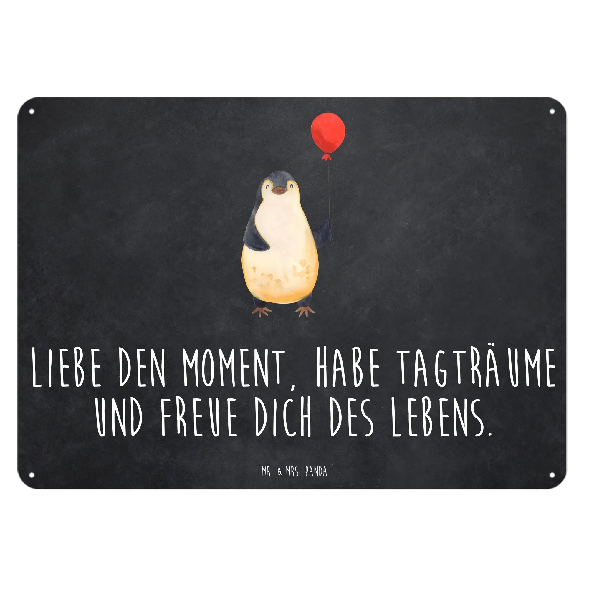 Ein weiteres Plus: Das Schild ist für den Innenbereich geeignet und lässt sich einfach mit einem feuchten Tuch reinigen. Egal, ob du es dir selbst gönnen oder jemand anderem eine Freude machen möchtest – das Blechschild ist die perfekte Wahl für alle, die eine positive Botschaft lieben und einen Hauch von Lebensfreude in ihren Alltag bringen möchten. Lass den Pinguin mit Luftballon zum gemeinsamen Traum und Glücksbringer in deinem Zuhause werden – er wird alle Blicke auf sich ziehen und viel Freude verbreiten! Wenn du also nach einer originellen Deko-Idee oder einem besonderen Geschenk suchst, ist dieses Wandschild von Mr. & Mrs. Panda genau das Richtige für dich!