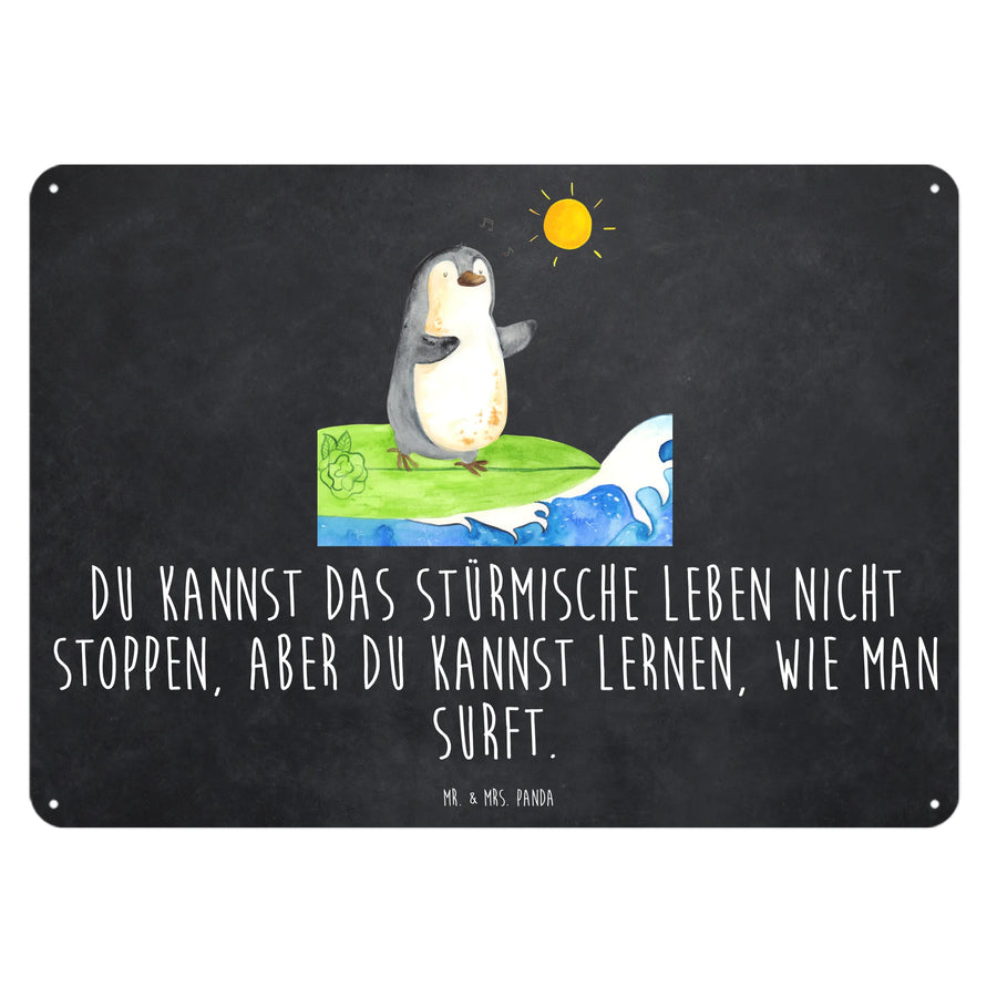 Entdecke unser wunderschönes Blechschild mit dem süßen Pinguin Surfer von Mr. & Mrs. Panda!