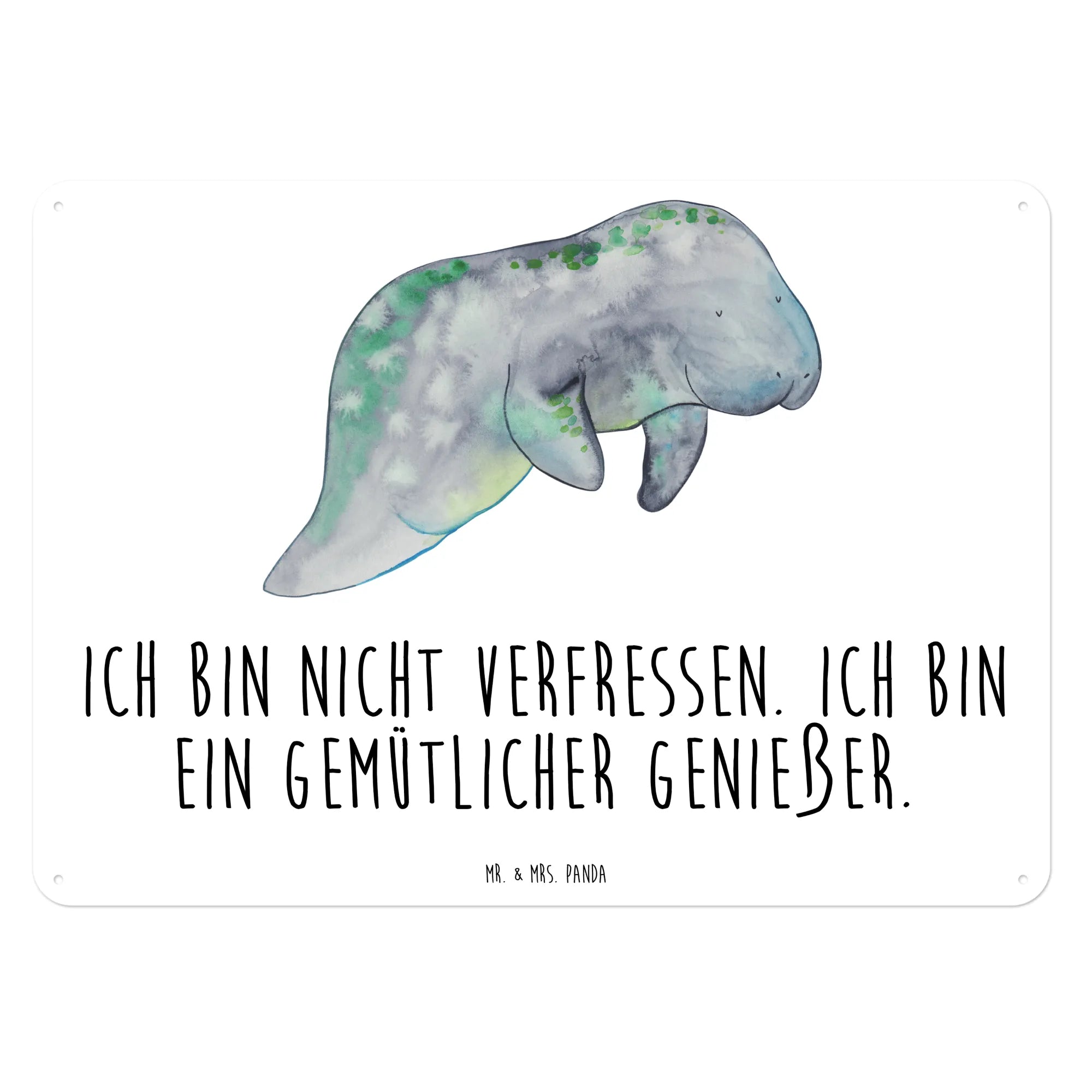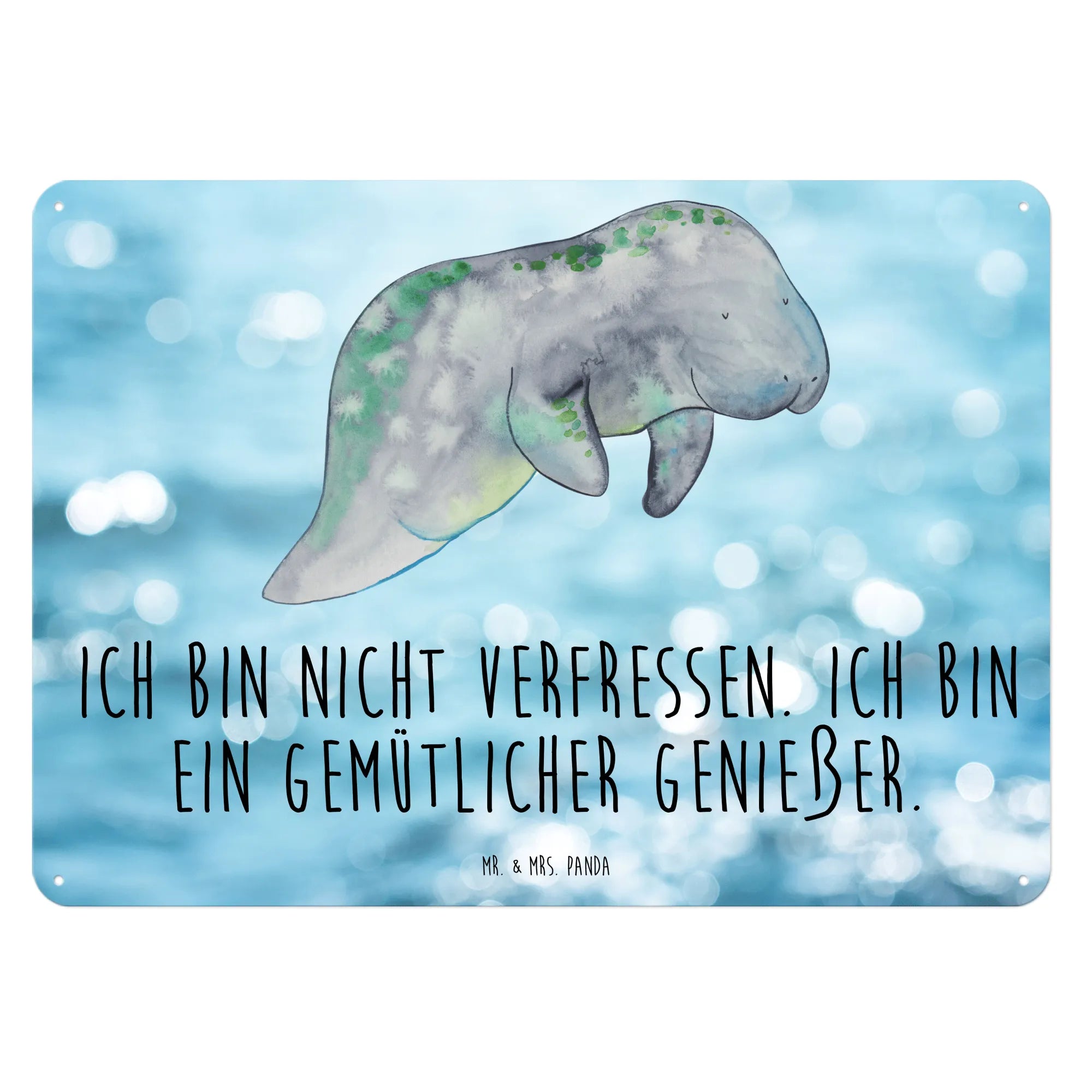 Das wunderschöne Blechschild 'Seekuh chillt' aus der Meerestiere Kollektion von Mr. & Mrs. Panda ist nicht nur ein echter Hingucker, sondern auch der perfekte Begleiter für alle, die das Meer und die Gemütlichkeit lieben. Die handgezeichnete Illustration einer entspannten Seekuh in sanften blauen und grünen Aquarellfarben bringt eine ruhige und harmonische Atmosphäre in jeden Raum. Mit dem witzigen Slogan 'Ich bin nicht Verfressen. Ich bin ein gemütlicher Genießer.' spricht dieses Schild die Herzen von Naschkatzen und Genussmenschen an. Es ist ideal für alle, die gerne Abnehmen möchten, dabei aber auch die kleinen Freuden des Lebens wie Süßigkeiten schätzen und nicht auf eine gemütliche Auszeit auf dem Sofa verzichten wollen.