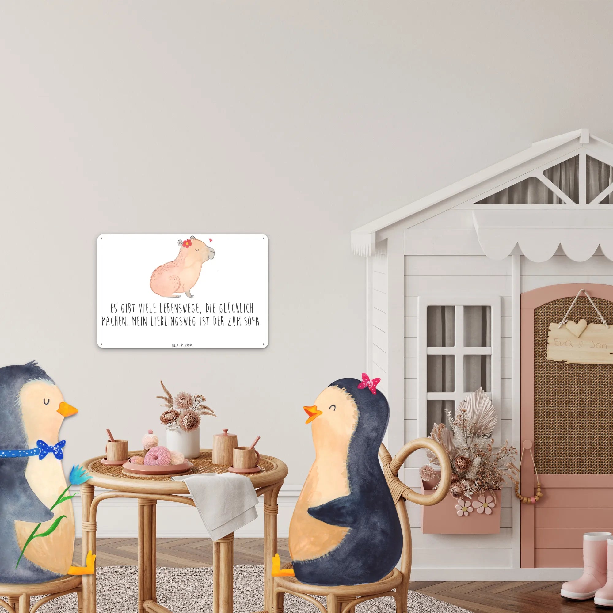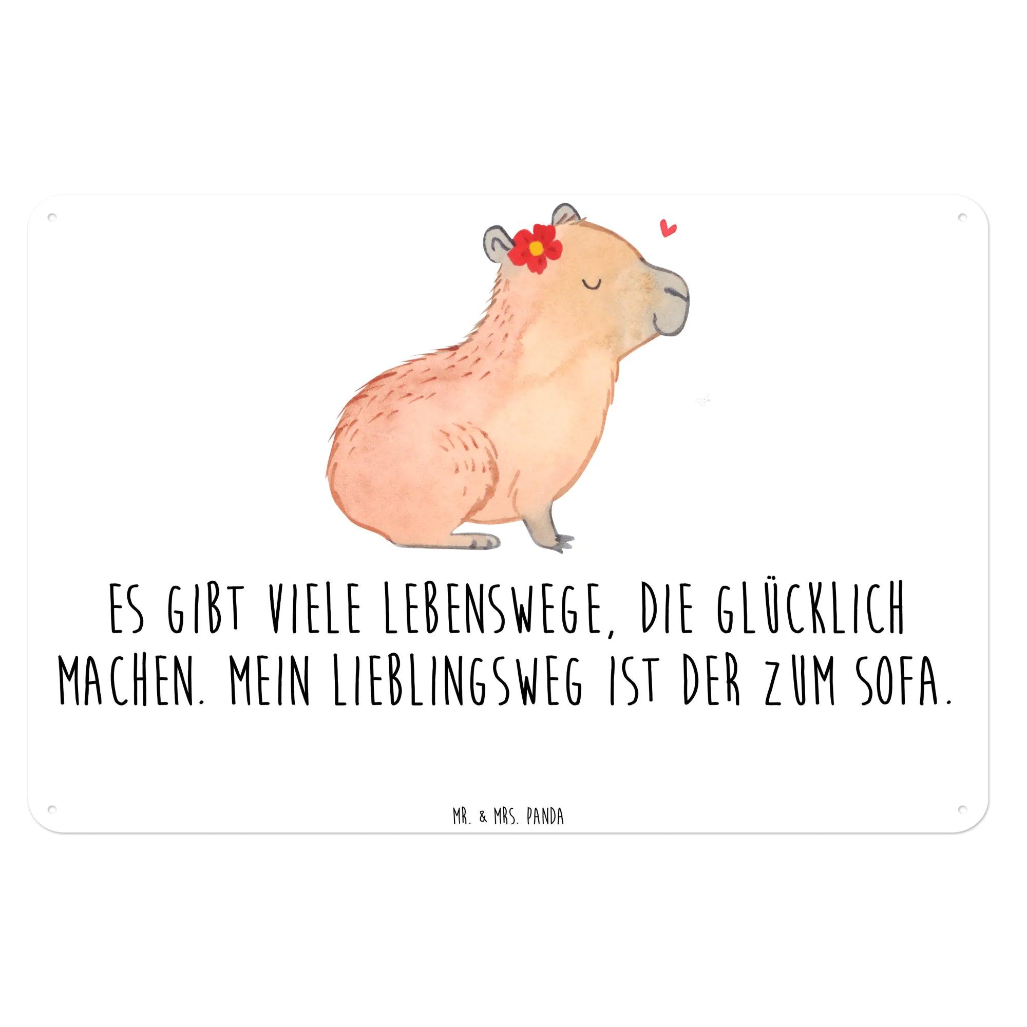 Metalowy szyld Kapibara kwiat - DIN A3 - Biały