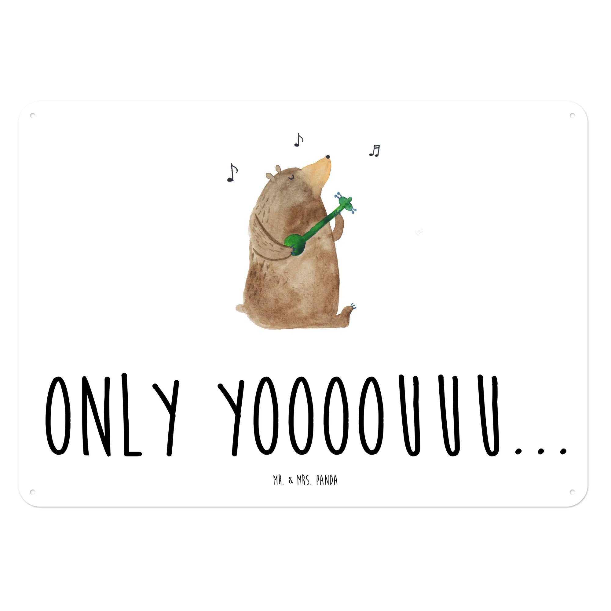 Metalowy szyld niedźwiedź Gitara - DIN A6 - biały