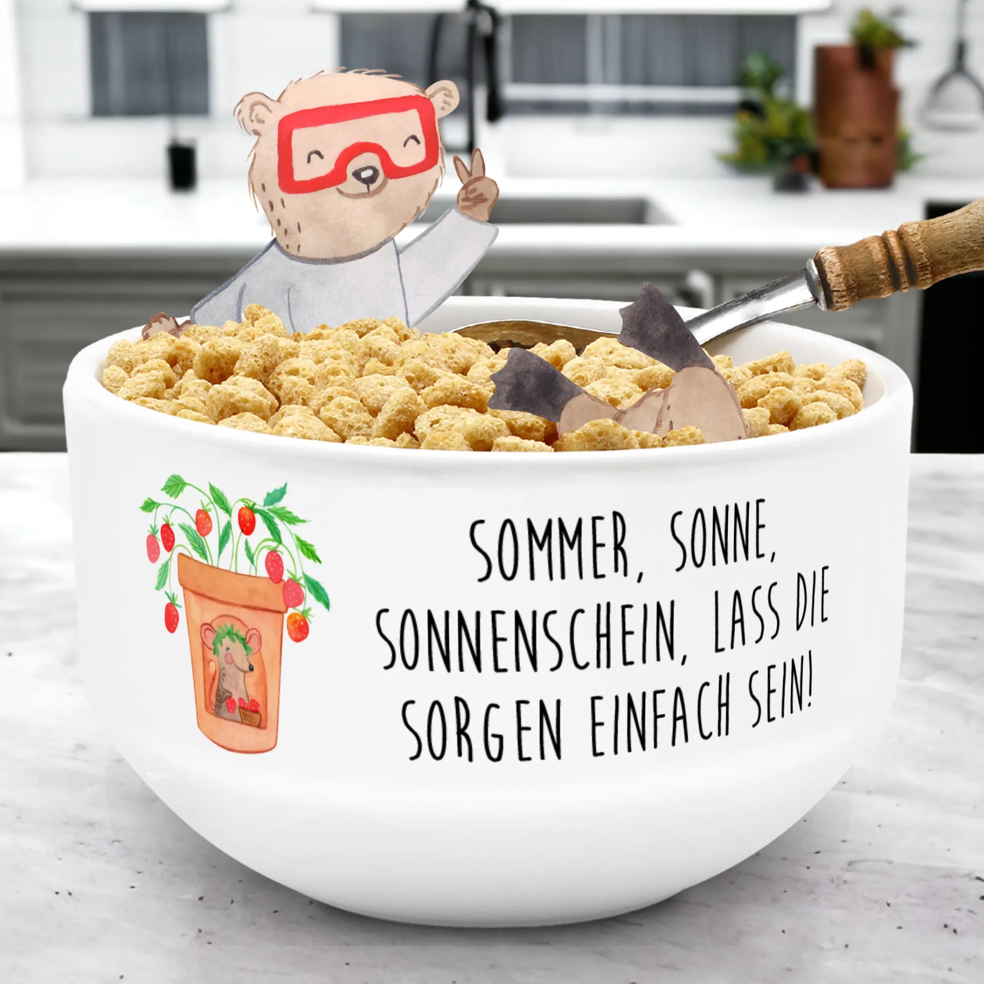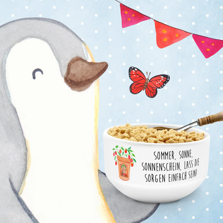 Die wunderschöne Müslischale Sommer von Mr. & Mrs. Panda ist das perfekte Geschenk für alle, die die sonnige Jahreszeit lieben! Mit ihrem fröhlichen Spruch "Sommer, Sonne, Sonnenschein, lass die Sorgen einfach sein!" zaubert sie jedem ein Lächeln ins Gesicht.