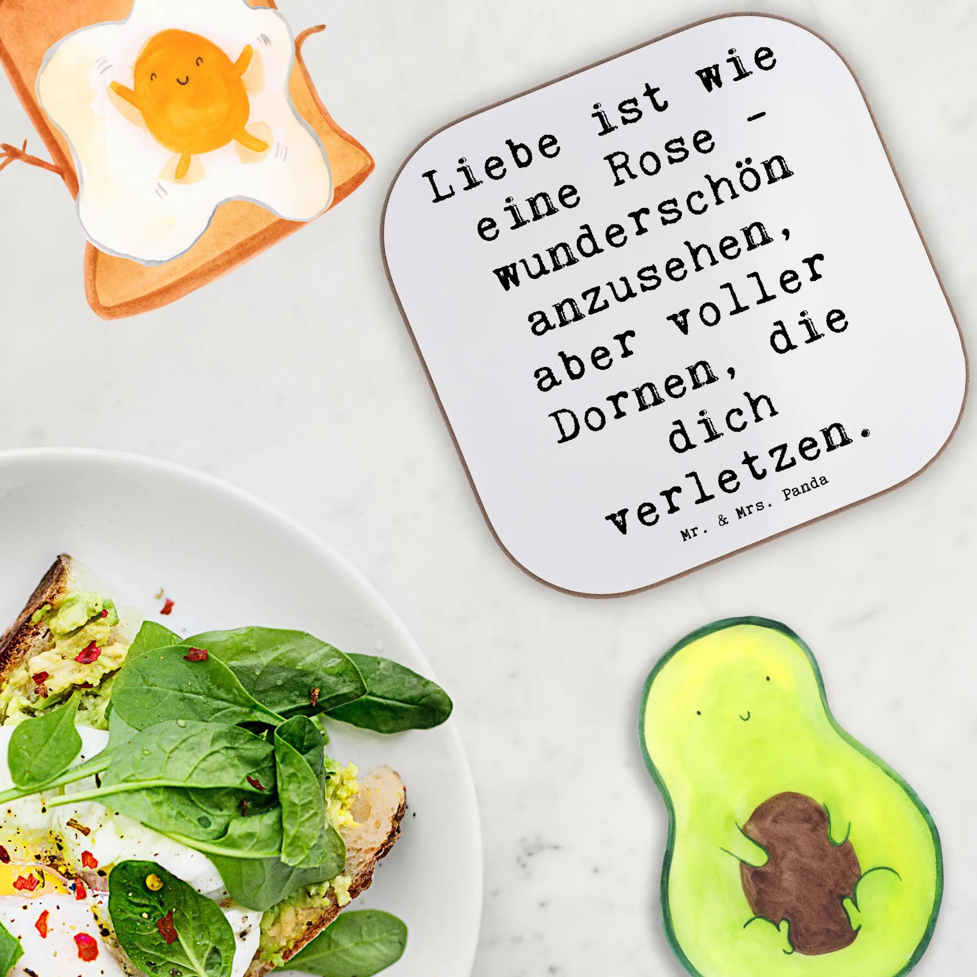 Untersetzer Spruch Rose Herzschmerz - Hartfaser - Weiß