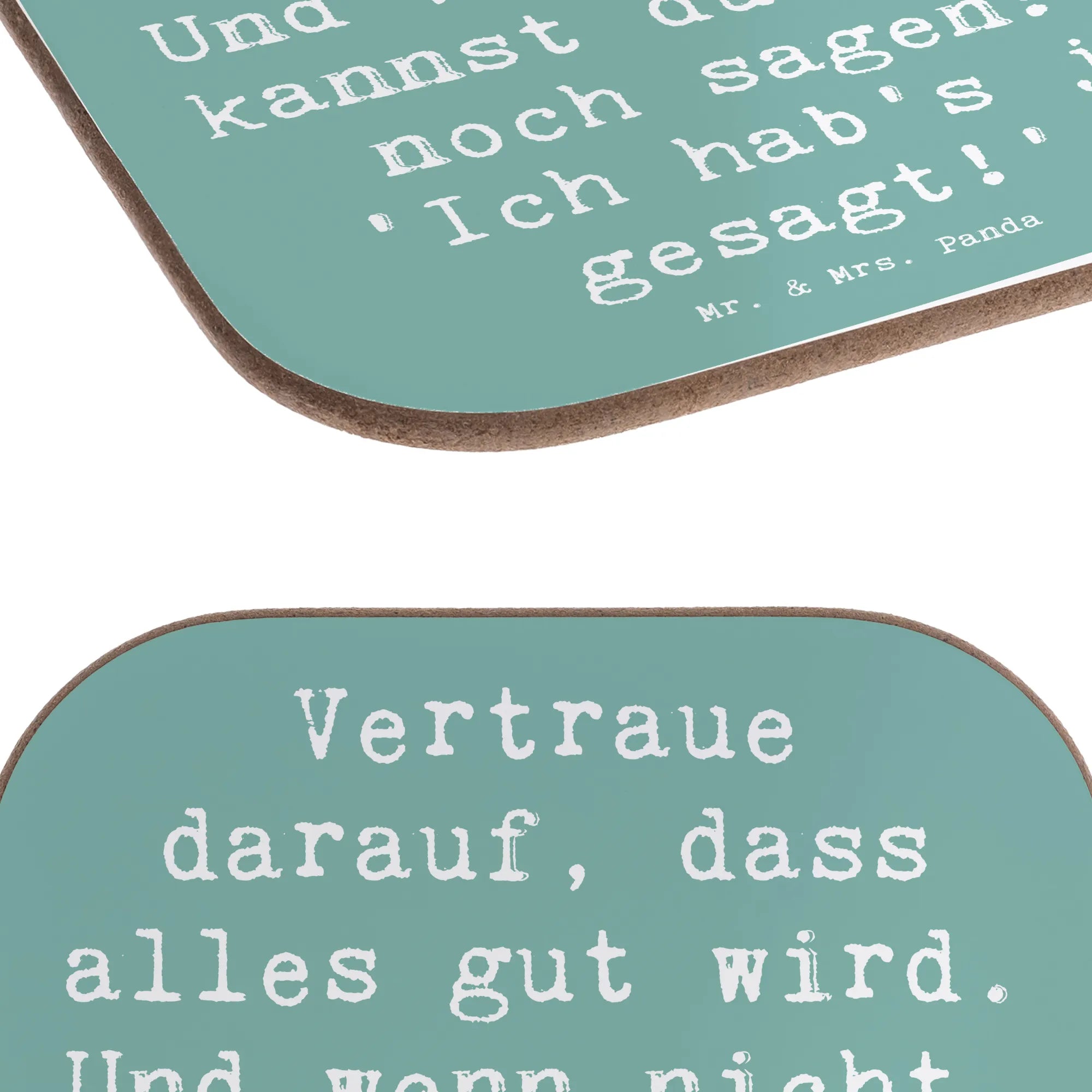 Dieser wunderschöne quadratische Untersetzer mit dem inspirierenden Spruch "Vertraue darauf, dass alles gut wird. Und wenn nicht, kannst du immer noch sagen: 'Ich hab's ja gesagt!'" ist mehr als nur ein Getränkeuntersetzer. Er schützt deinen Tisch vor Abdrücken, Kratzern und extremen Temperaturen, während er gleichzeitig für eine positive Stimmung sorgt. Perfekt geeignet für gemütliche Abende mit Freunden oder entspannte Nachmittage beim Kaffee.