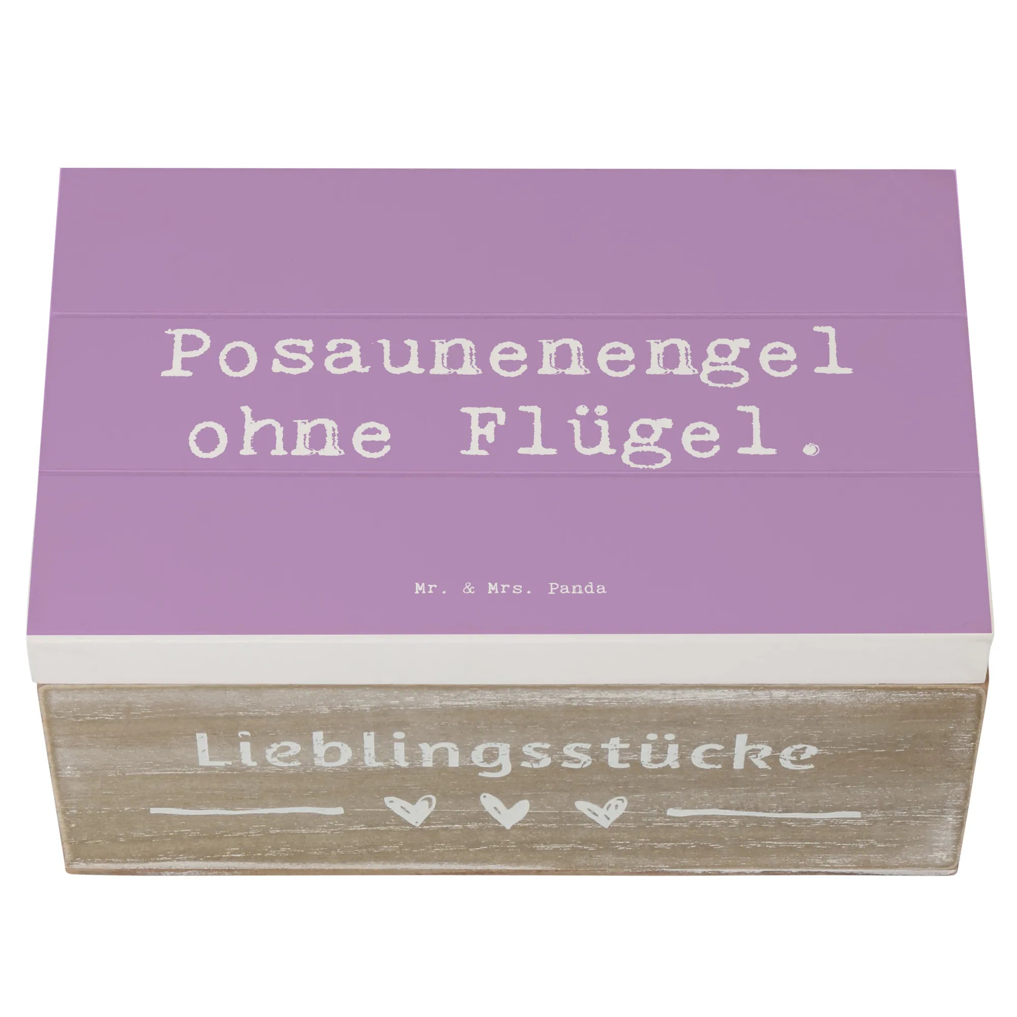 Die wunderschöne Holzkiste von Mr. & Mrs. Panda ist ein echtes Schmuckstück für alle Musikliebhaber und Posaunenspieler! Mit ihrem zauberhaften Motiv der Posaune und dem liebevollen Spruch 'Posaunenengel ohne Flügel' lässt sie nicht nur Herzen höherschlagen, sondern bietet dir auch einen idealen Platz für all deine wertvollen Erinnerungen. Ob für die ersten Schritte in die Musikwelt, besondere Anlässe wie die Kommunion oder Konfirmation, oder einfach nur als stilvolle Aufbewahrung für Fotos und andere Schätze, diese Kiste ist ein wahrhaft vielseitiges Geschenk.