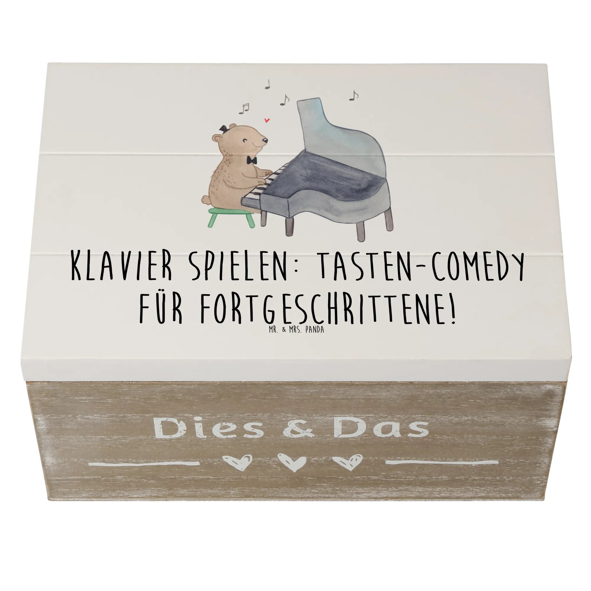 Du suchst nach dem perfekten Geschenk für einen Musiker oder Musikliebhaber? Dann ist die Holzkiste mit dem liebevollen Klavier-Motiv von Mr. & Mrs. Panda genau das Richtige für dich!
