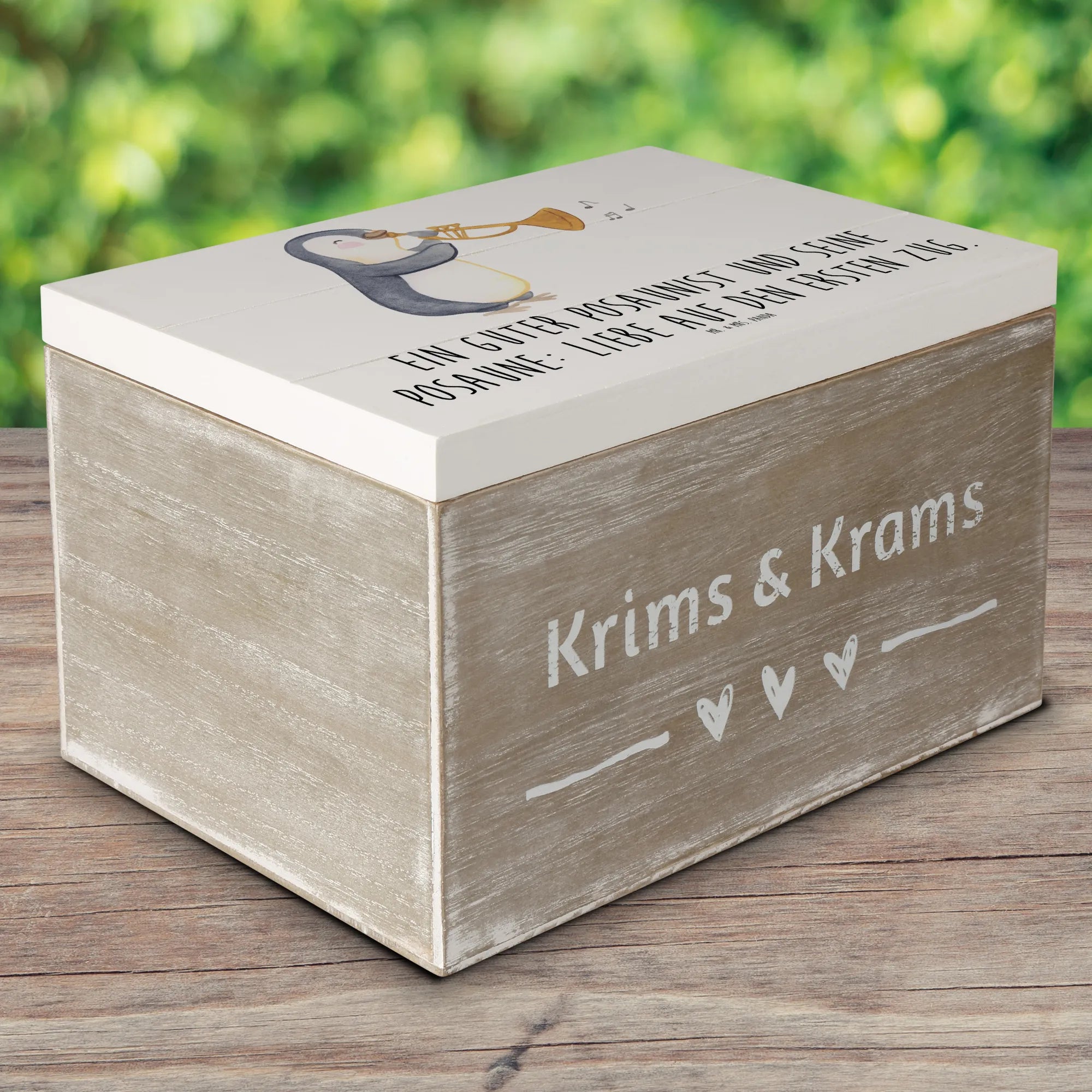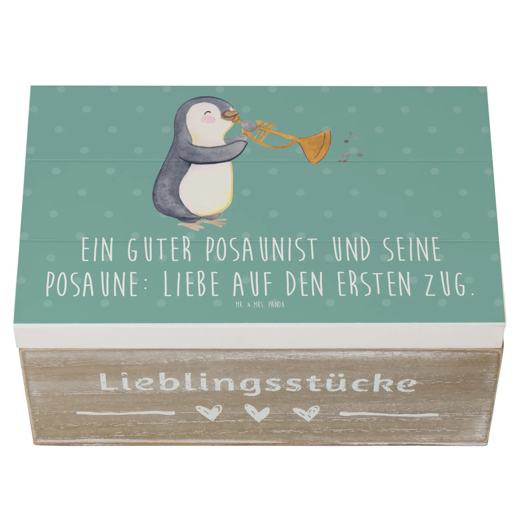 Die perfekte Holzkiste für Musikliebhaber! Diese wunderschöne Holzkiste von Mr. & Mrs. Panda ist nicht nur ein stilvolles Aufbewahrungsgeschirr, sondern auch das ideale Geschenk für jeden Posaunisten und Musikbegeisterten. Mit einem liebevoll gestalteten Motiv einer Posaune und dem zauberhaften Slogan 'Ein guter Posaunist und seine Posaune: Liebe auf den ersten Zug.' ist sie ein echter Blickfang.