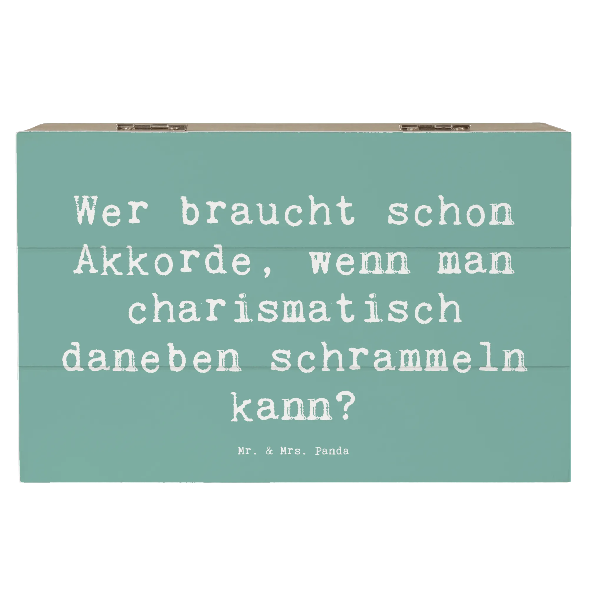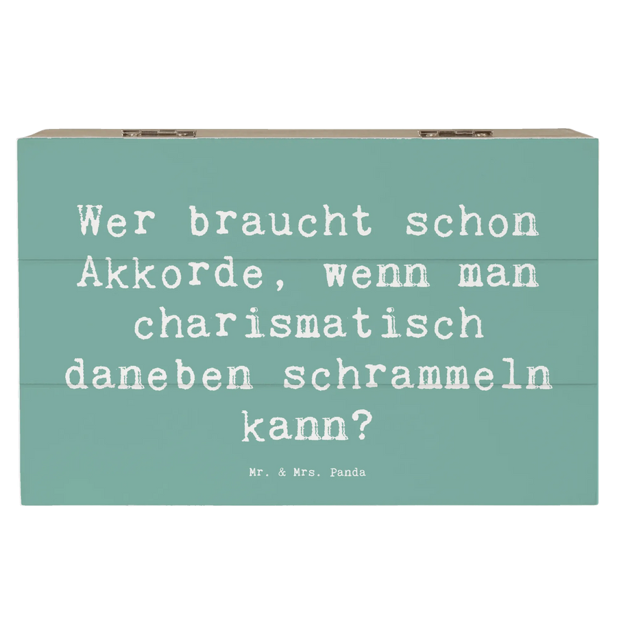 Skrzynia drewniana Przysłowie Wer braucht schon Akkorde, wenn man charismatisch daneben schrammeln kann? - 19 x 12 cm - Meeresbrise