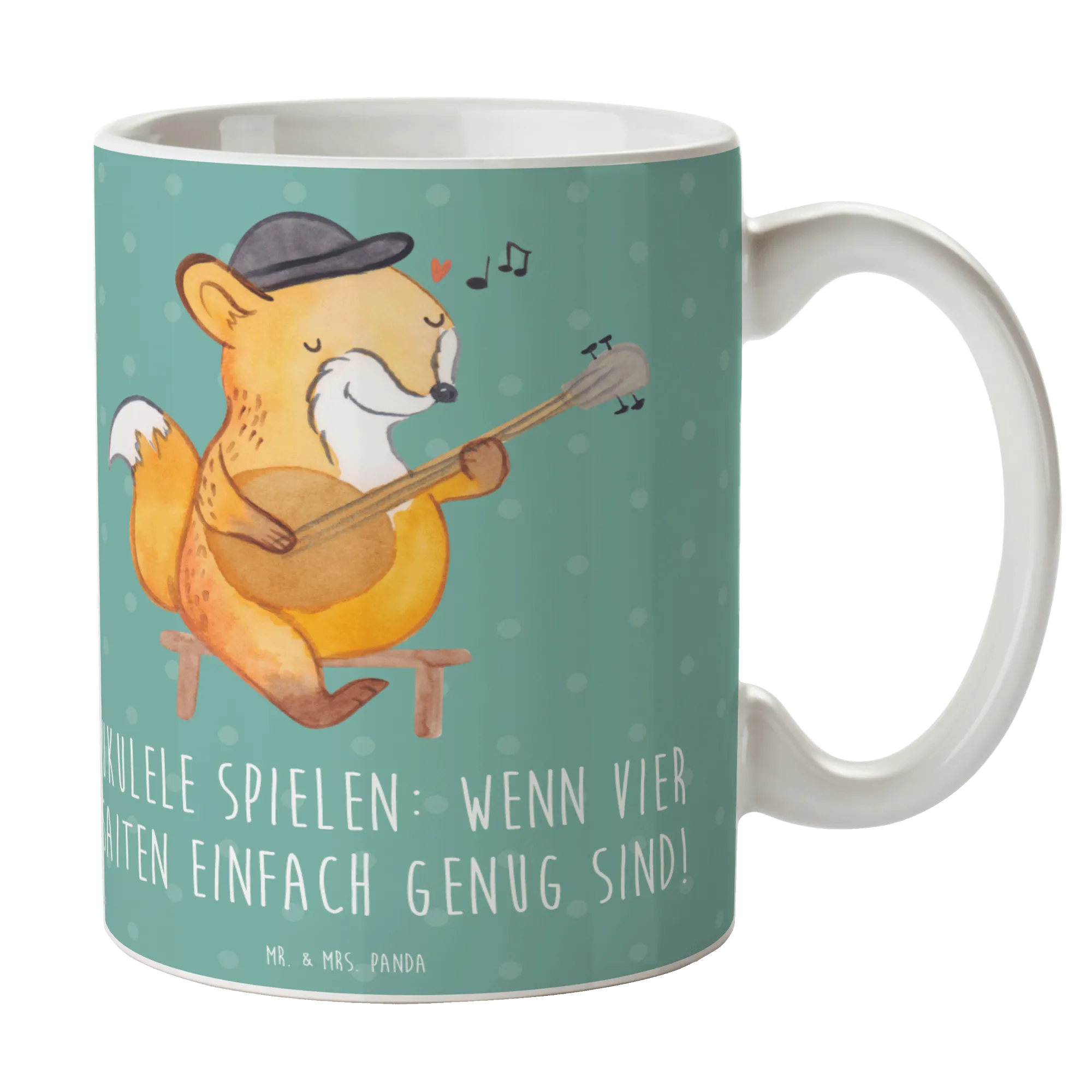 Suchst du das perfekte Geschenk für Ukulele-Fans? Unsere Mr. & Mrs. Panda Tasse mit Ukulele-Motiv und dem witzigen Spruch „Ukulele spielen: Wenn vier Saiten einfach genug sind!“ ist genau das: ein kleines Stück Hawaii für deinen Alltag. ☀️