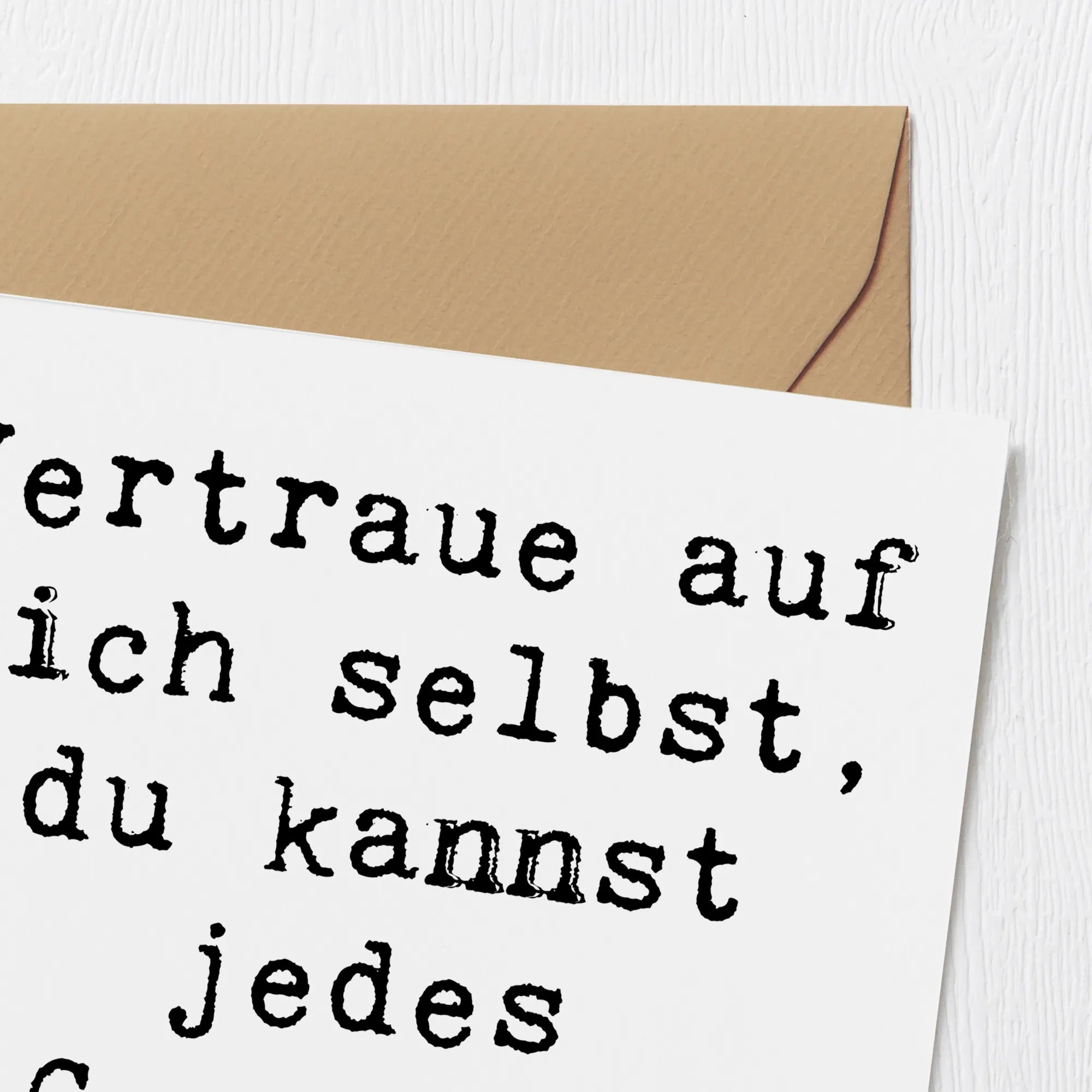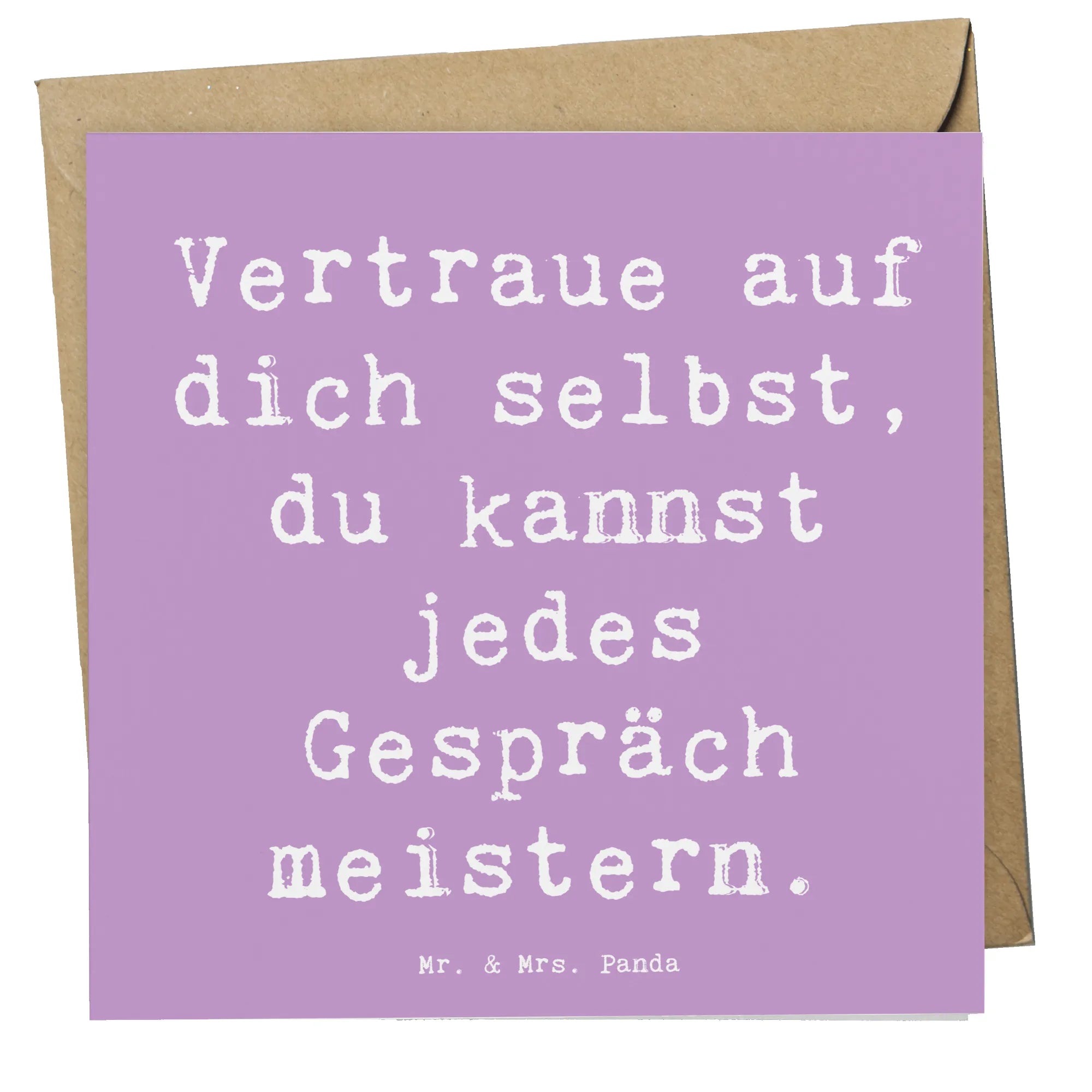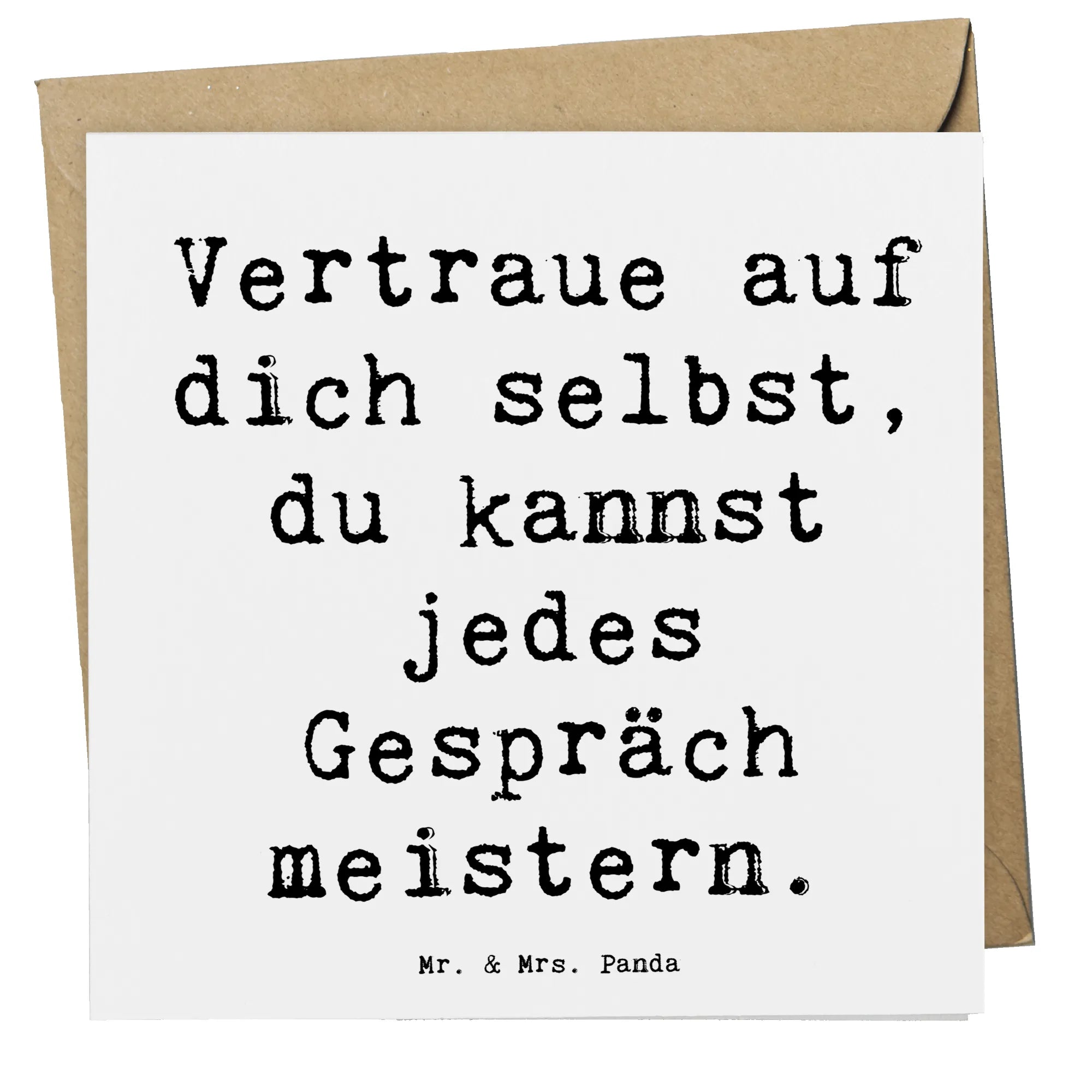 Auf der Vorderseite der Karte befindet sich der ermutigende Spruch "Vertraue auf dich selbst, du kannst jedes Gespräch meistern". Dieses Zitat inspiriert und gibt Zuversicht, wenn es darauf ankommt. Die matte Innenseite ist ideal für eine persönliche Botschaft oder Glückwünsche, die dem Empfänger zeigen, dass man an ihn denkt. Zudem kommt die Karte mit einem edlen Umschlag, was sie zur perfekten Wahl für feierliche Anlässe macht.