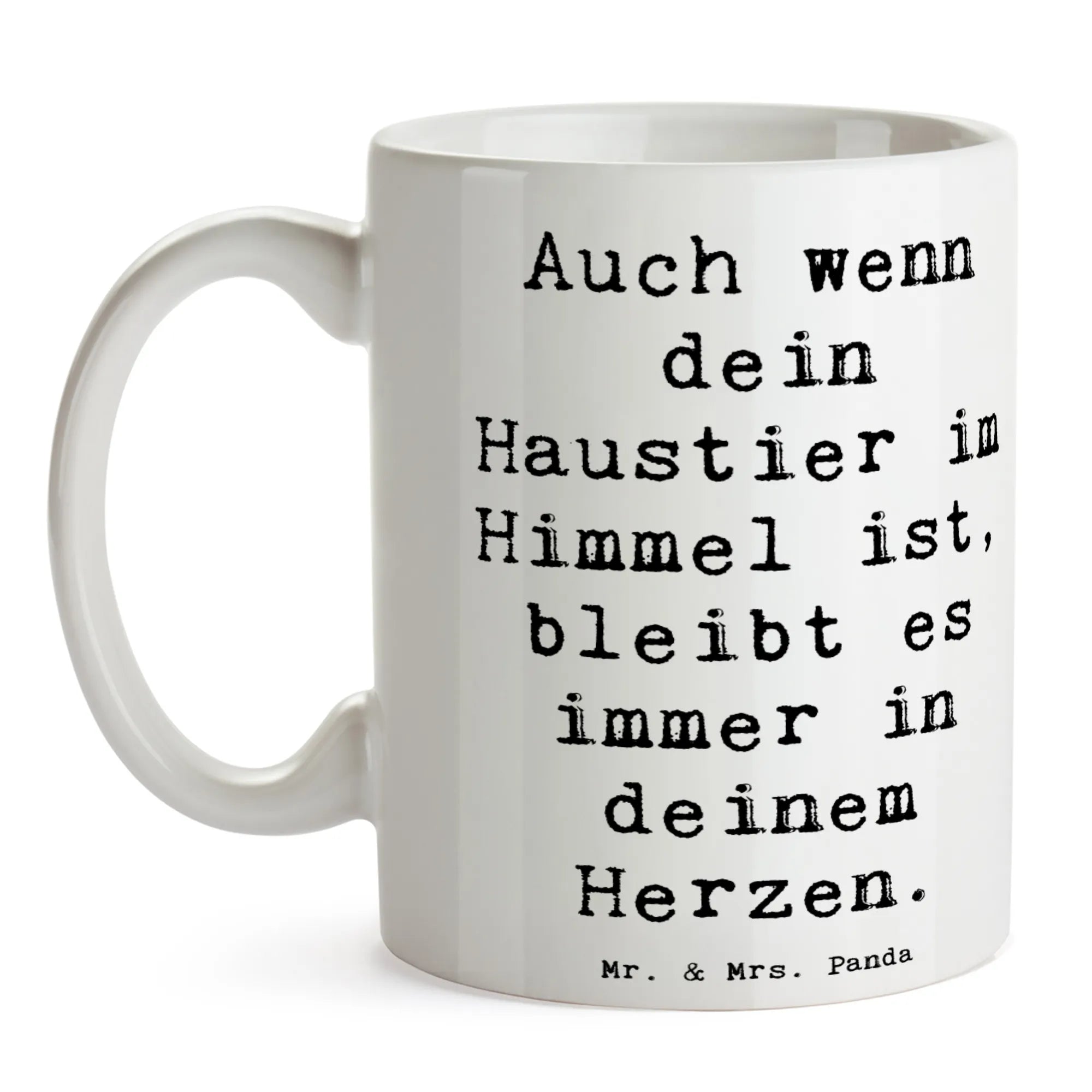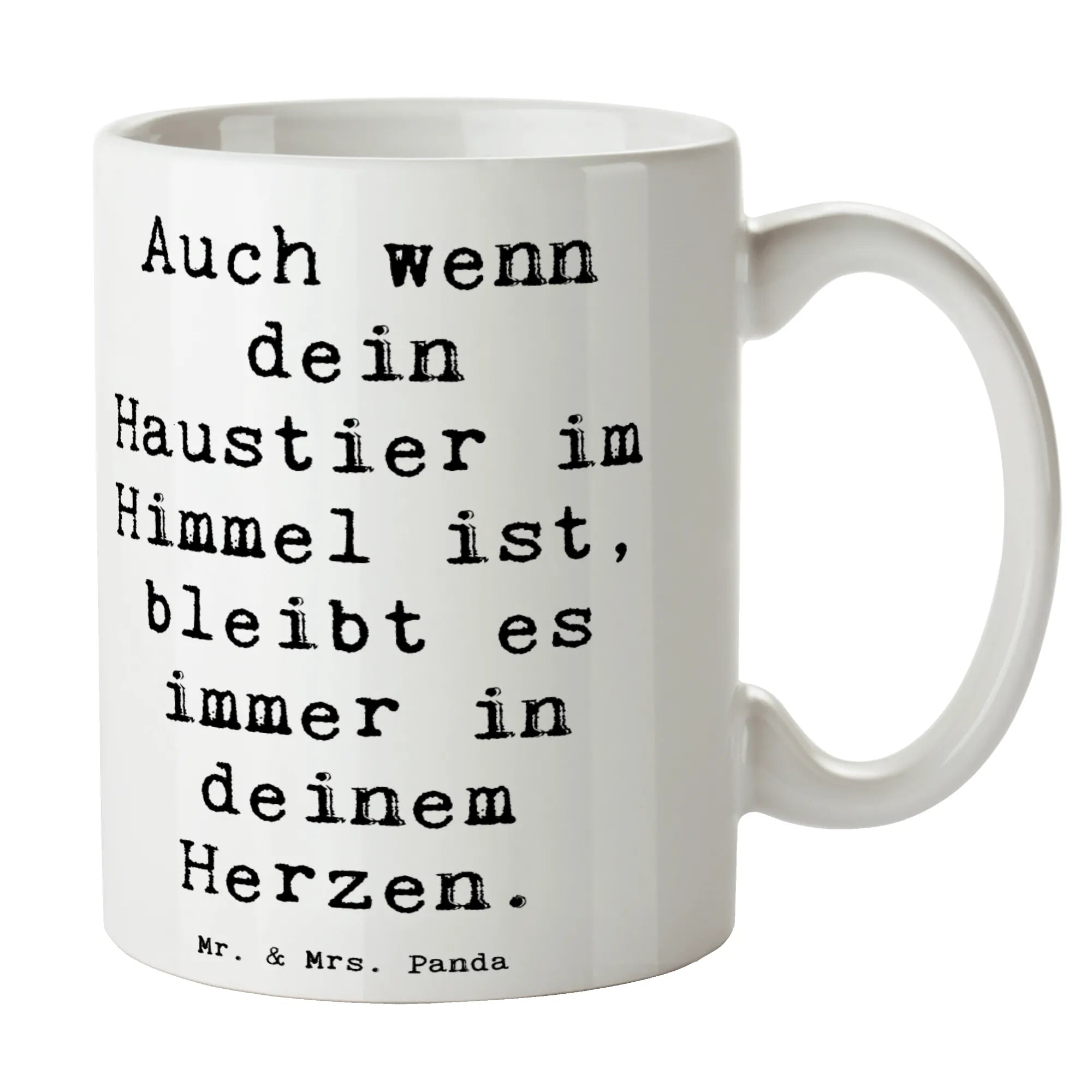 Die wunderschöne Tasse von Mr. & Mrs. Panda ist der perfekte Begleiter für jeden Morgen und ein zauberhaftes Geschenk für alle, die den Verlust eines geliebten Haustiers verarbeiten müssen. Diese liebevoll gestaltete Keramiktasse gehört zur besonderen 'Mutmacher' Kollektion und bringt Trost und Zuversicht in schwierigen Zeiten. Mit dem einfühlsamen Spruch 'Auch wenn dein Haustier im Himmel ist, bleibt es immer in deinem Herzen' erinnert sie uns daran, dass die Erinnerungen und die Liebe niemals verloren gehen.