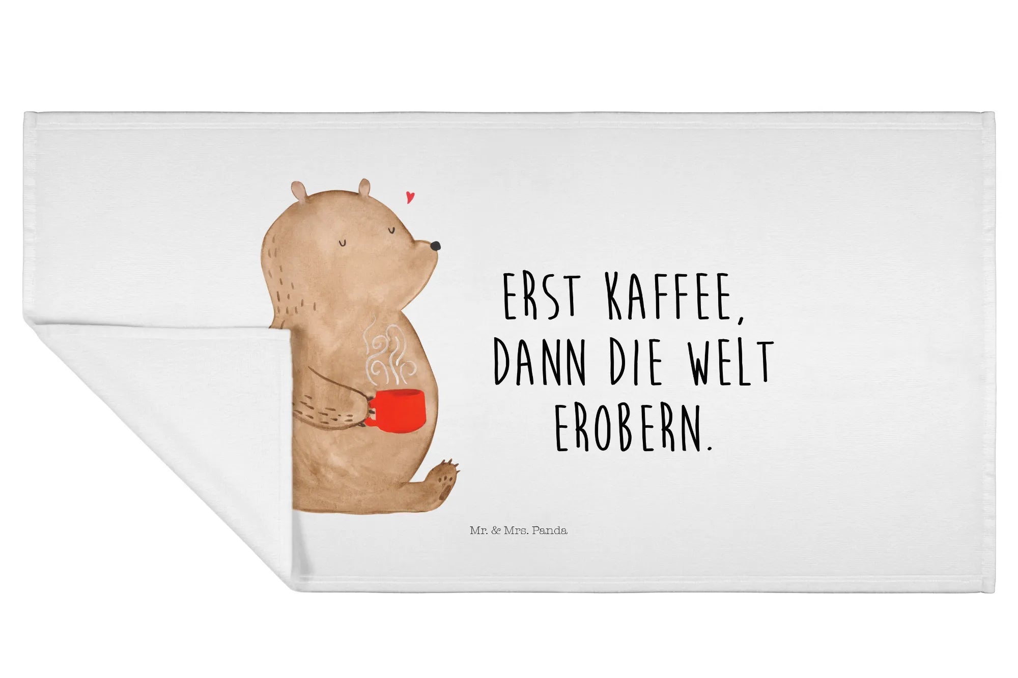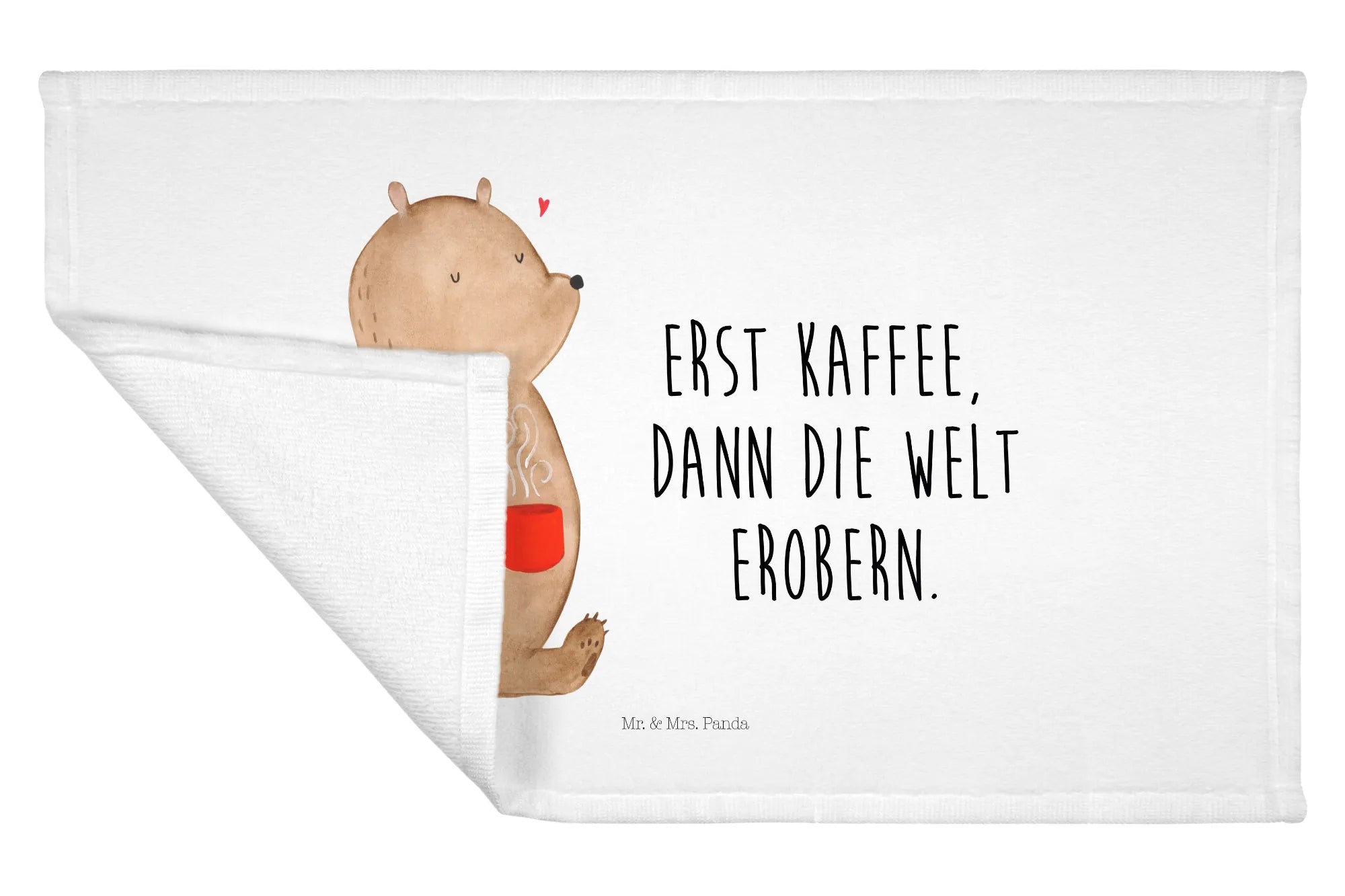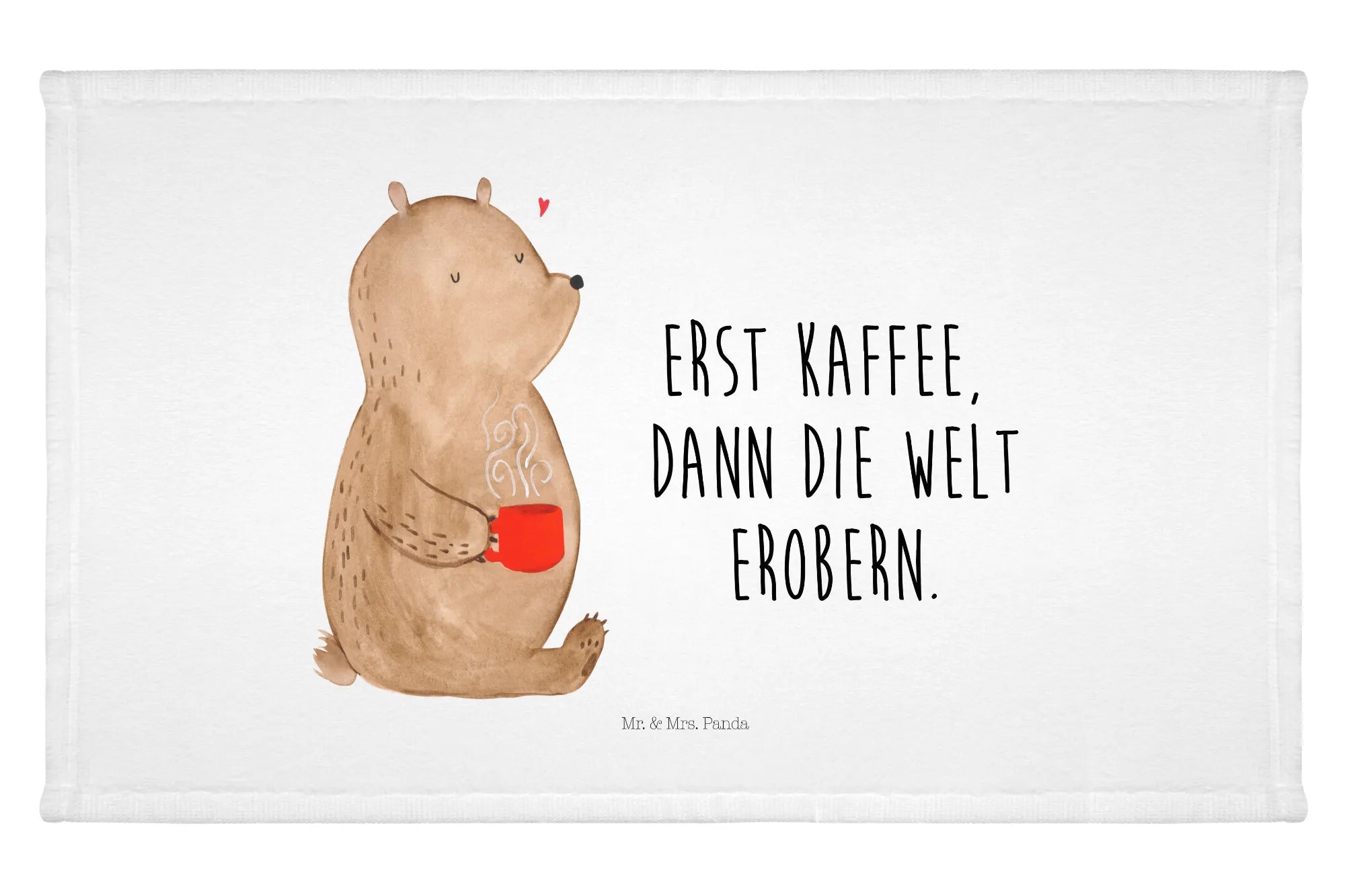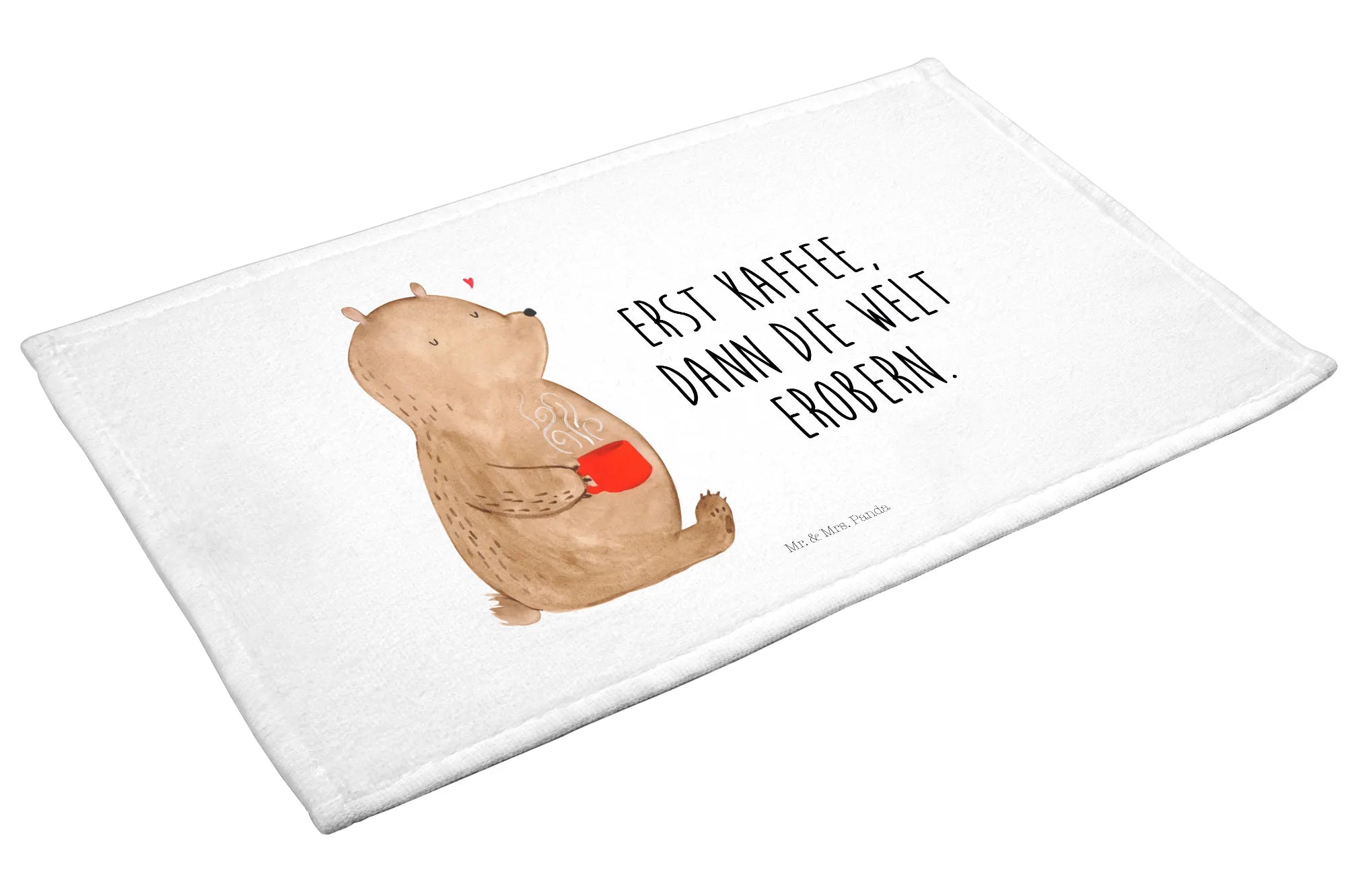 50 x 100 ręcznik Niedźwiedź kawa - 50 x 100 ręcznik - z napisem - biały