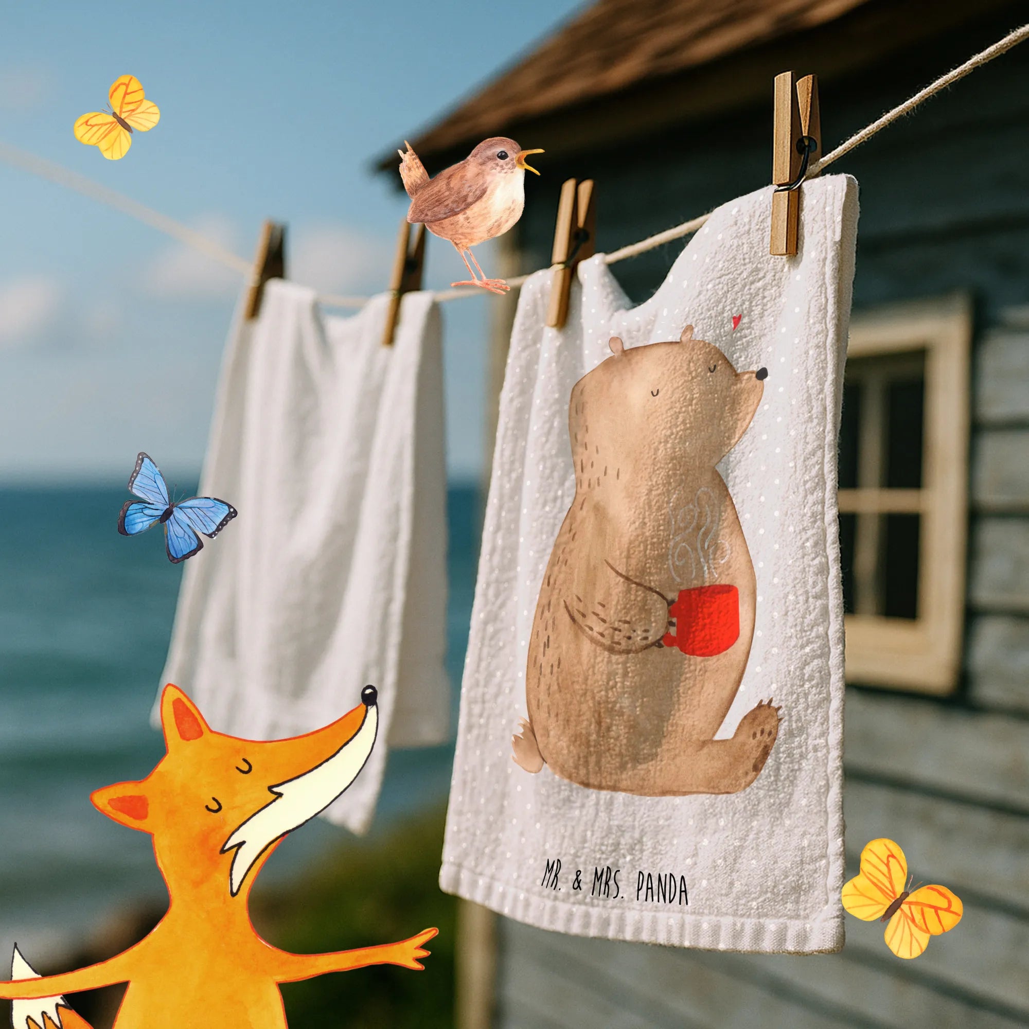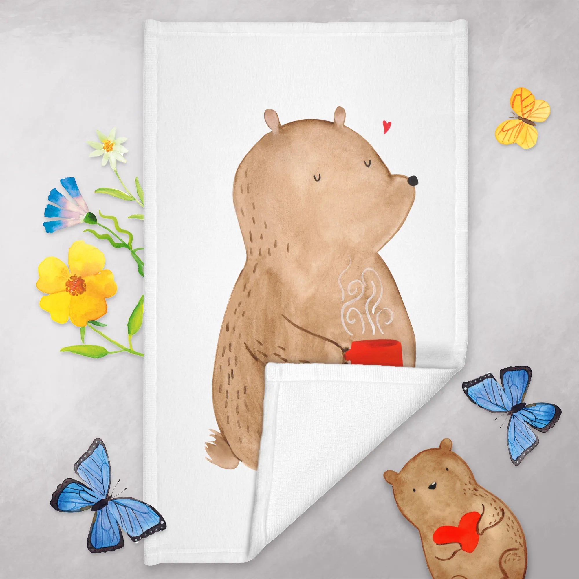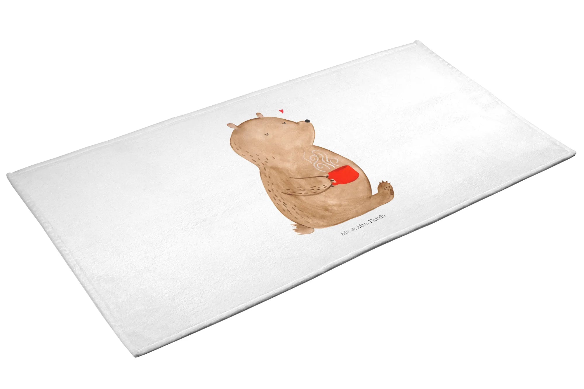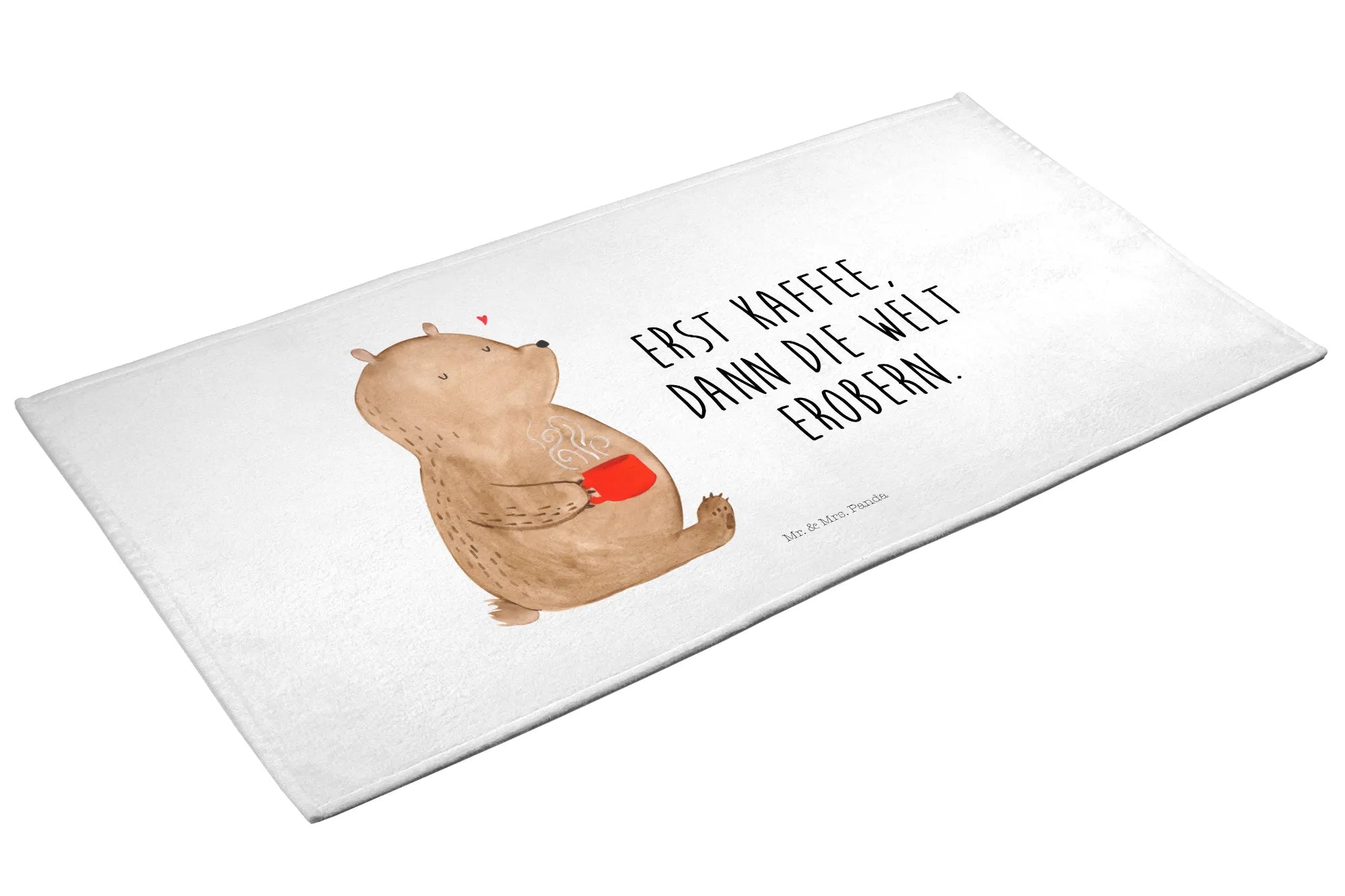 50 x 100 ręcznik Niedźwiedź kawa - 50 x 100 ręcznik - z napisem - biały