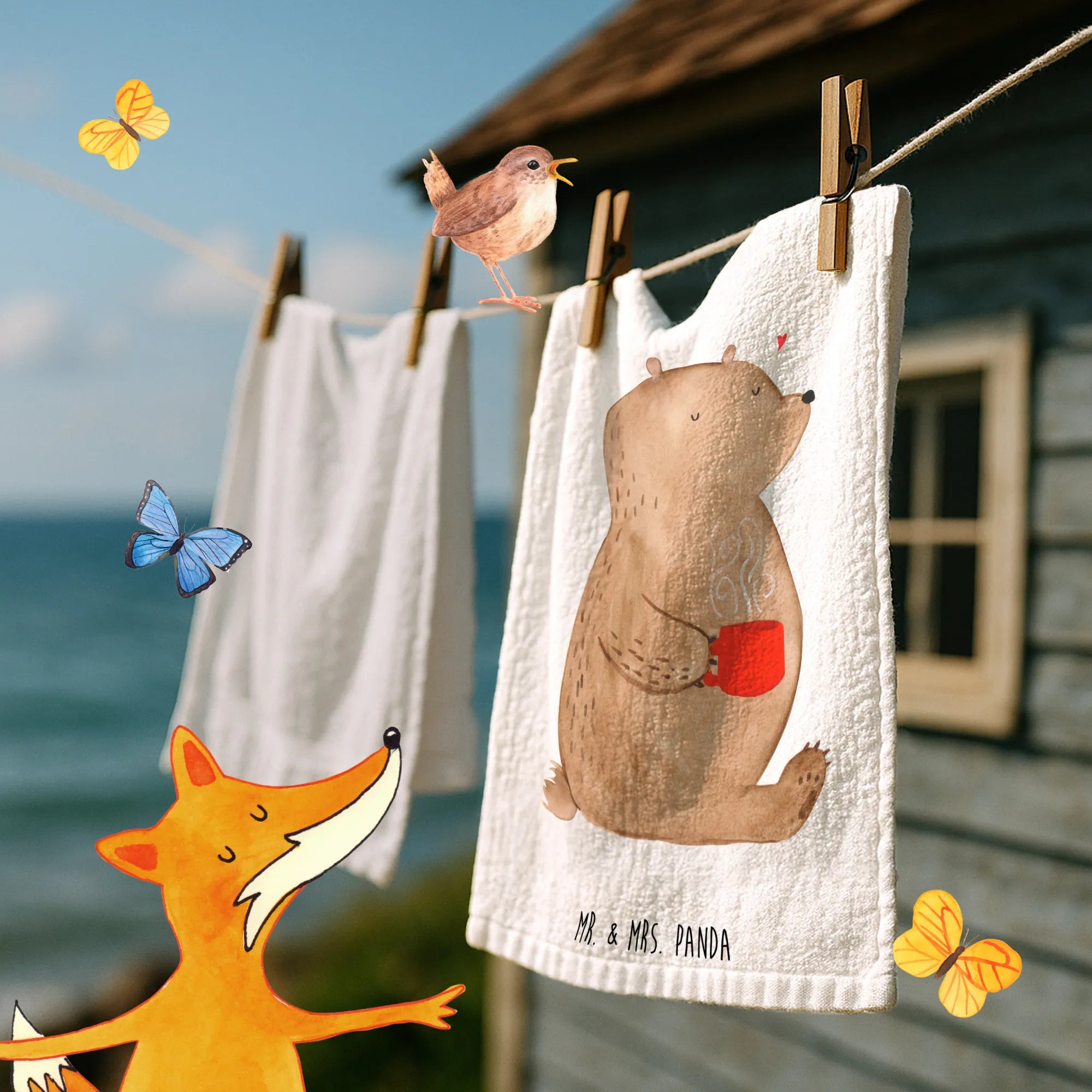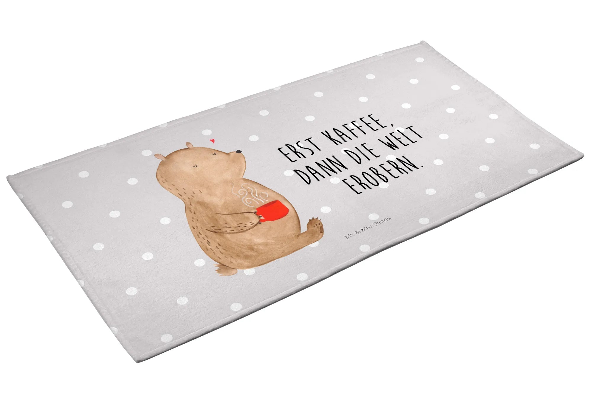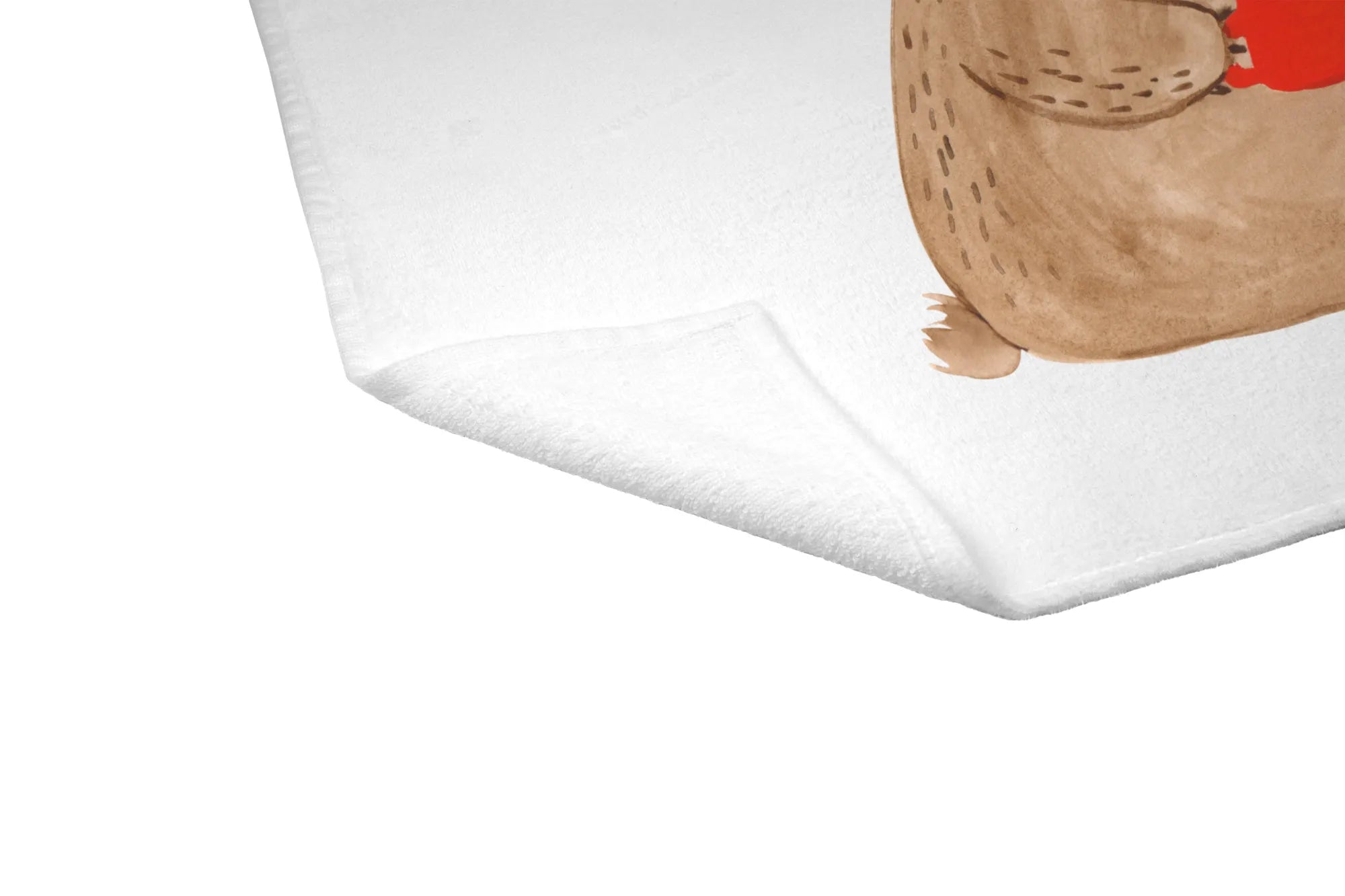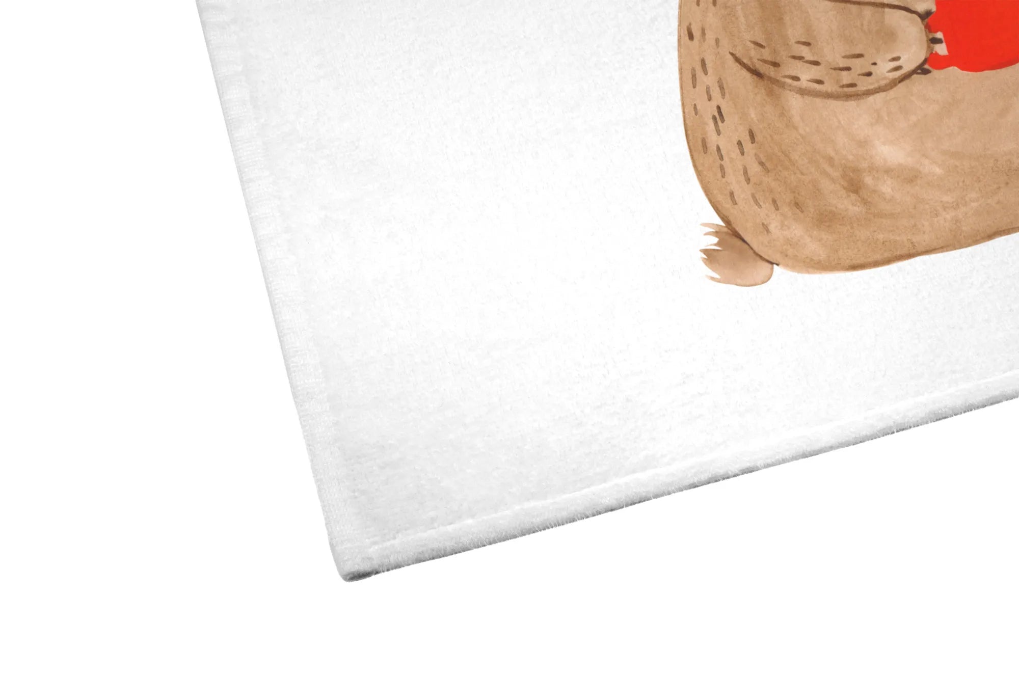 50 x 100 ręcznik Niedźwiedź kawa - 50 x 100 ręcznik - z napisem - biały